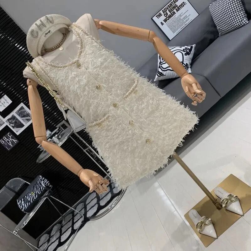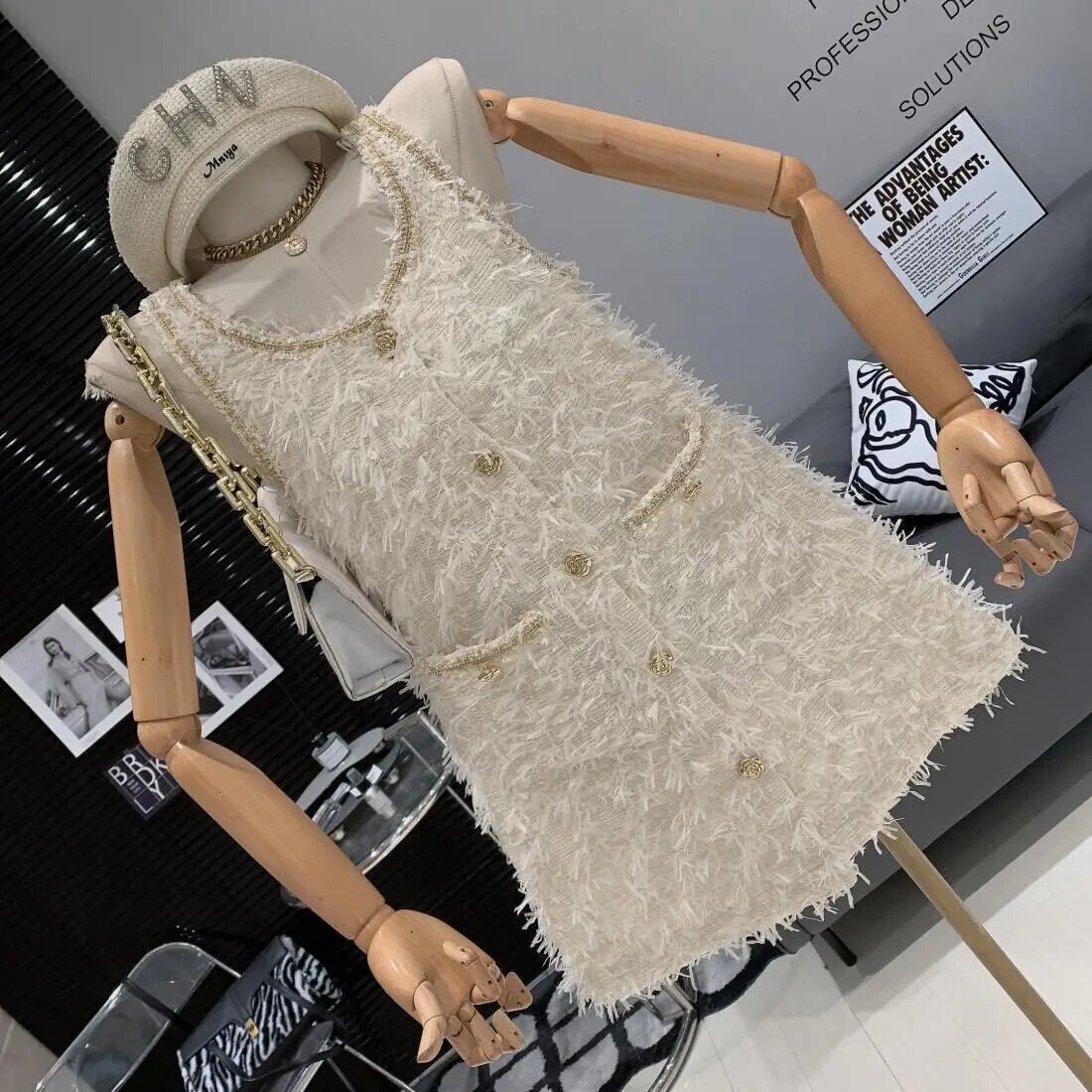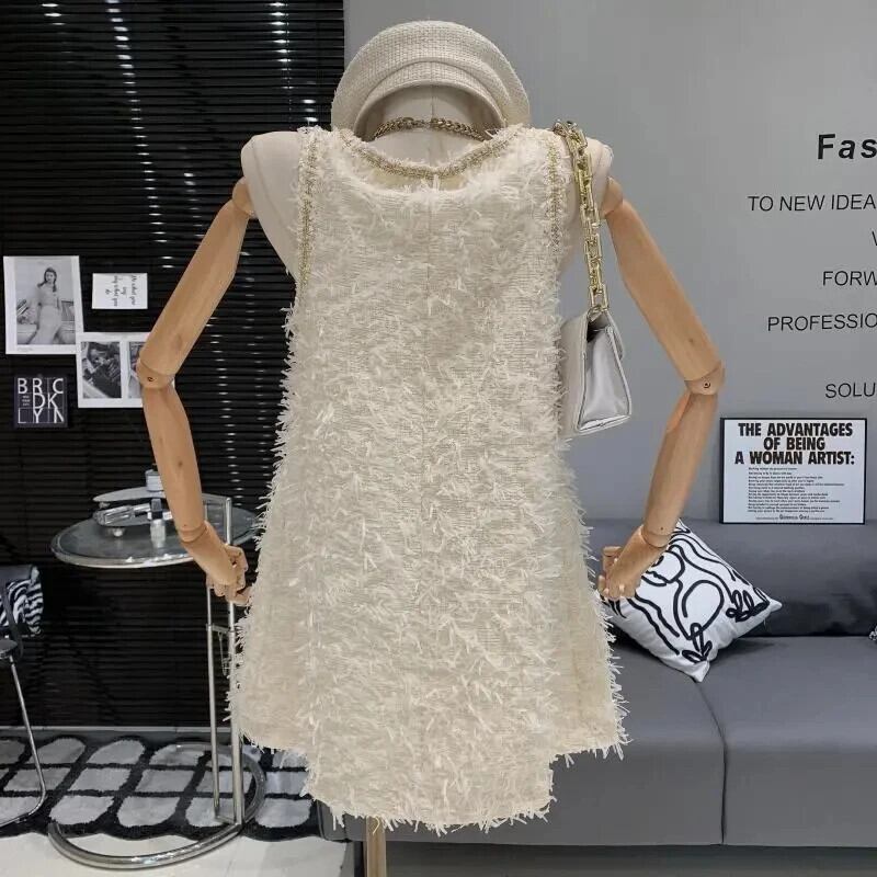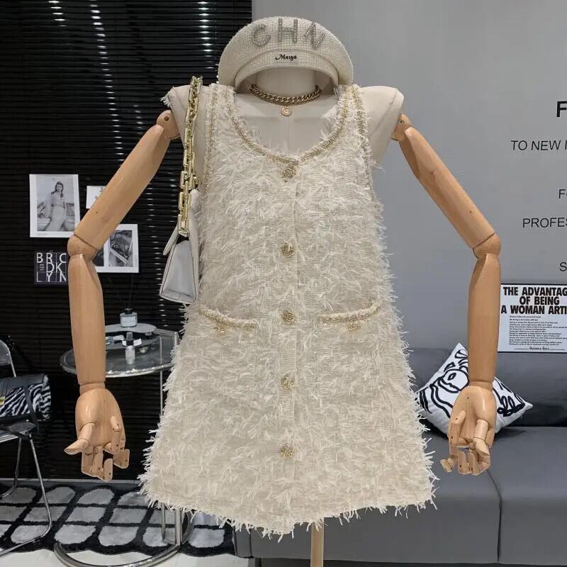フレグランススタイルツイードテルAラインノースリーブ有能気質ベストドレス夏 サマー 夏物