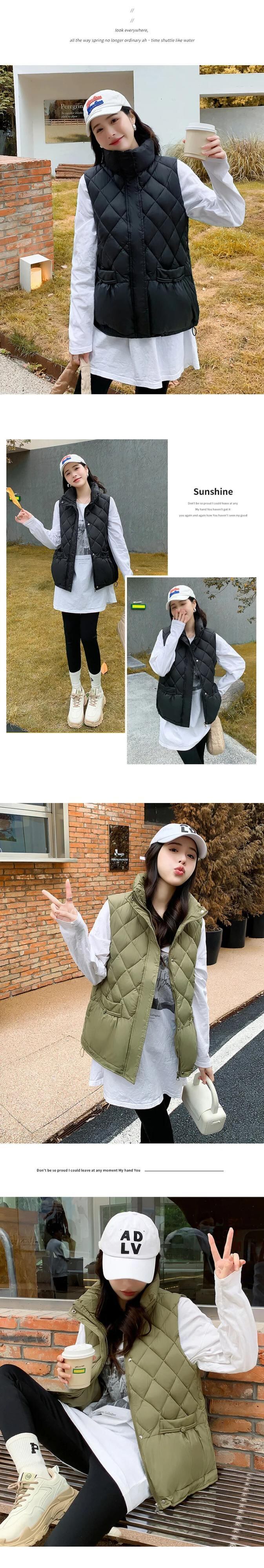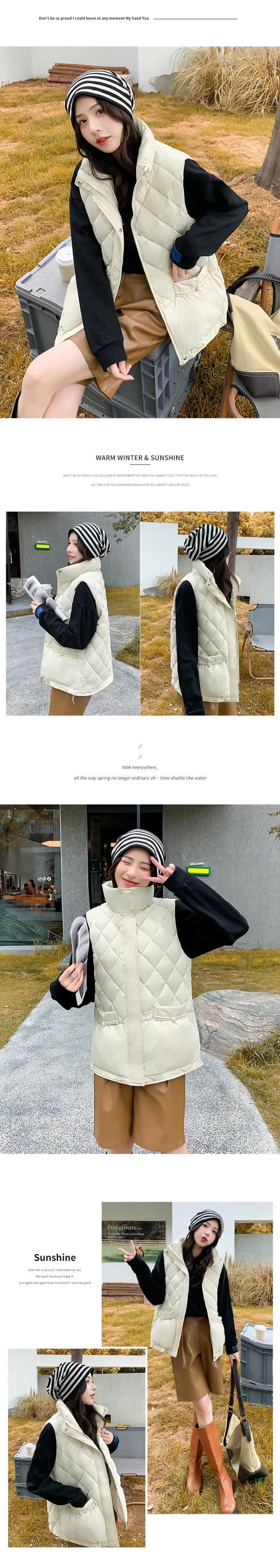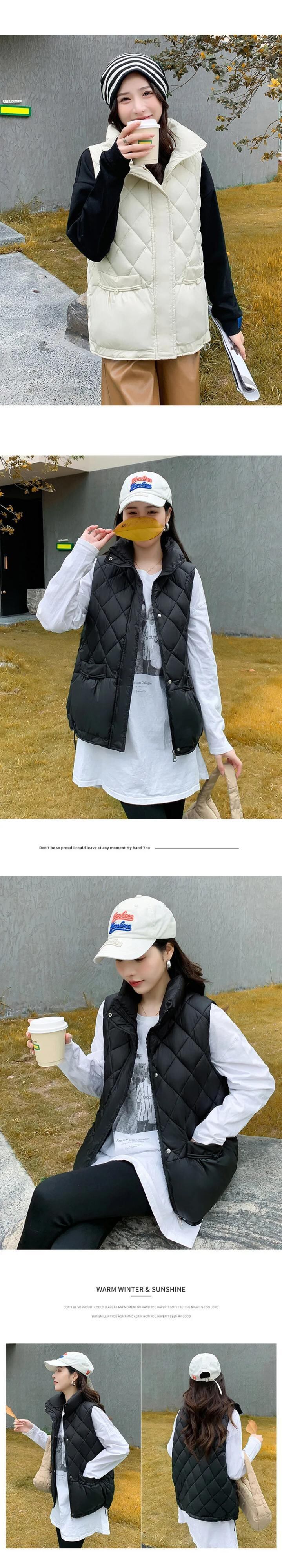 秋/冬ライト薄いタンクショルダーダウンコットンベスト縦襟ルーズアウタートップチョッキ オータム 秋物 ウィンター 冬物