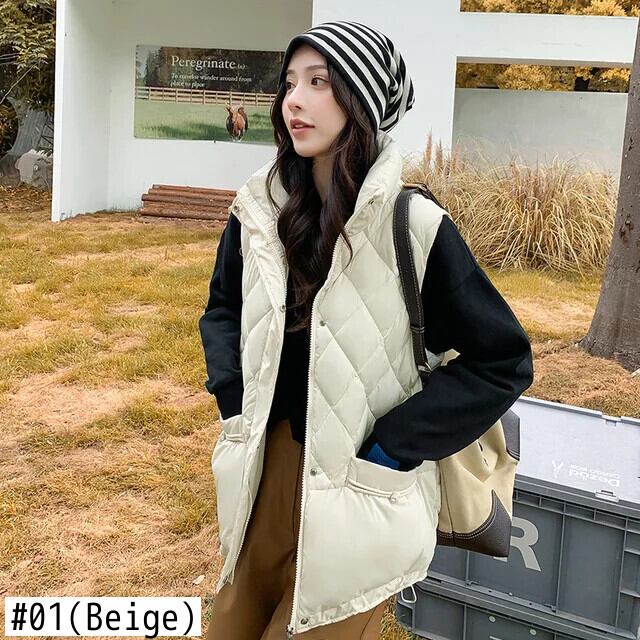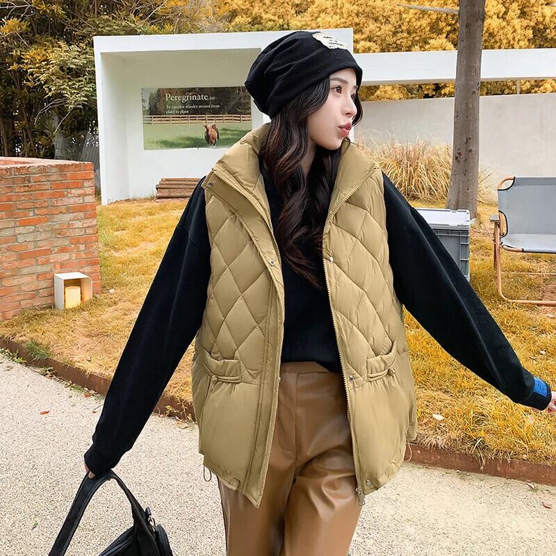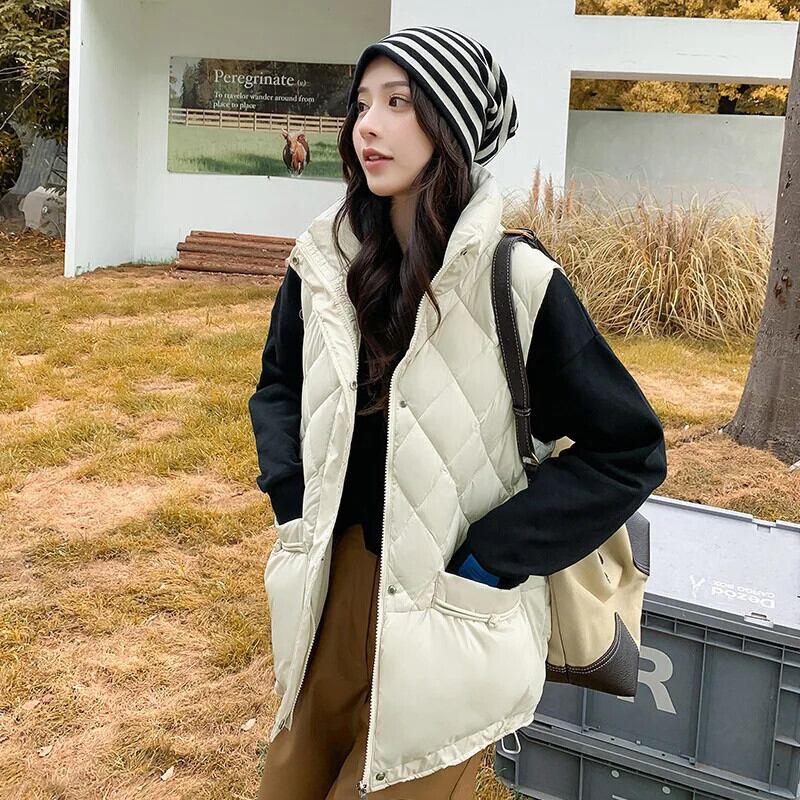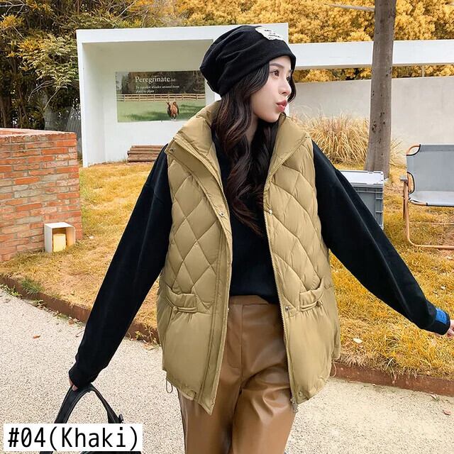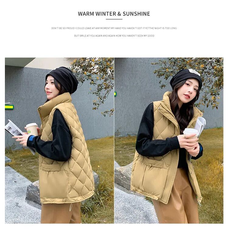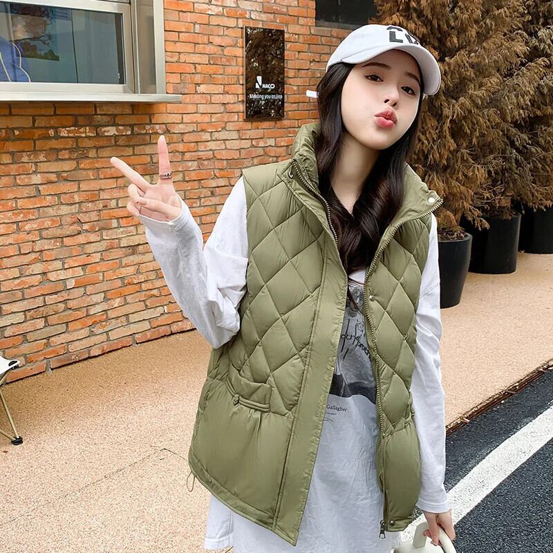 秋/冬ライト薄いタンクショルダーダウンコットンベスト縦襟ルーズアウタートップチョッキ オータム 秋物 ウィンター 冬物