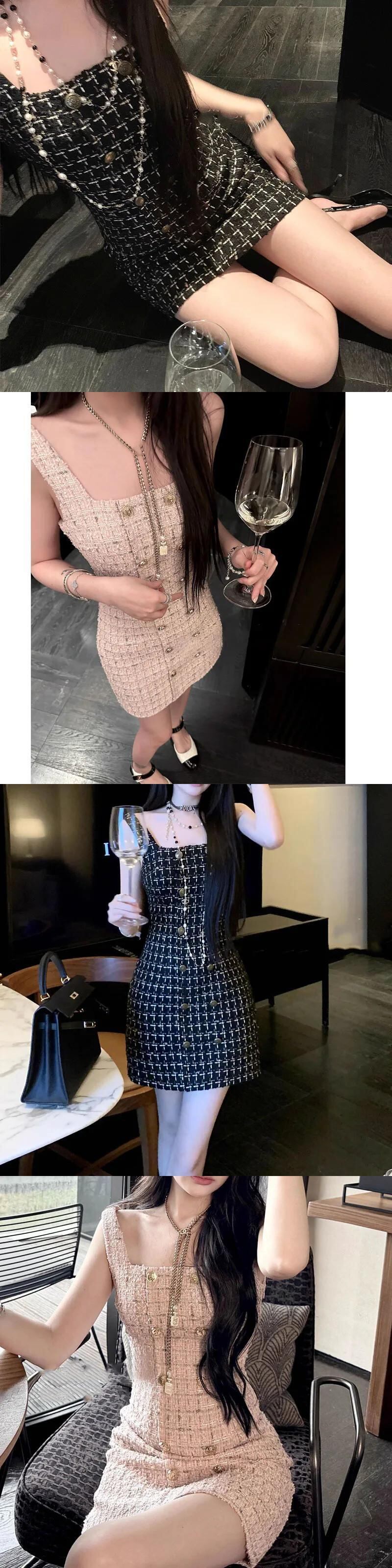 2024 レディース ピンク ブラック サマー 女子誕生日パーティー フレグランス スリング ドレス 夏物