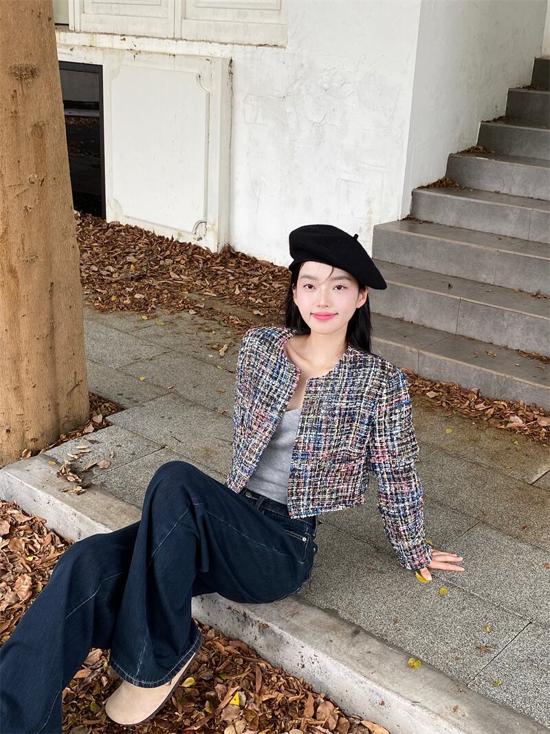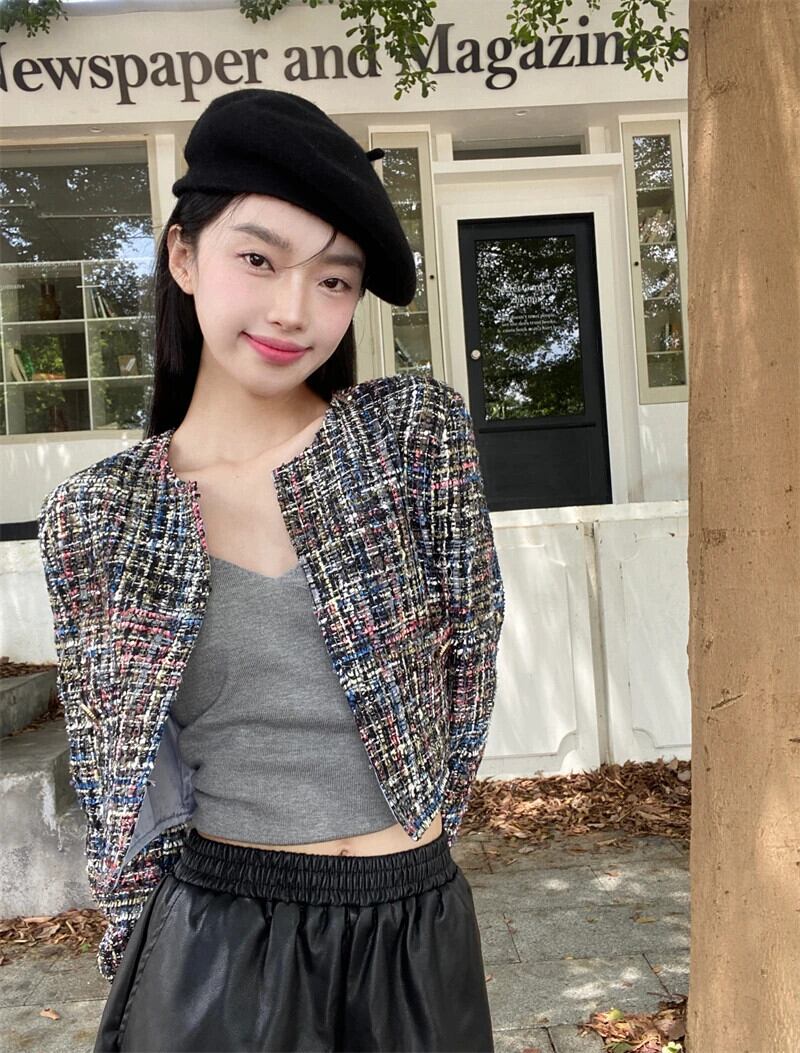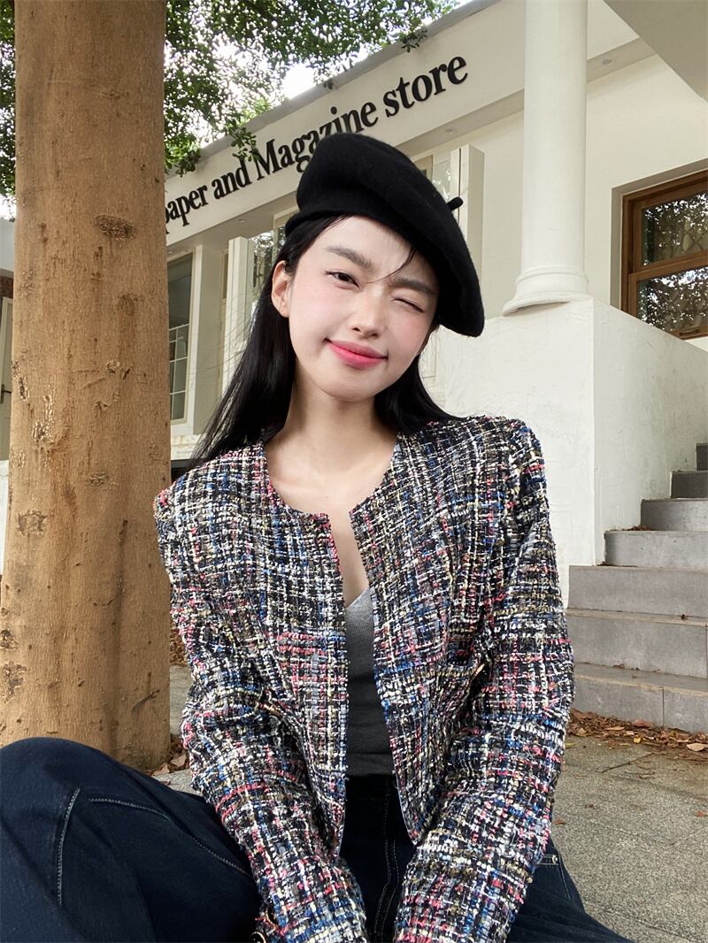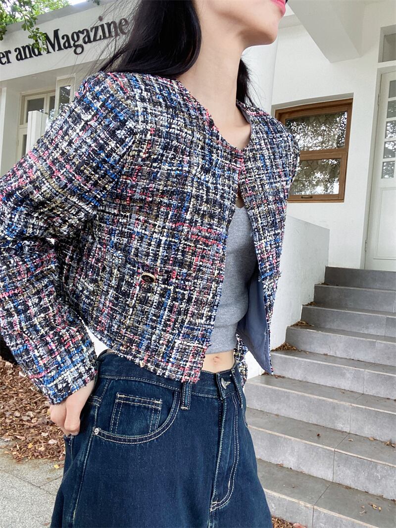 香りショートコート春秋フランス気質ルーズ長袖ユニークツイードジャケット ロング スプリング 春物 オータム 秋物