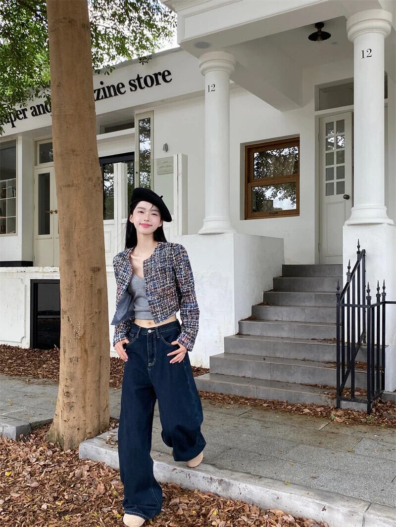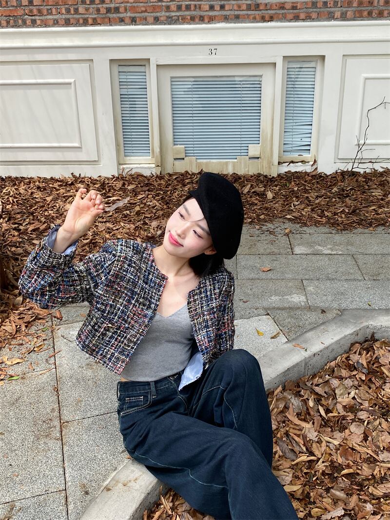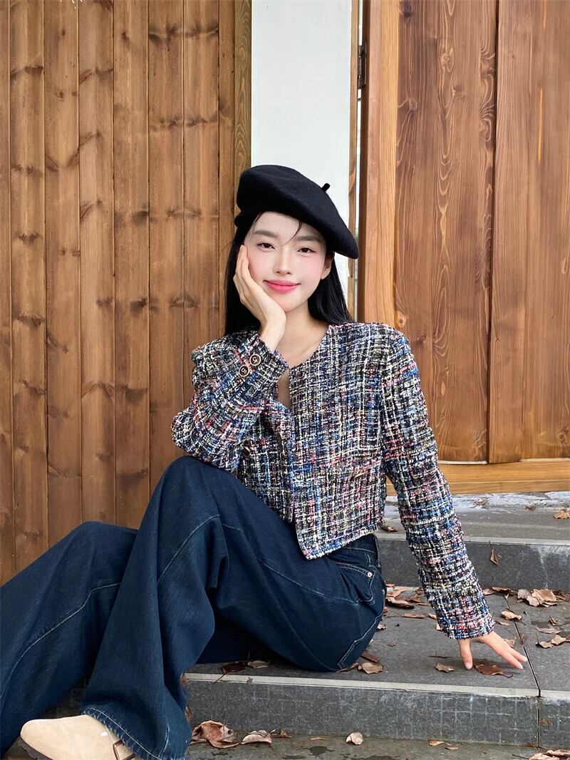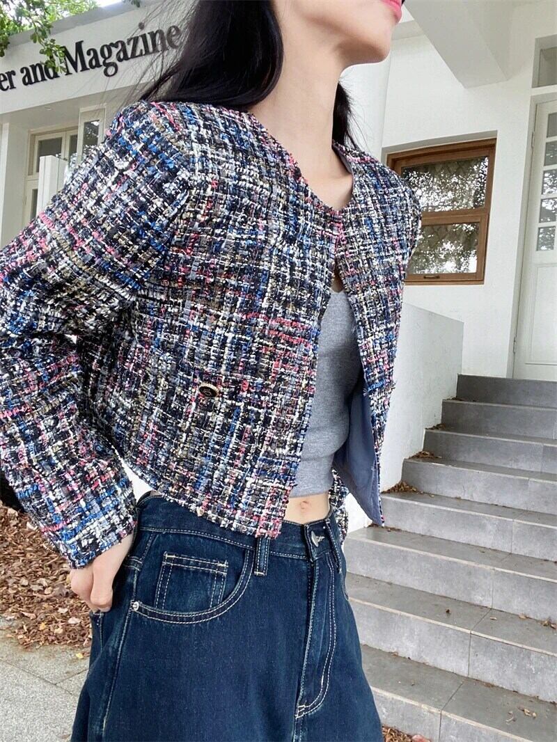 香りショートコート春秋フランス気質ルーズ長袖ユニークツイードジャケット ロング スプリング 春物 オータム 秋物