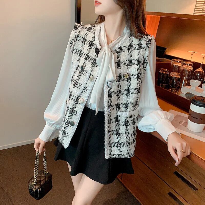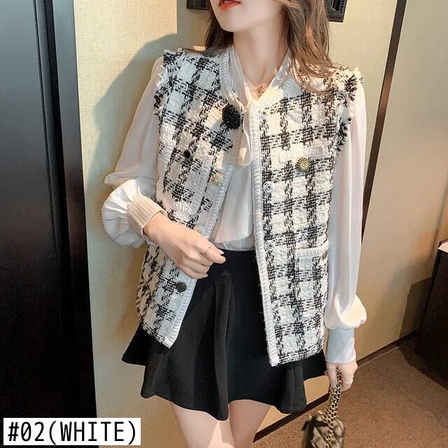 秋香りベスト コート ツイード チェック柄生き抜くチョッキ オータム 秋物