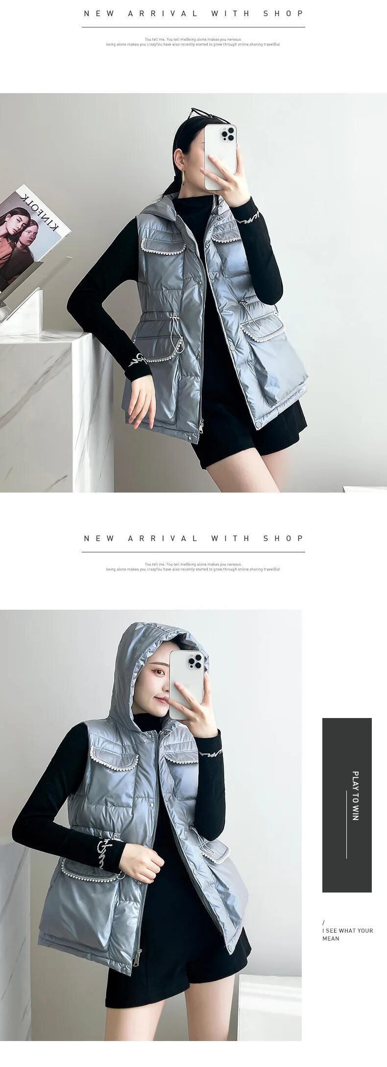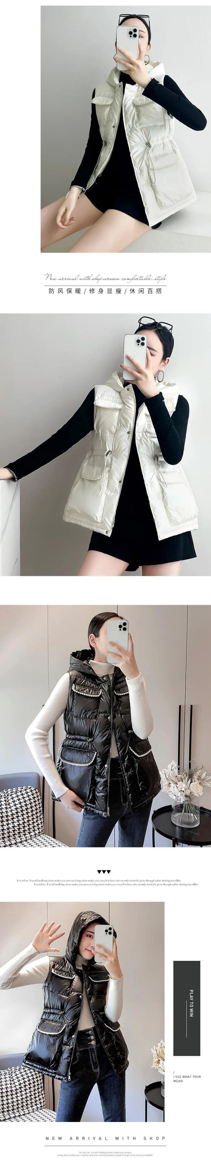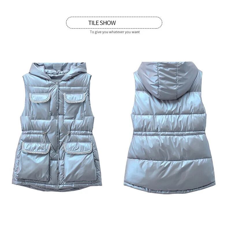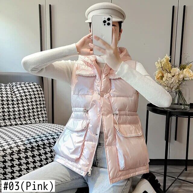 大きポケット冬チョッキ綿パッド入りフード付きノースリーブジャケットベスト コットン ウィンター 冬物