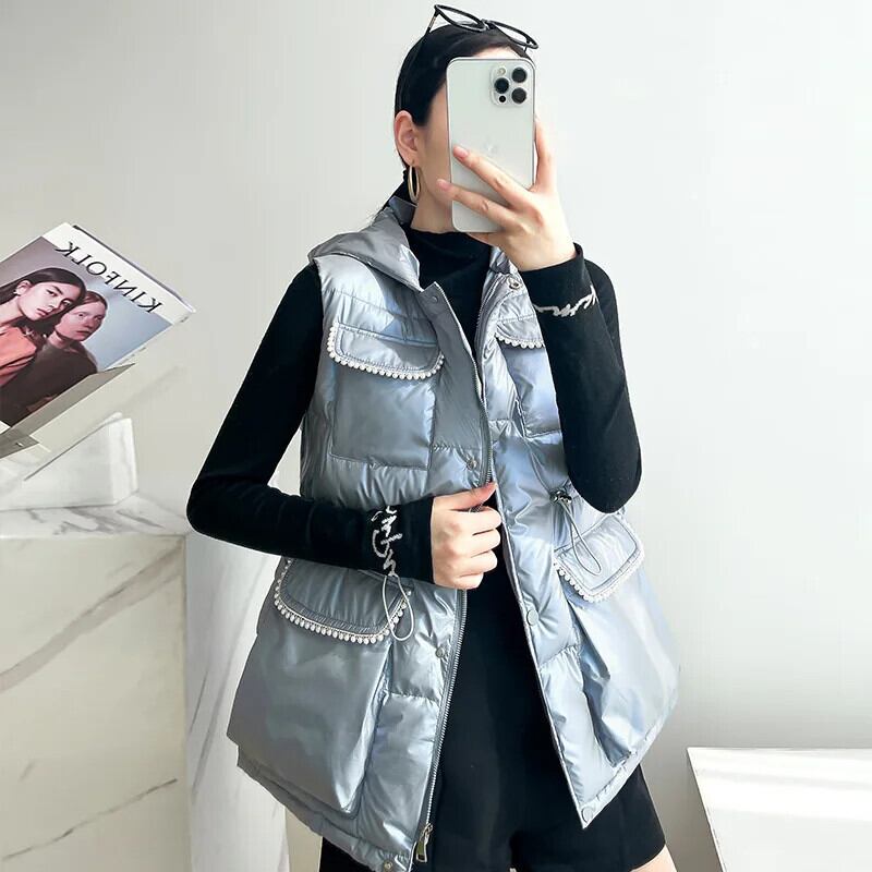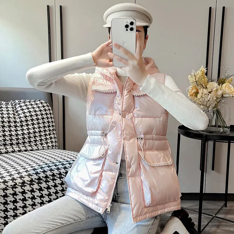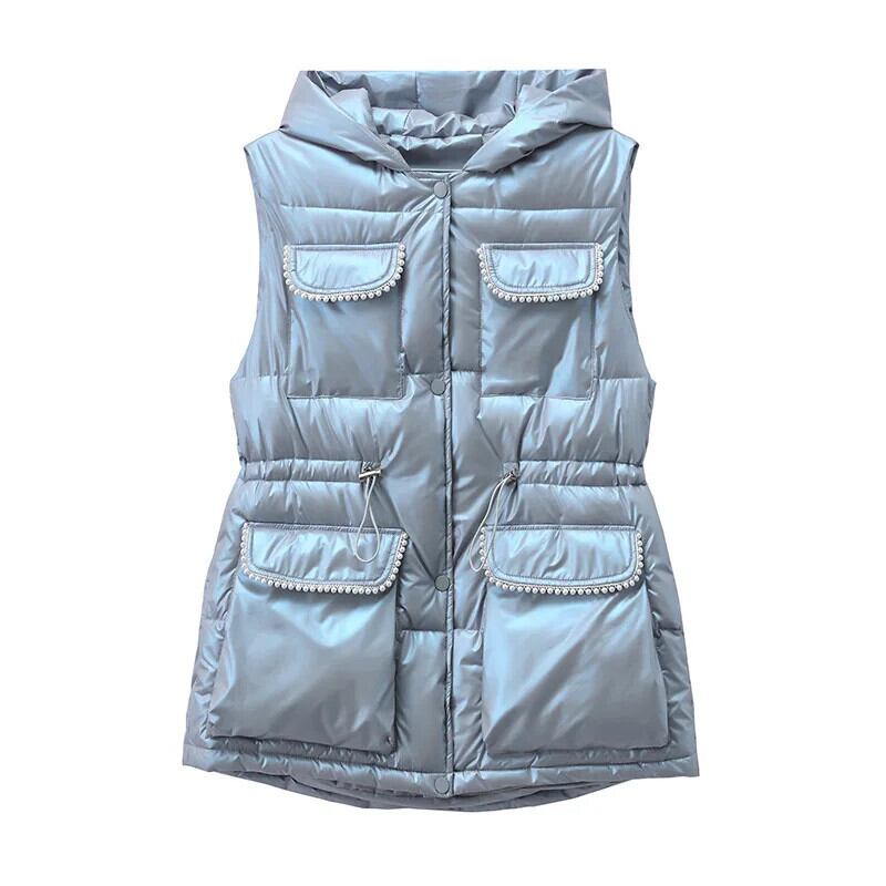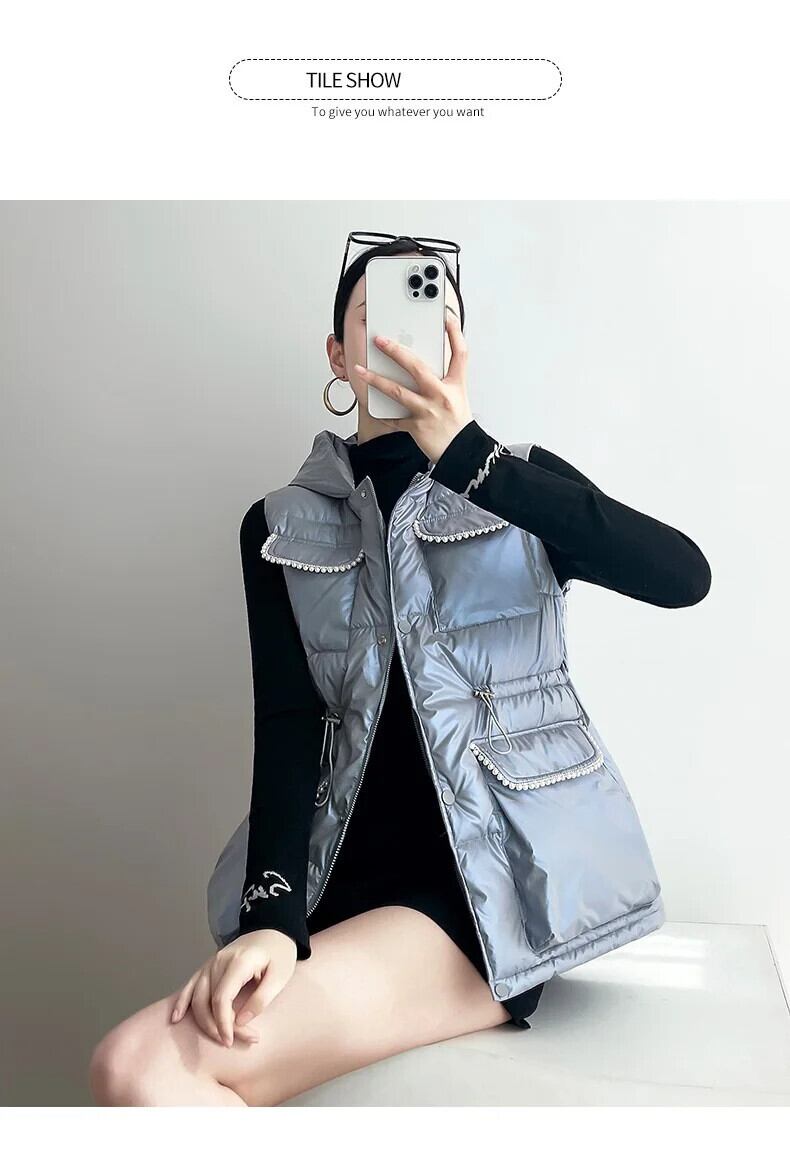 大きポケット冬チョッキ綿パッド入りフード付きノースリーブジャケットベスト コットン ウィンター 冬物