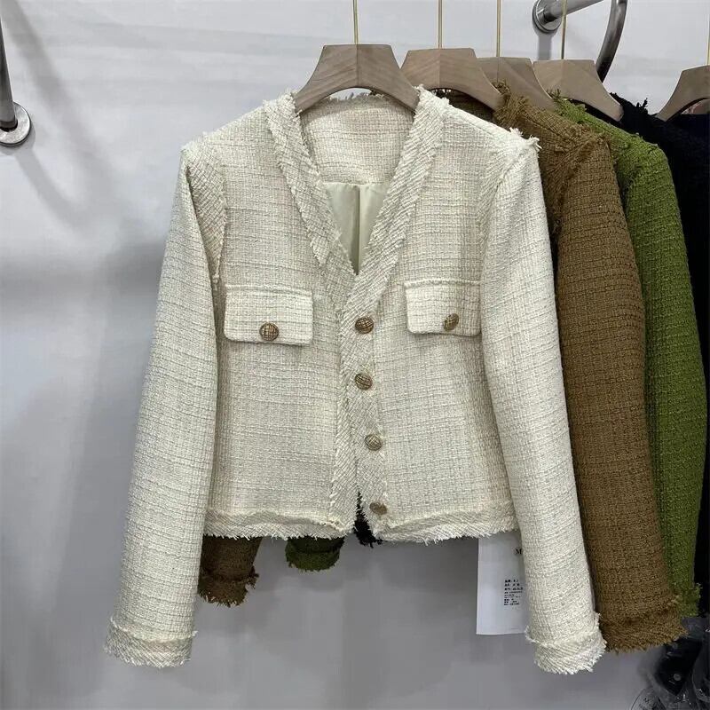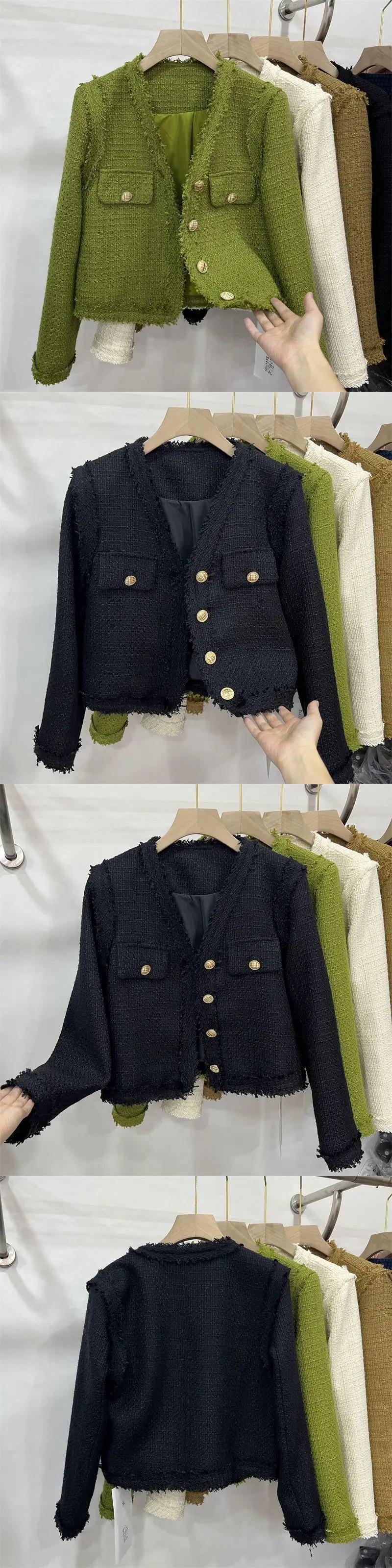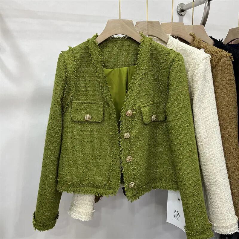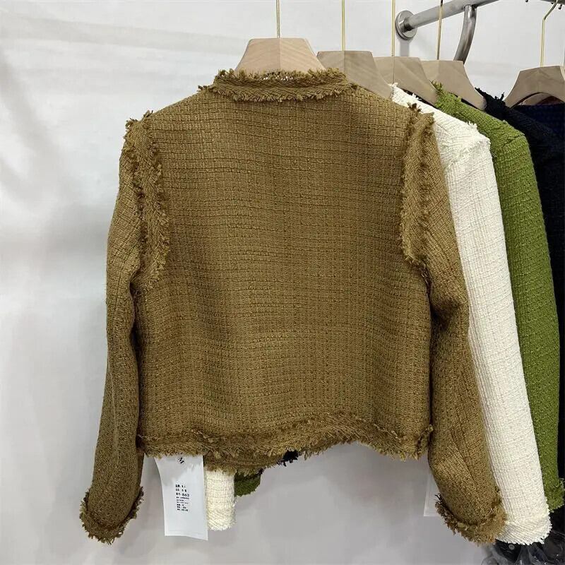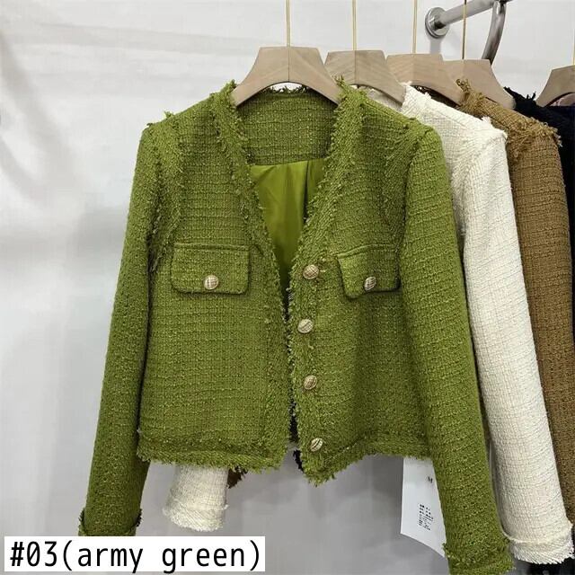 秋春到着 Clic スタイルショートジャケットラウンドネックシングルブレストレディコート スプリング 春物 オータム 秋物 Oネック