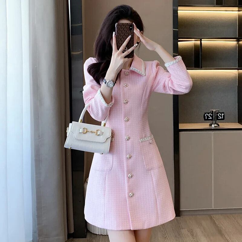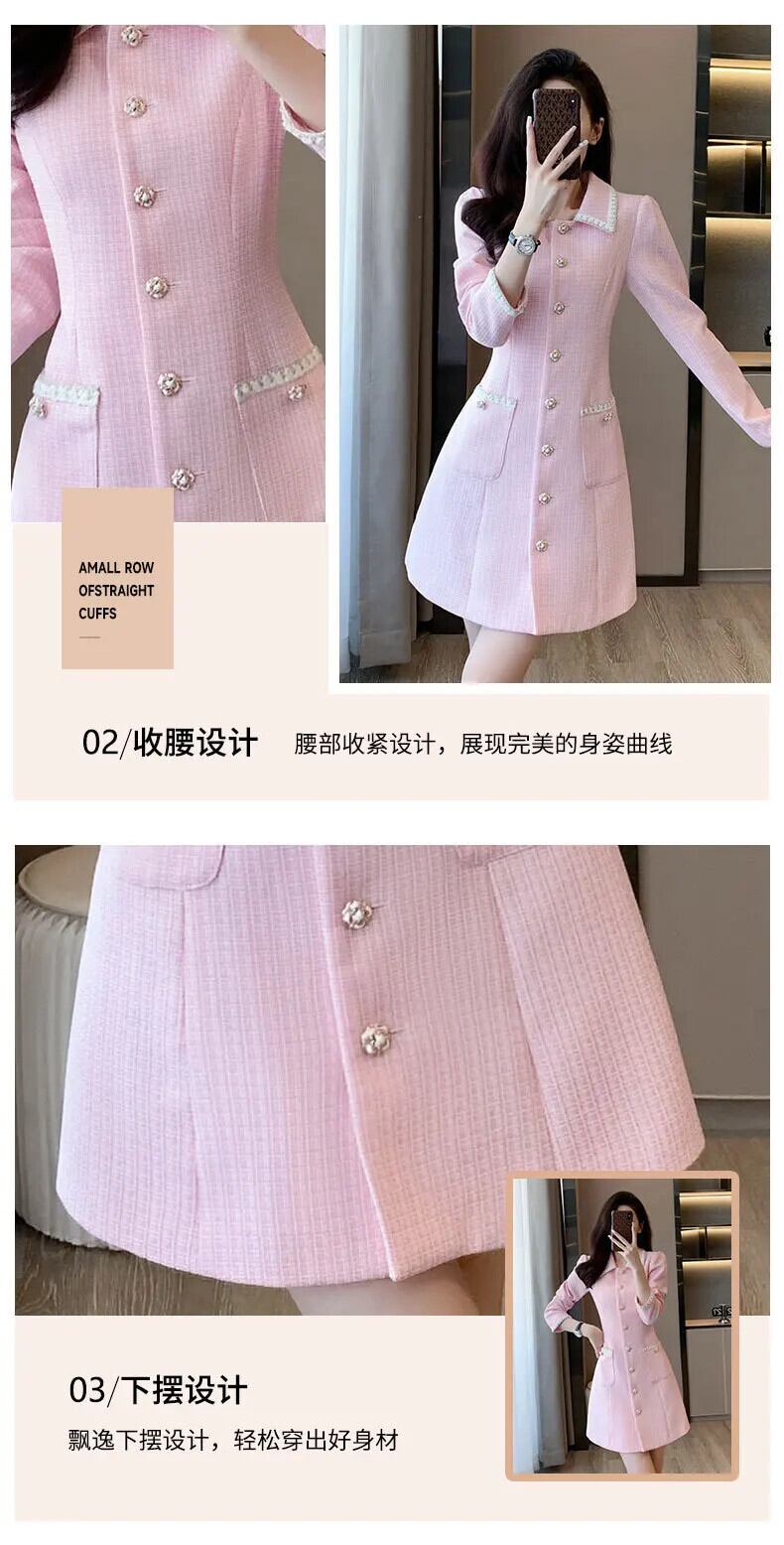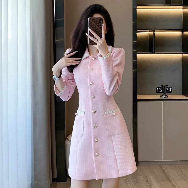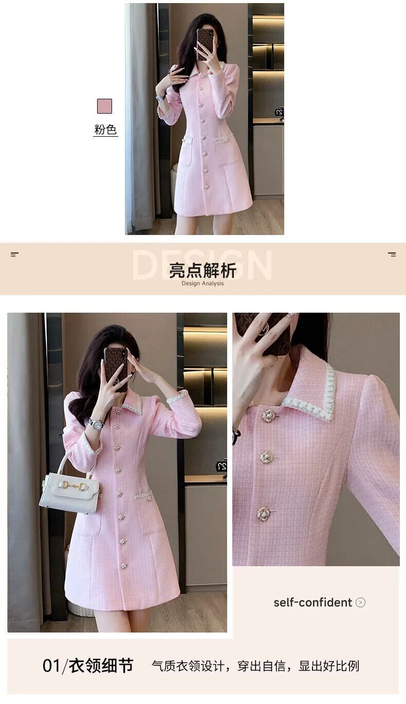 長袖甘い秋可能ピンク香りドレス ロング 大人ガーリー スウィート キュート カジュアル オータム 秋物