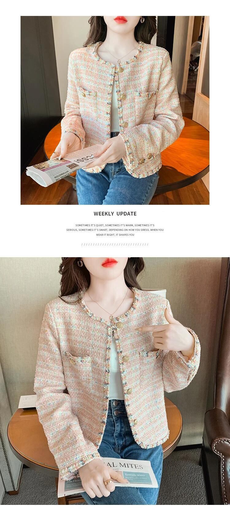 ストリートラグジュアリーフレグランスツイードジャケットレディース秋冬ショートコートフレンチ生き抜く オータム 秋物 ウィンター 冬物
