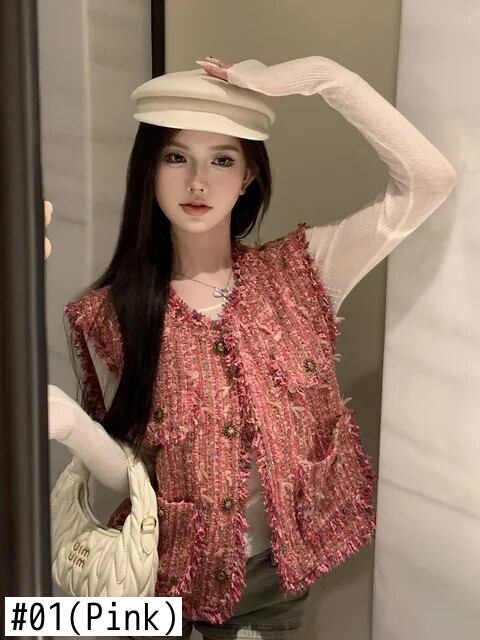 秋ツイード ベスト Tel 織ノースリーブフレグランスチョッキ オータム 秋物