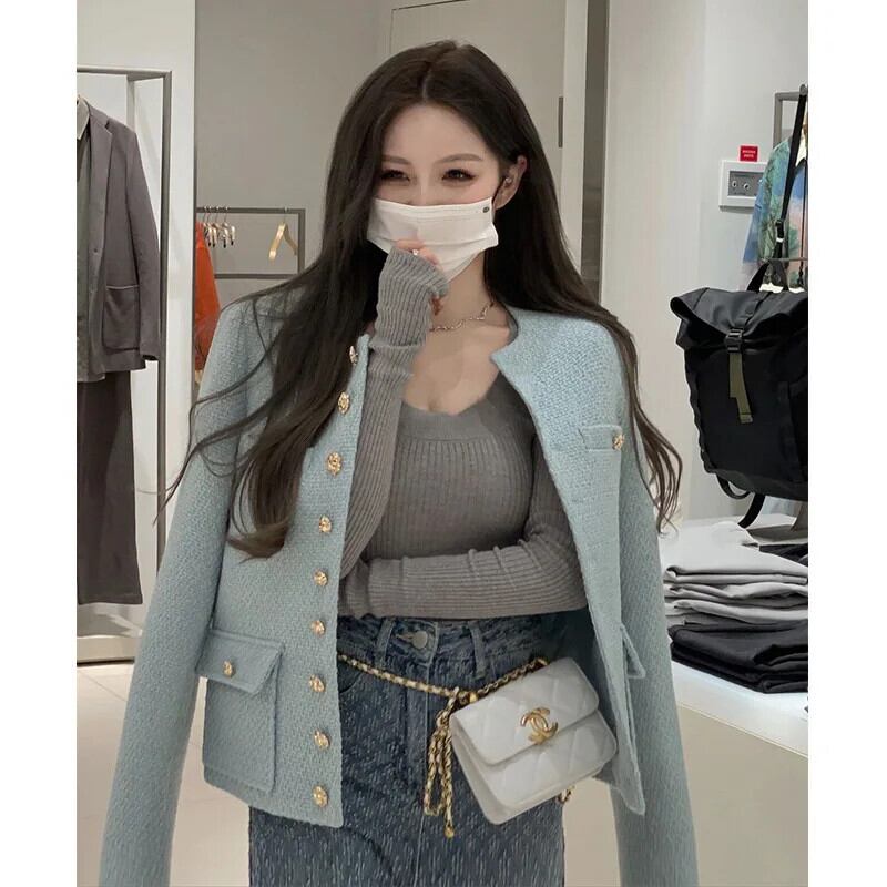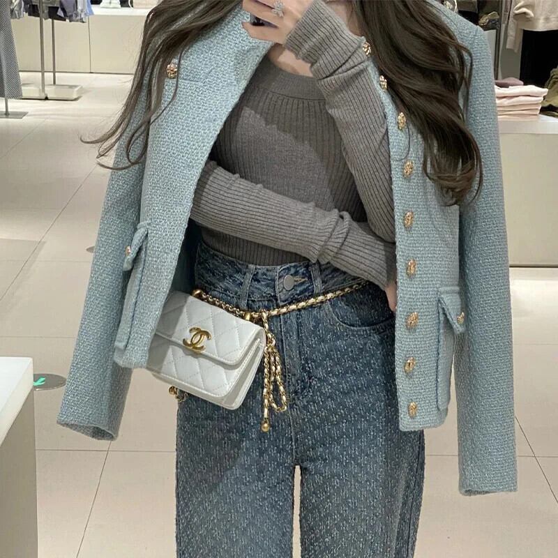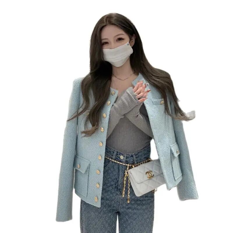 シングルブレスト ラウンドネック レトロ ルーズ スイート ショート ツイード スーツ ジャケット レディース 春秋ブレザー 大人ガーリー スウィート キュート カジュアル スプリング 春物 オータム 秋物 Oネック