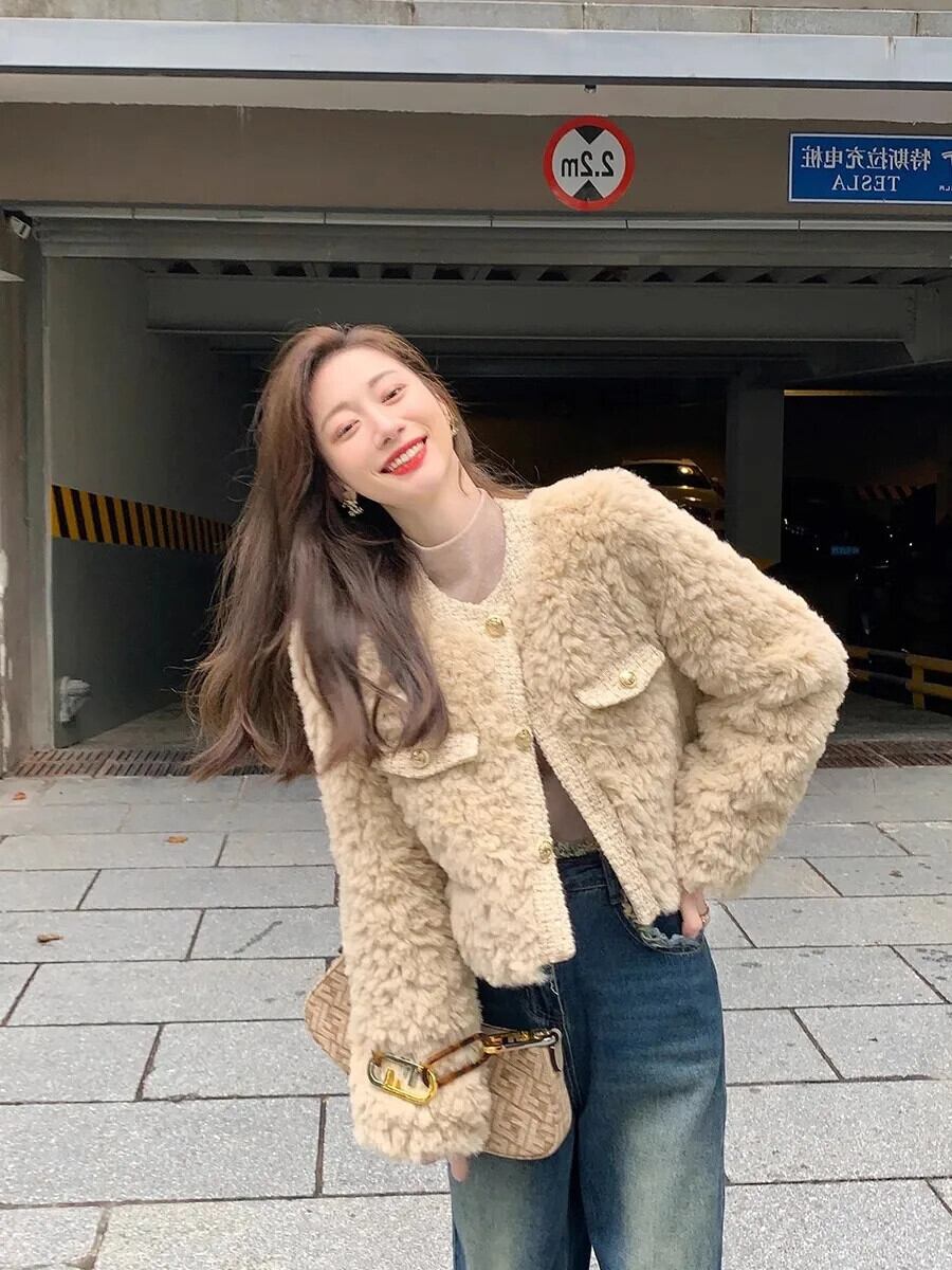 レディース フレグランス ラム プラッシュ ショート コート レディース 秋冬 フェイクファー ジャケット オータム 秋物 ウィンター 冬物