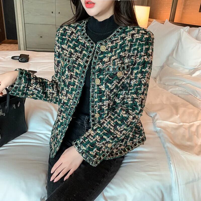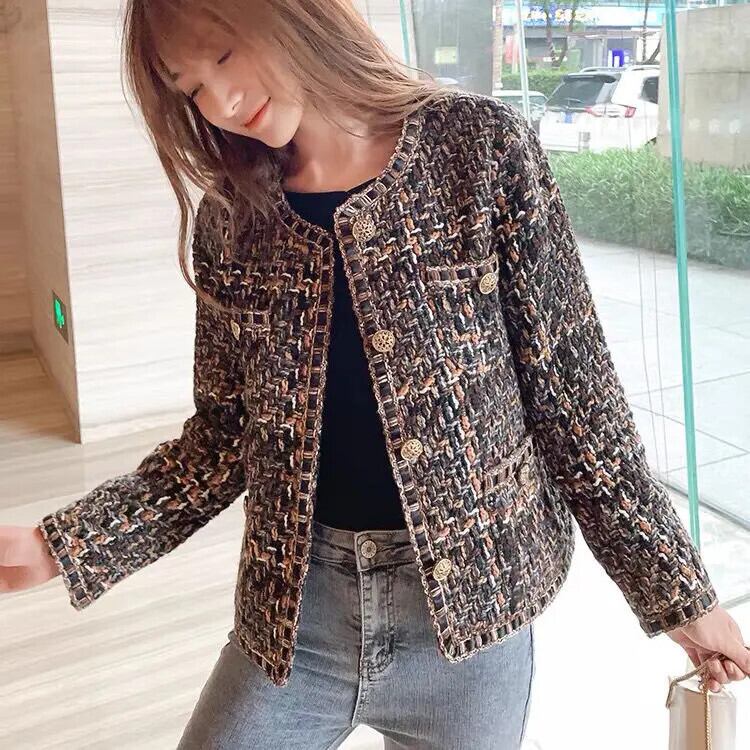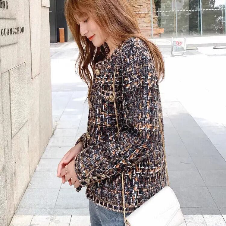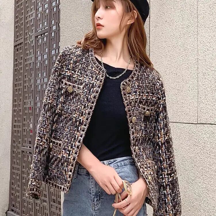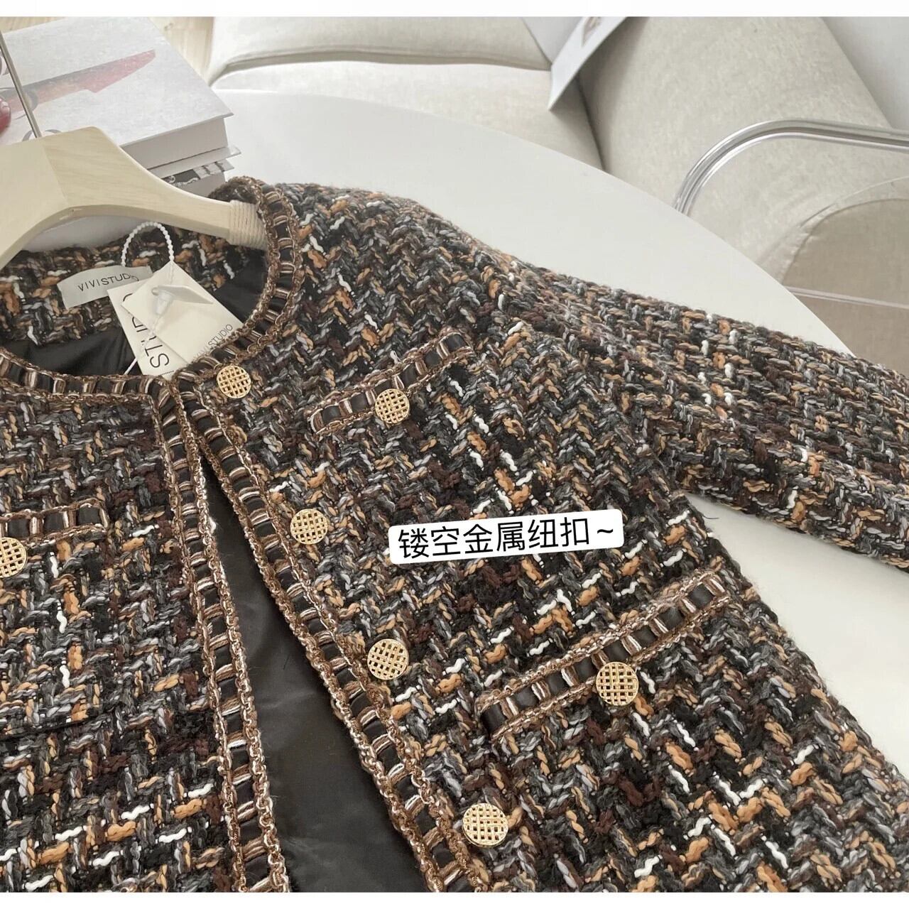 冬ツイードスーツジャケット O ネック長袖ボタンアップストリート原宿 Traf Ladeies ロング かわいい ウィンター 冬物 Oネック