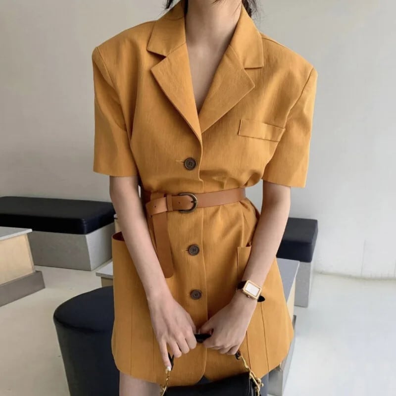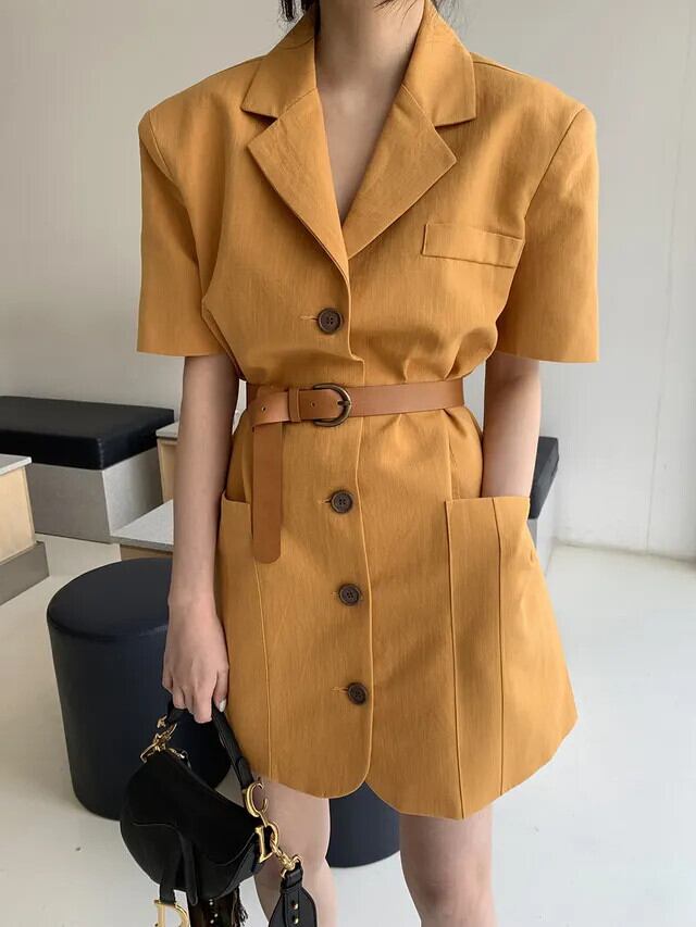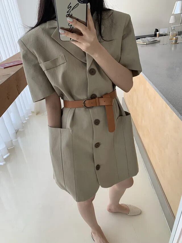 夏半袖シングルブレストレトロスーツドレスベルト付き ショート ハーフスリーブ サマー 夏物 ハーネス