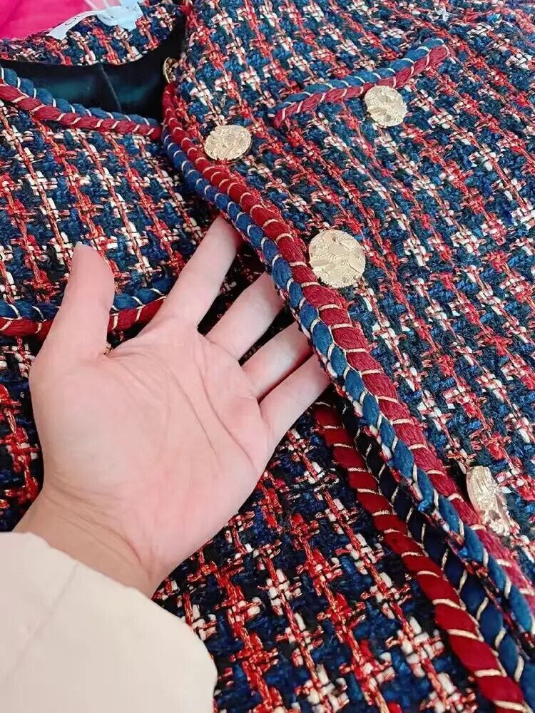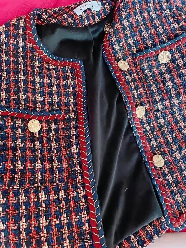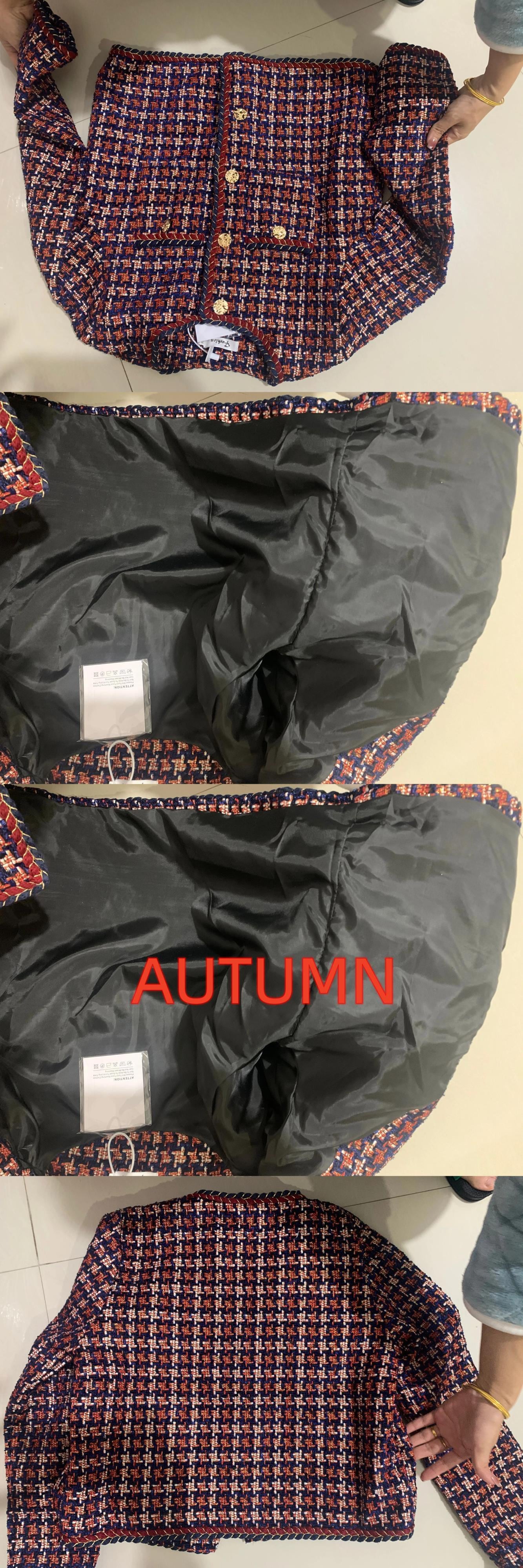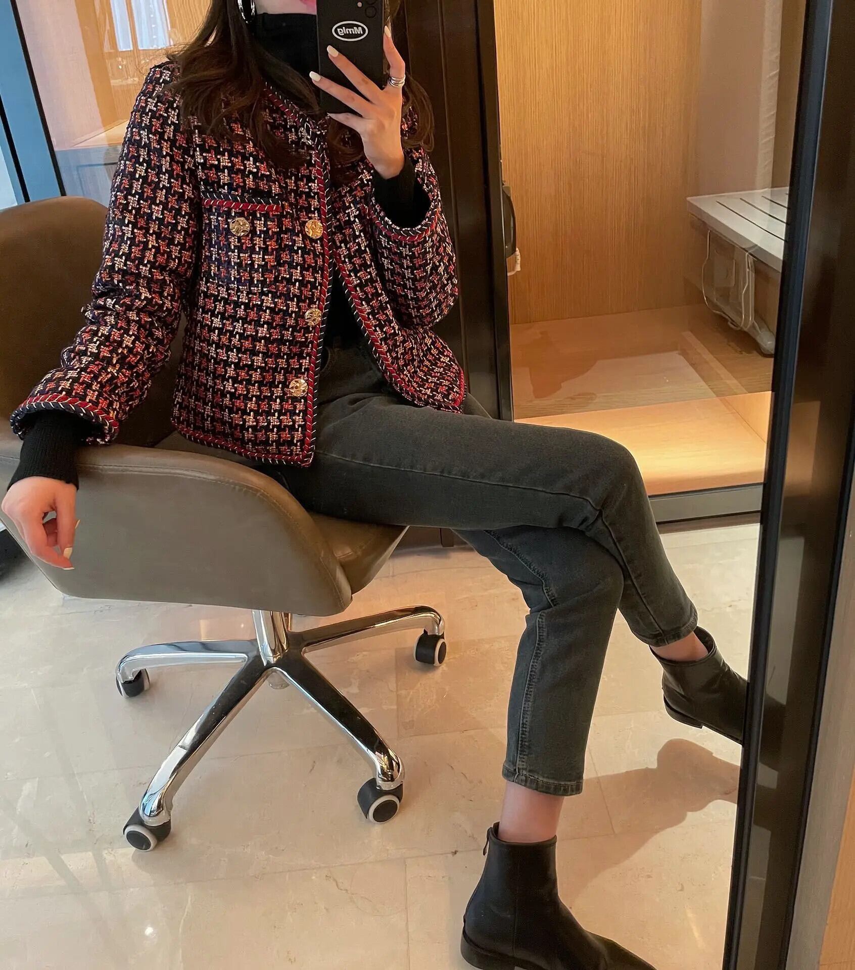 織りチェック柄ブレザーポケットプラスベルベット冬因果ツイードコートオフィススーツジャケット ウィンター 冬物 会社 学校 通勤や通学にも