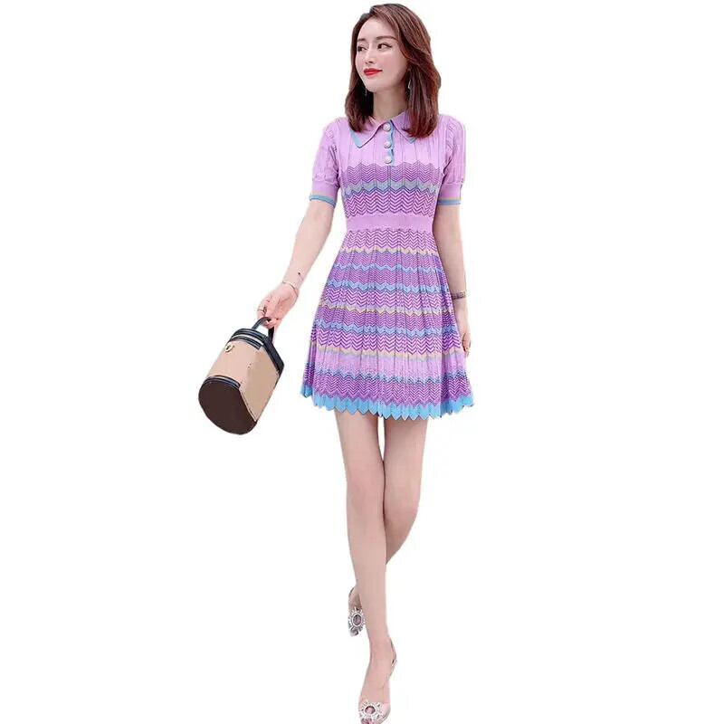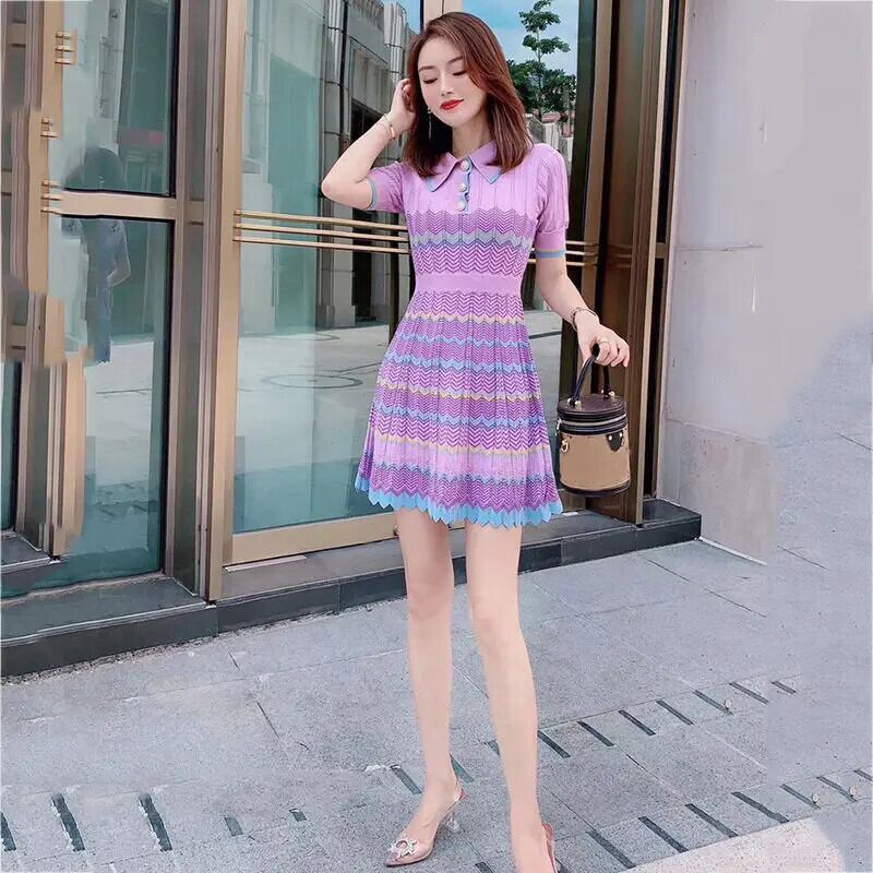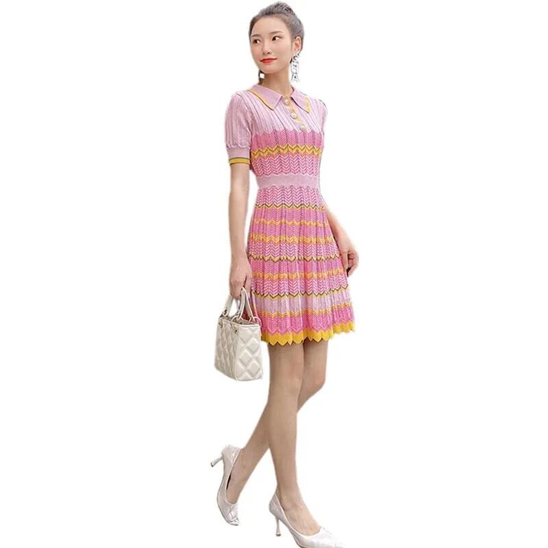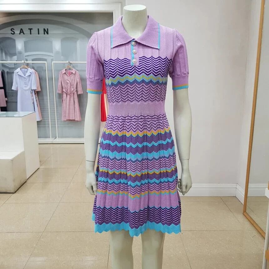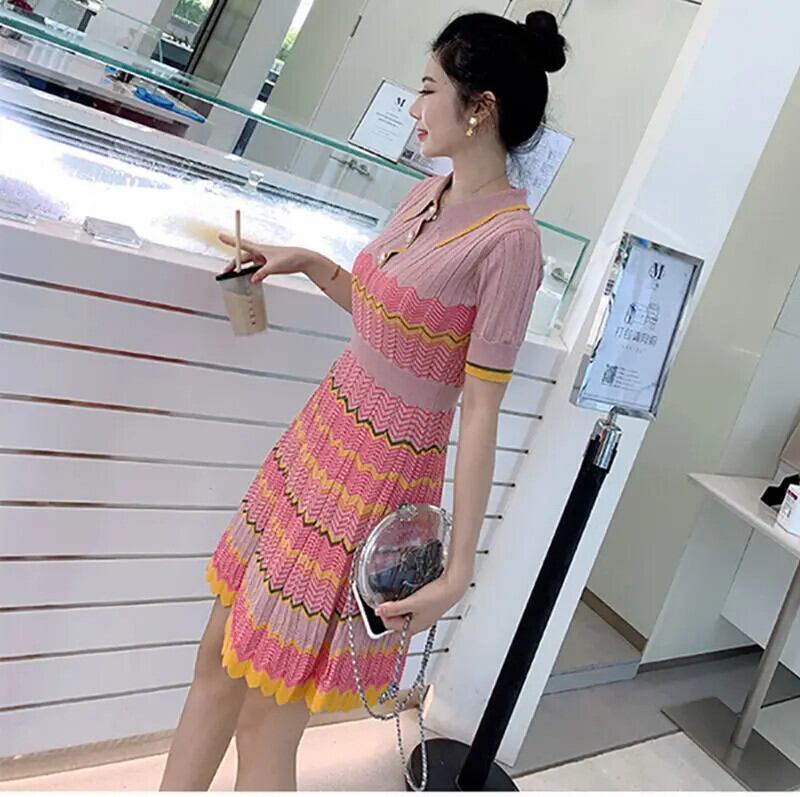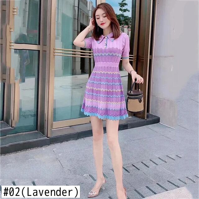 夏香り風カラフルストライプアイスニットドレス サマー 夏物 シルク