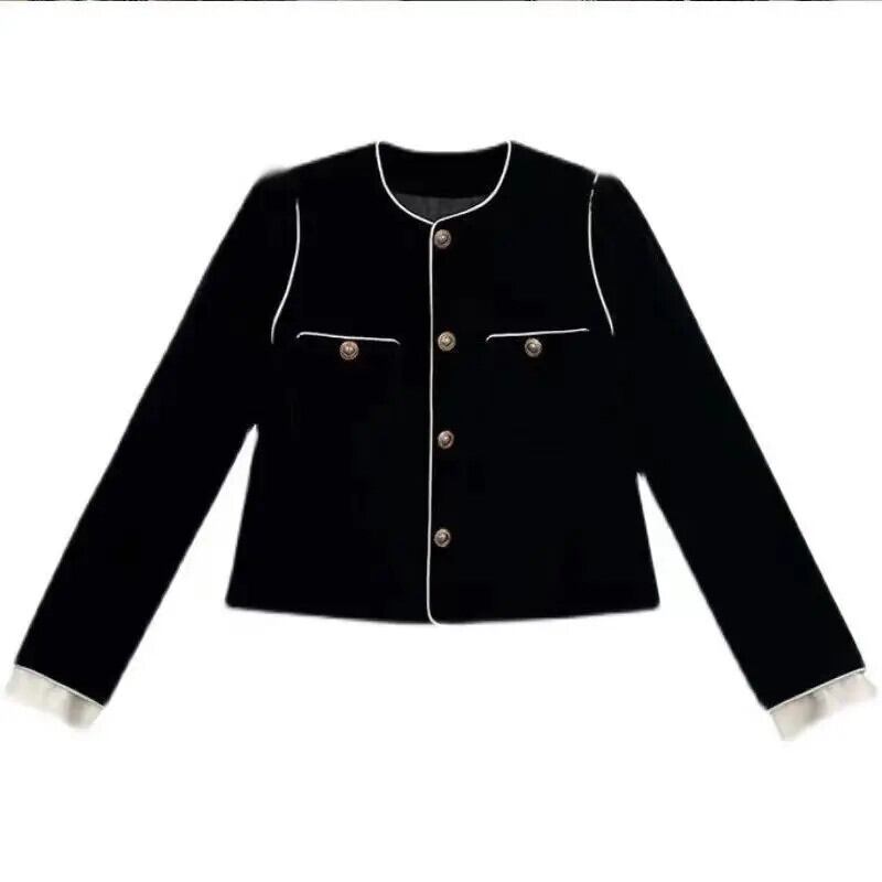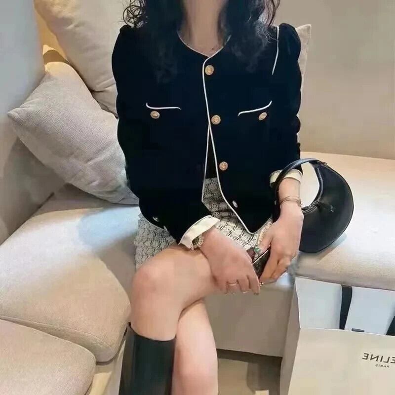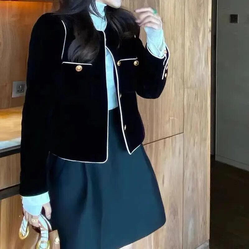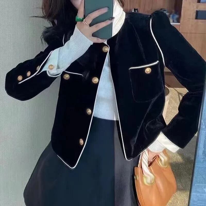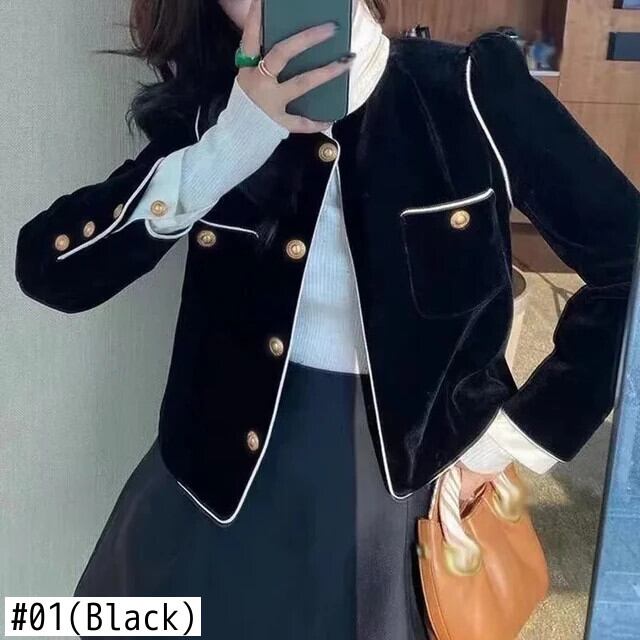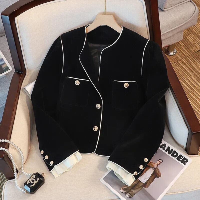 春秋レジャー気質ベルベットスーツコート黒ブレザー ブラック スプリング 春物 オータム 秋物