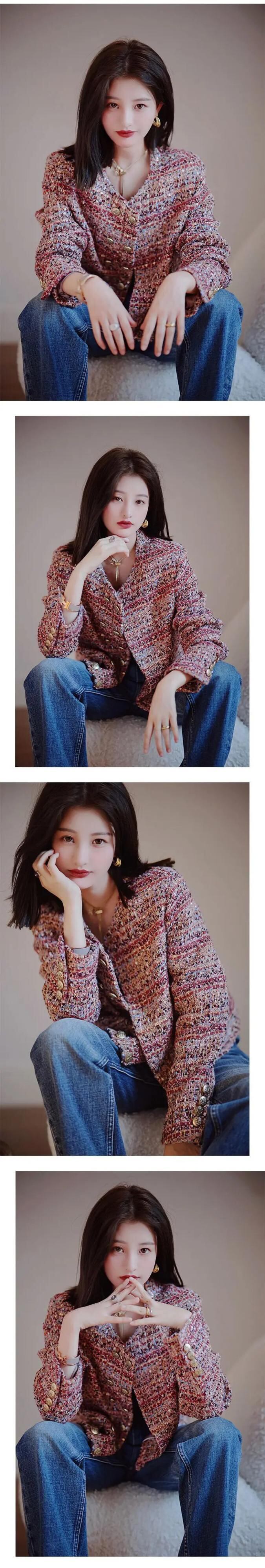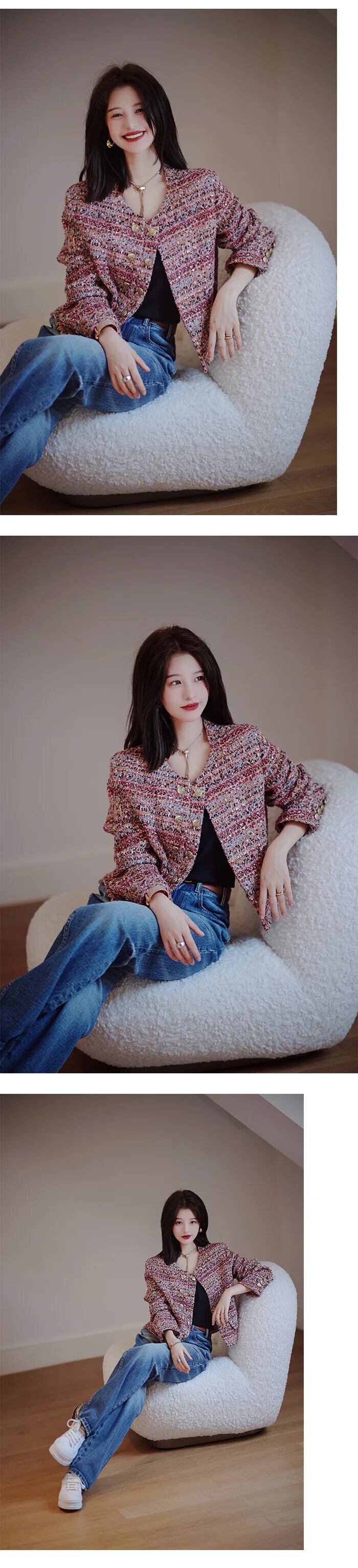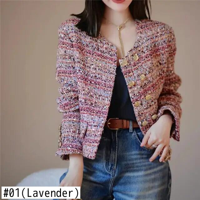 レディース ツイード ジャケット ルーズ 長袖 万能 アウター コート ロング