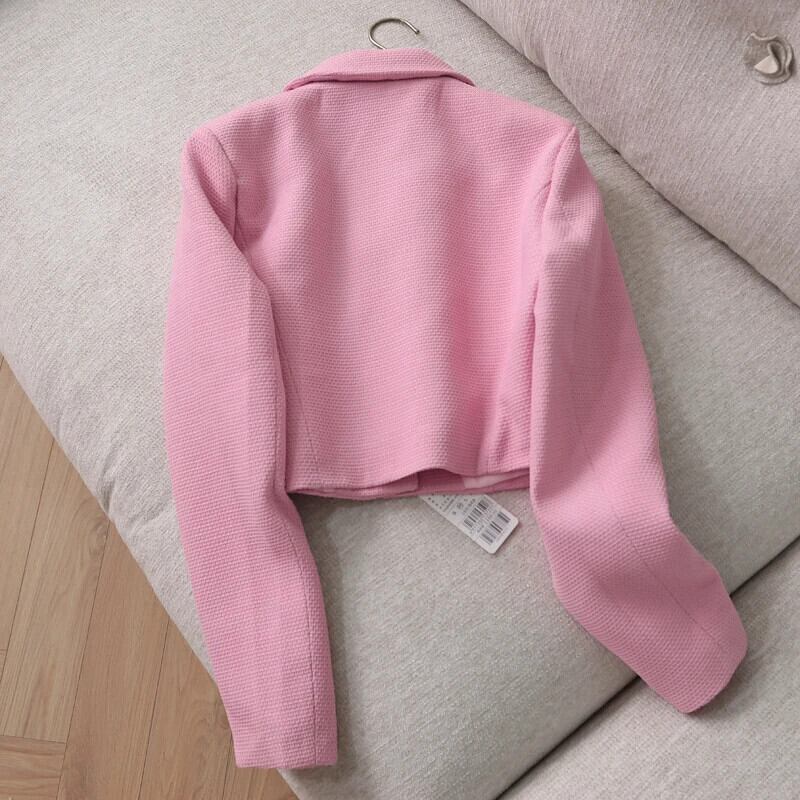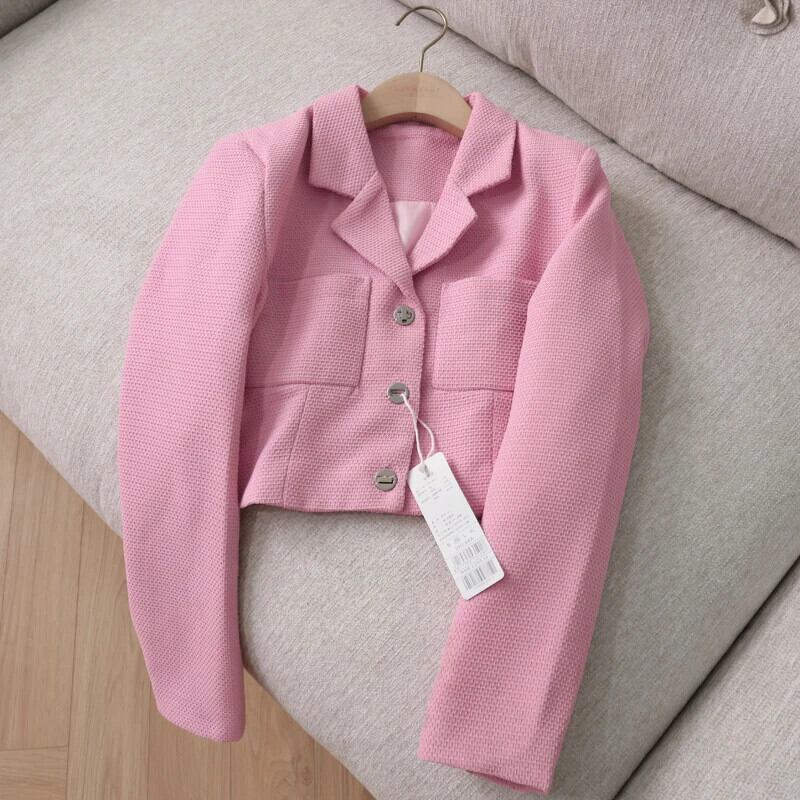 ソリッドポケットフレグランスショートスーツコート春秋ピンクブレザー スプリング 春物 オータム 秋物 ソリッドカラー