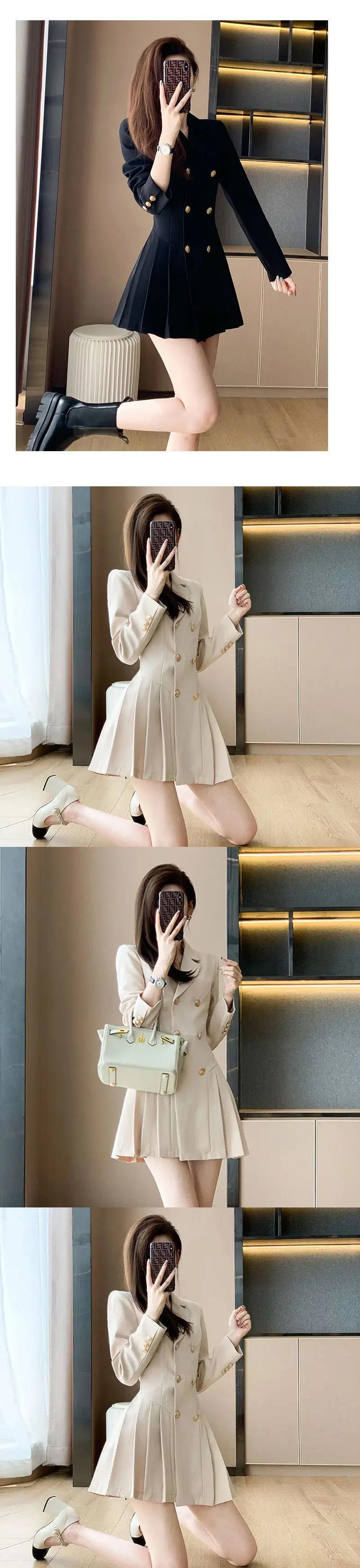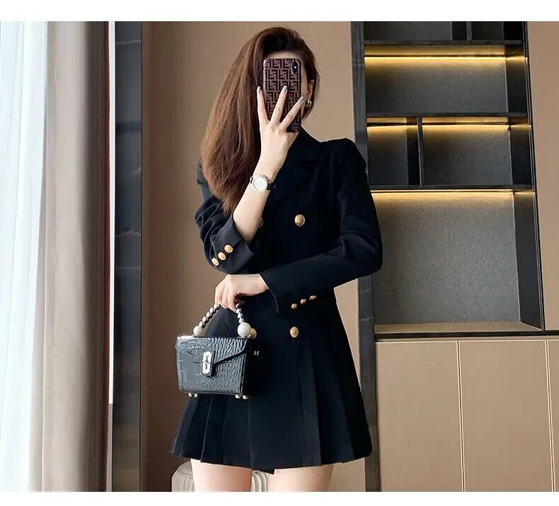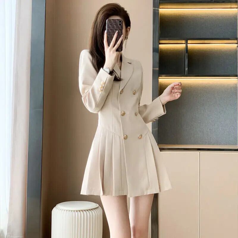 レディース春秋スタイル香りプリーツ長袖ドレス A ラインスリム Ladeis ロング スプリング 春物 オータム 秋物 Aライン