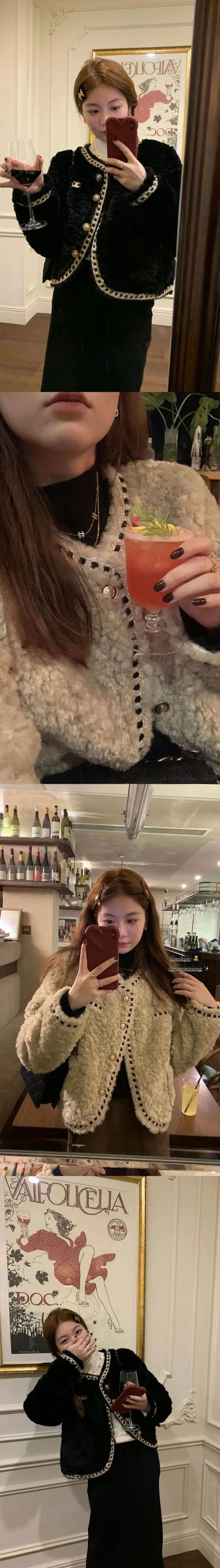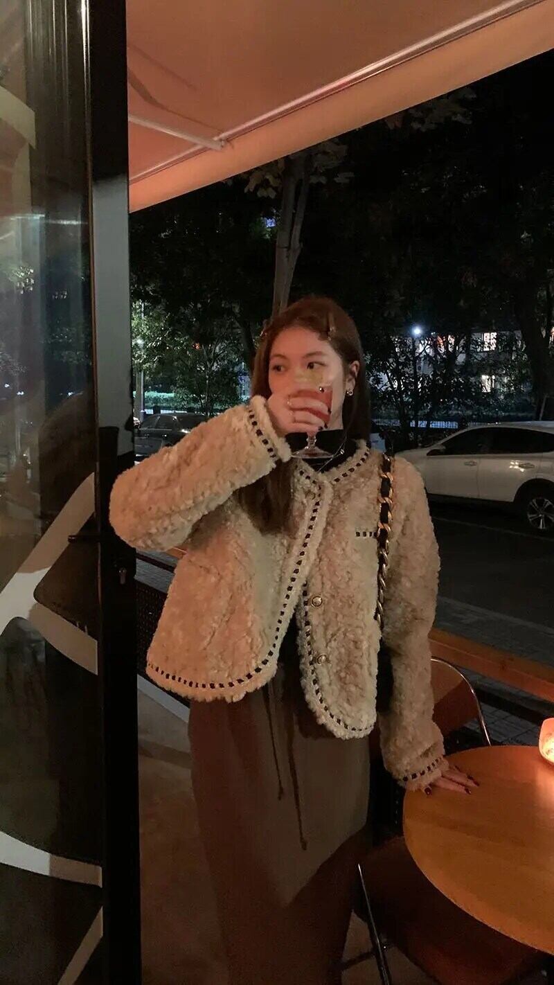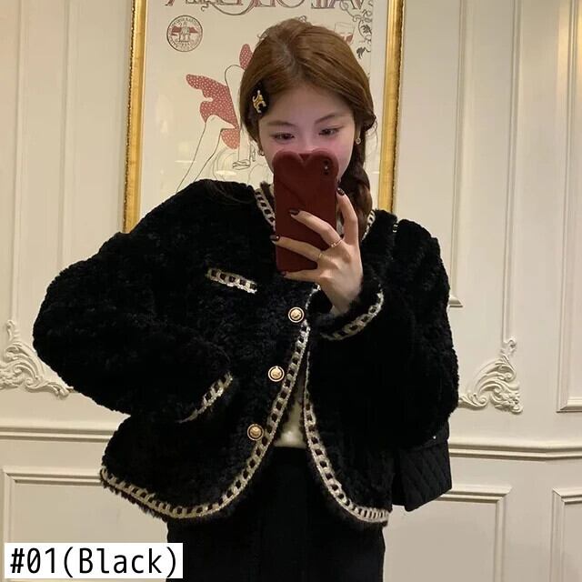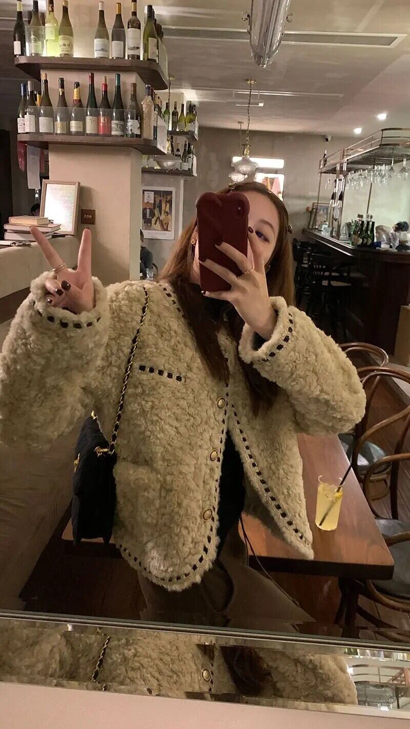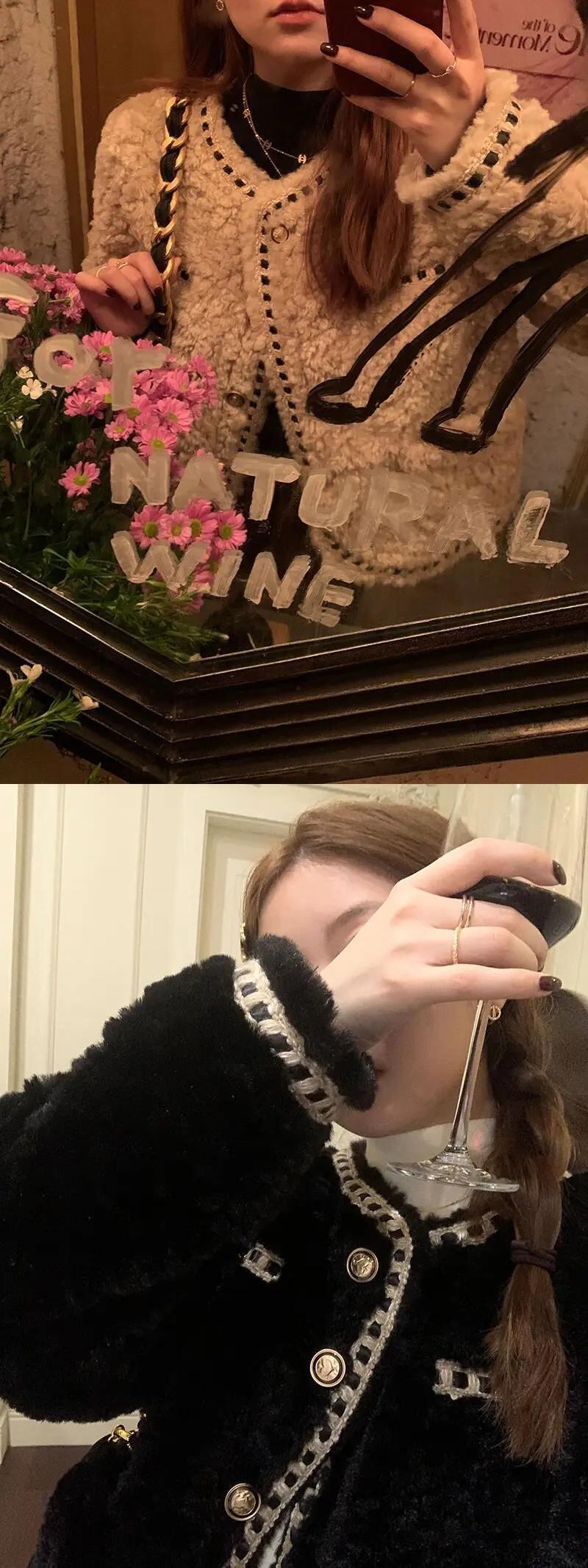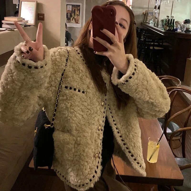 冬豪華厚いラウンドネック織られたルーズ香りラムファーコートジャケット ウィンター 冬物 Oネック
