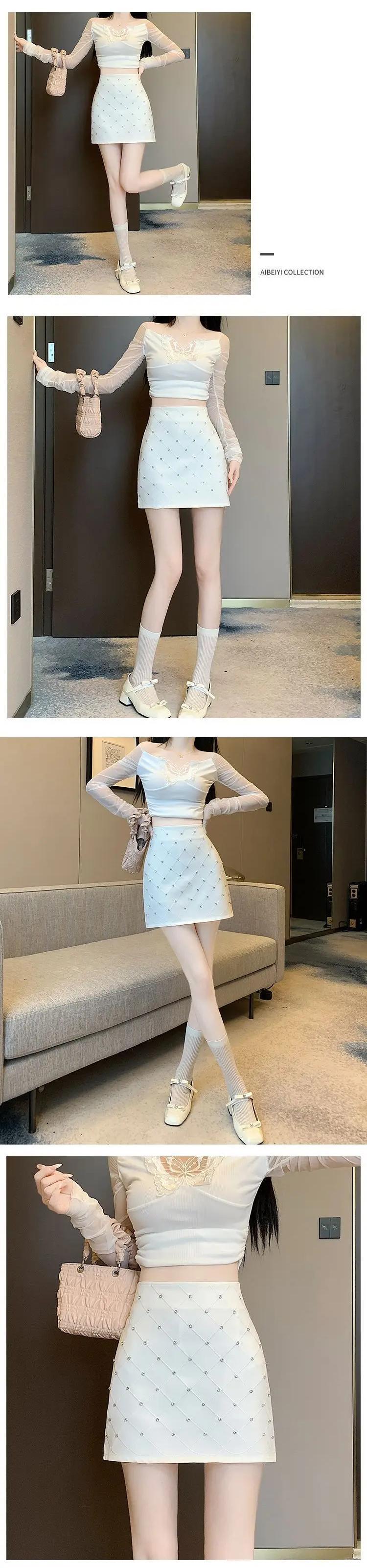 2024 春夏ホワイトブラックウエストスリムフィットスカート スプリング 春物 サマー 夏物