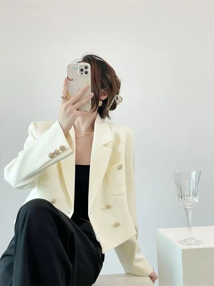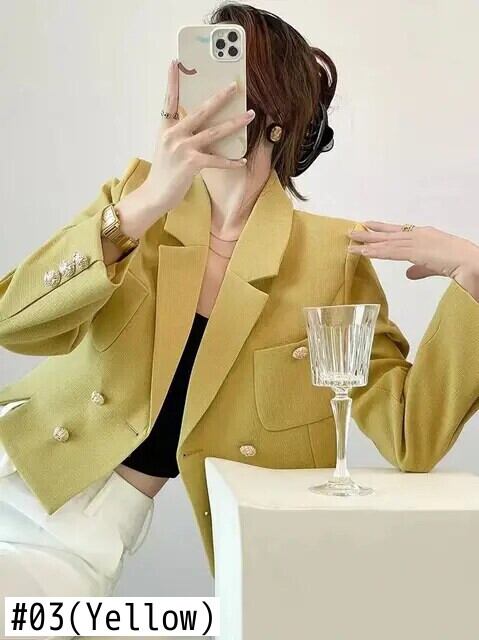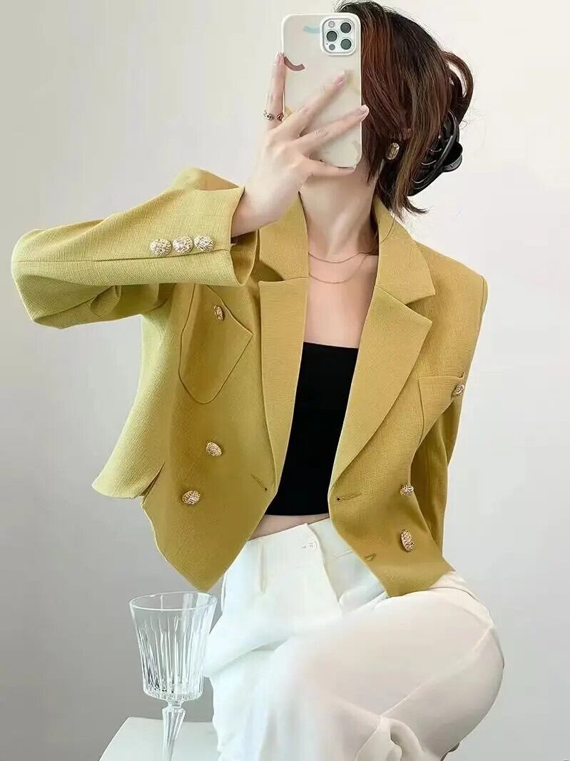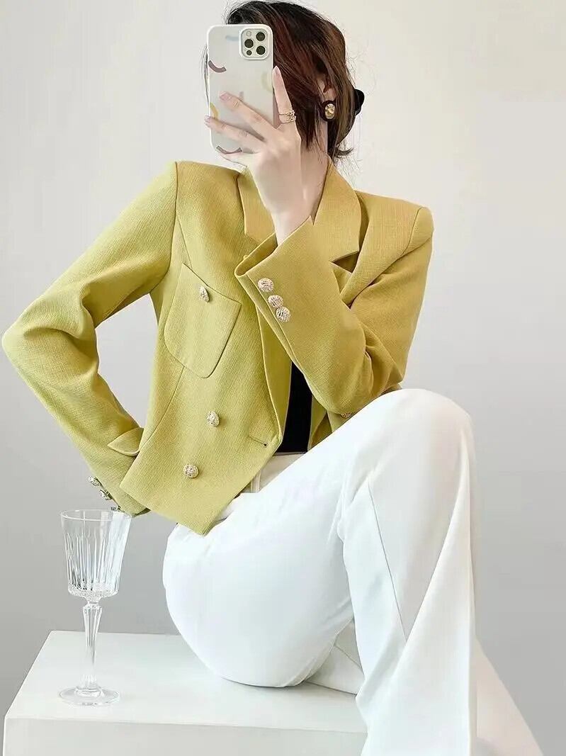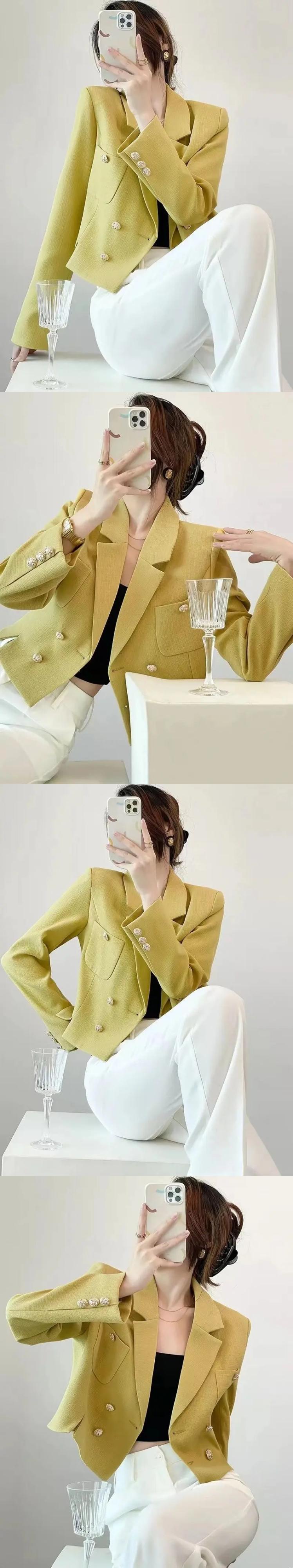 レモンイエローショートスーツジャケット春秋気質多用途ブレザー スプリング 春物 オータム 秋物