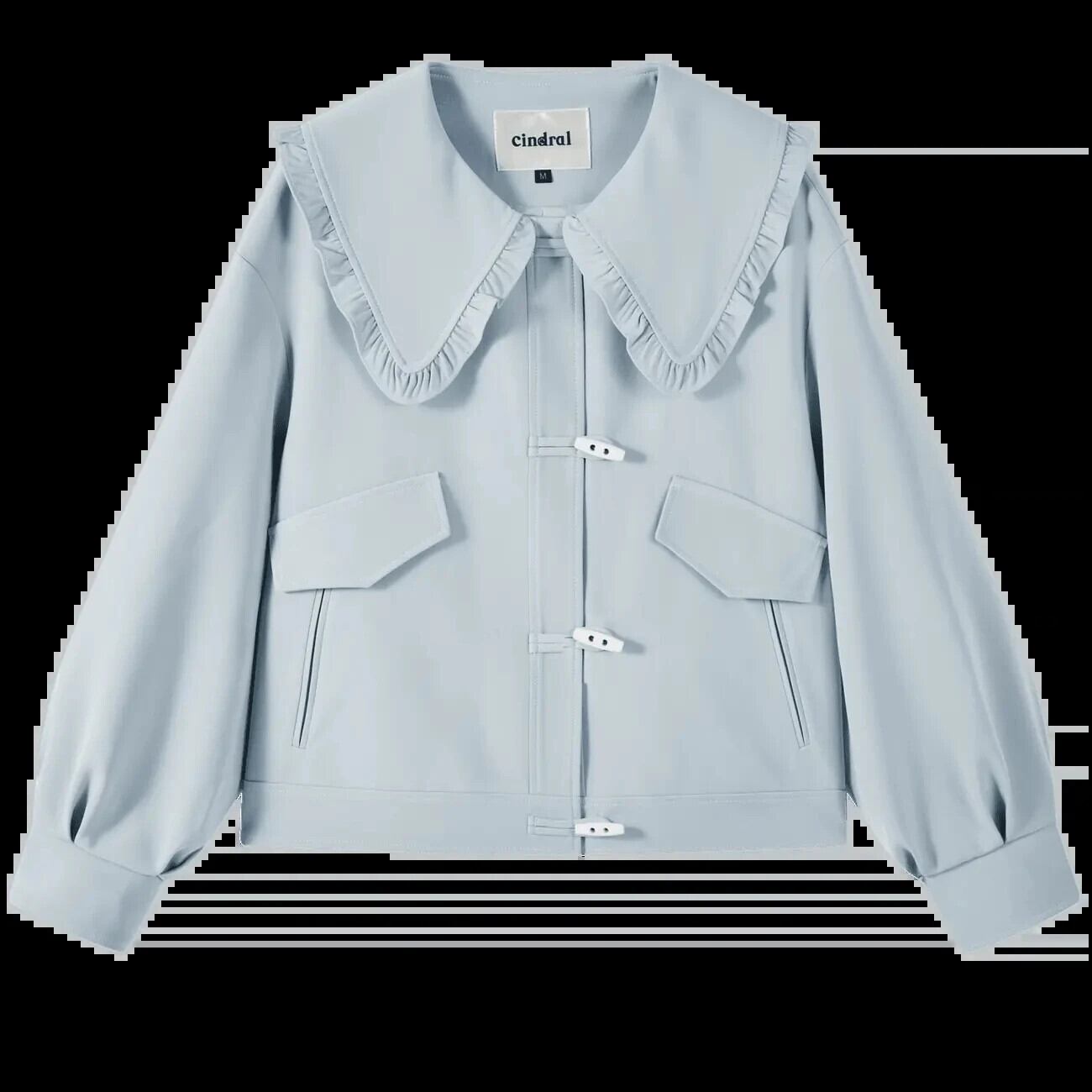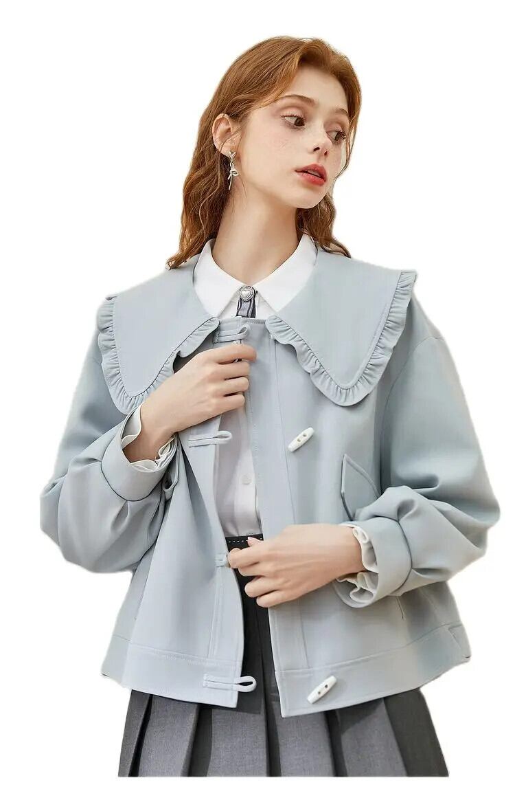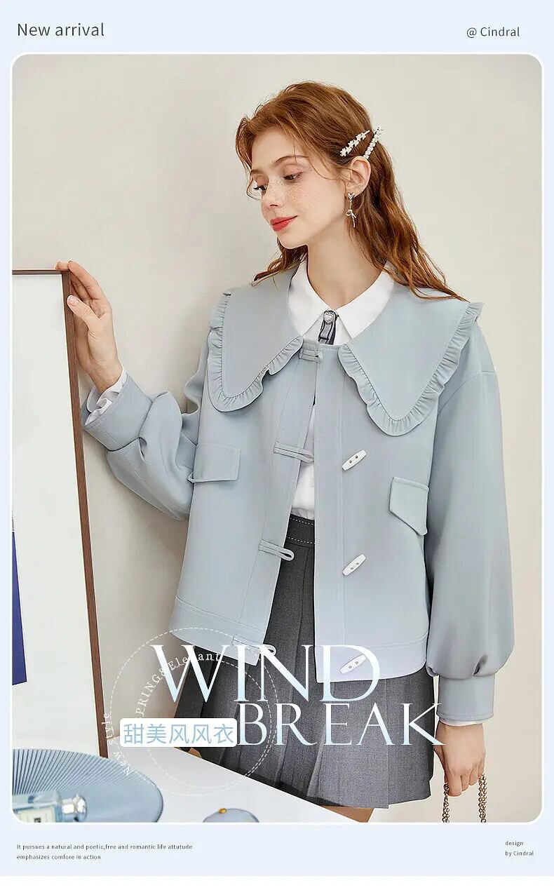 春秋ウインドブレーカー コート レディース ショート ウッド イヤー エッジ トレンチ スプリング 春物 オータム 秋物