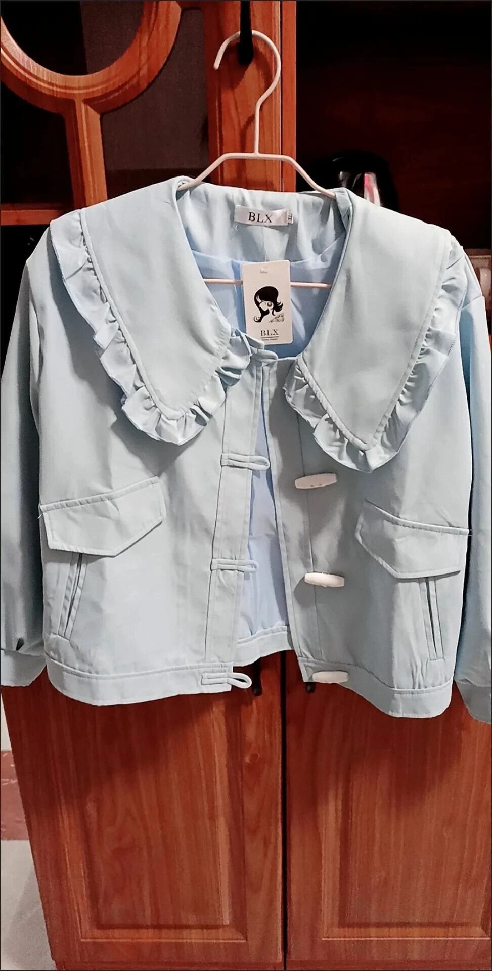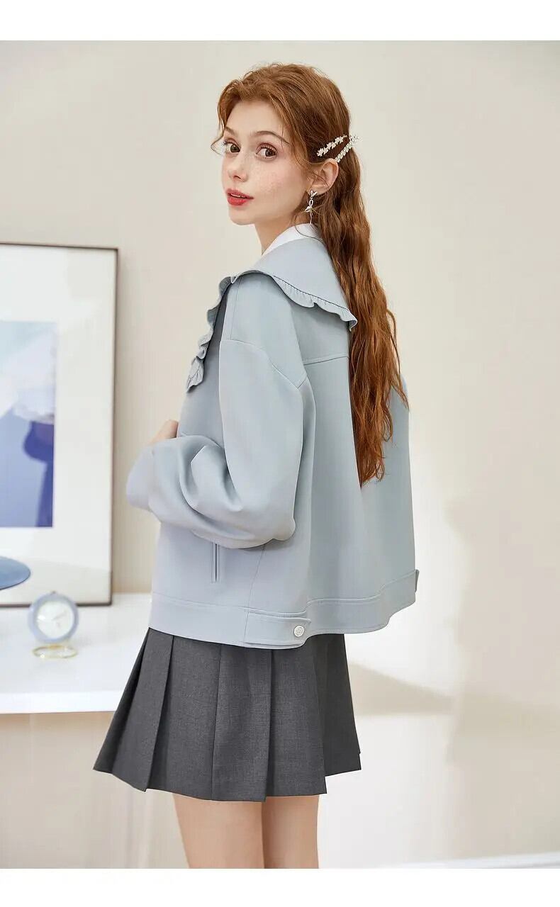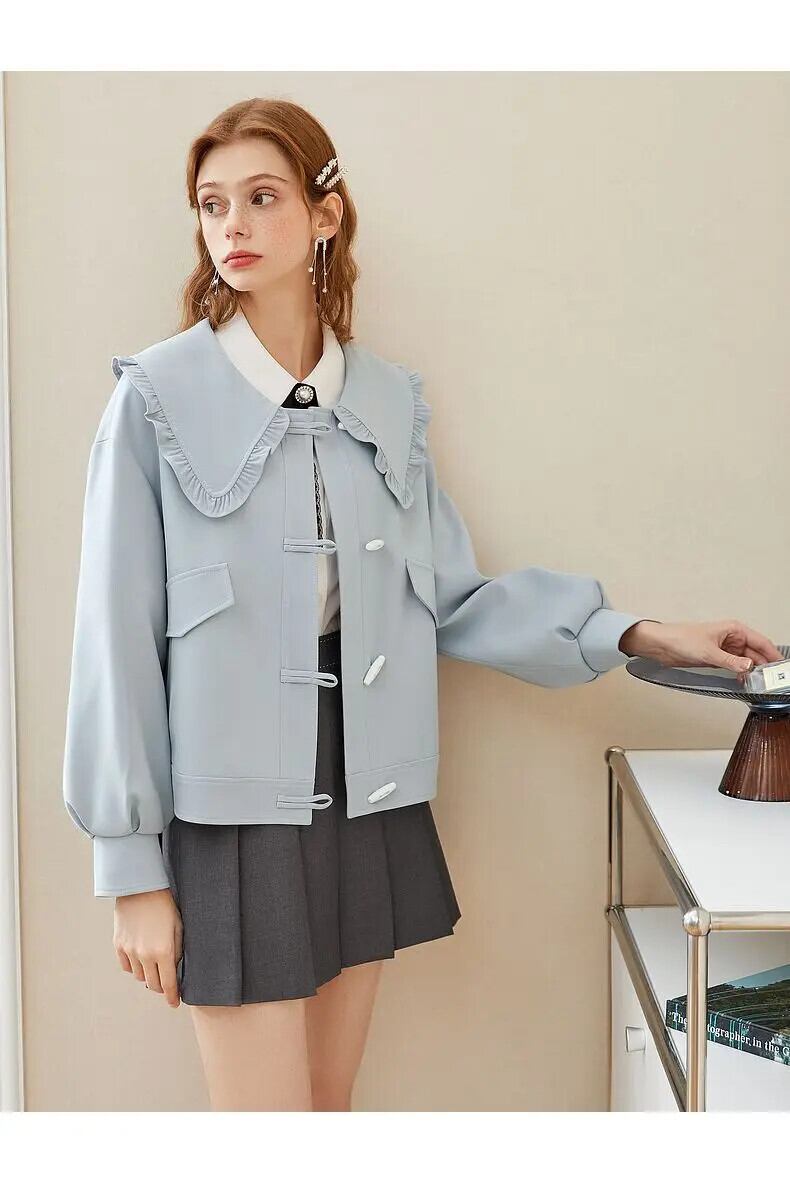 春秋ウインドブレーカー コート レディース ショート ウッド イヤー エッジ トレンチ スプリング 春物 オータム 秋物