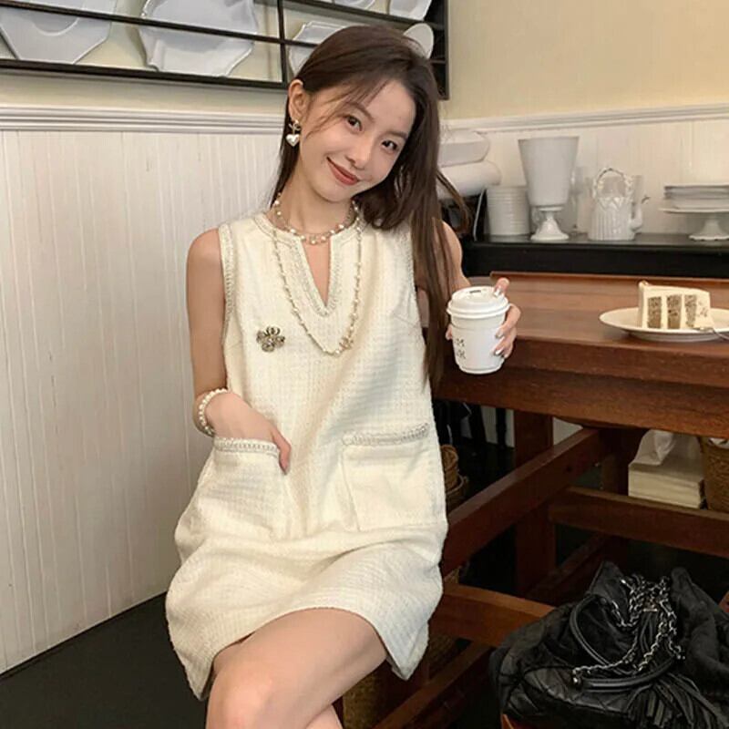 夏 2024 ユニークブラック ホワイト タンク トップ ドレス Vestido Feminino サマー 夏物