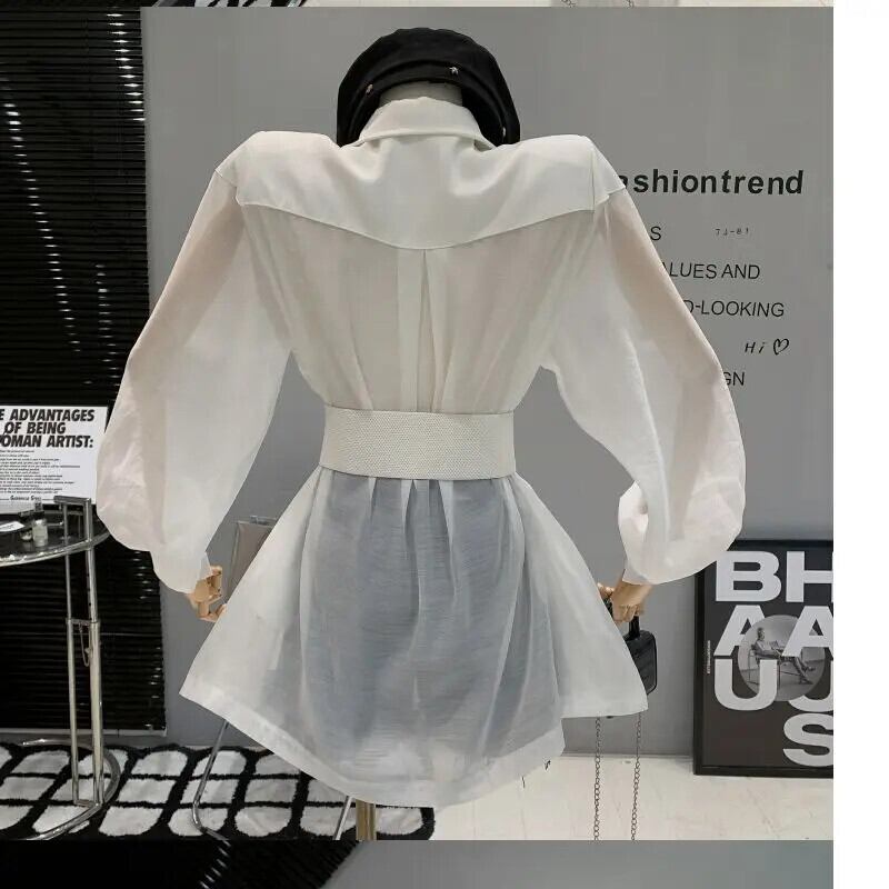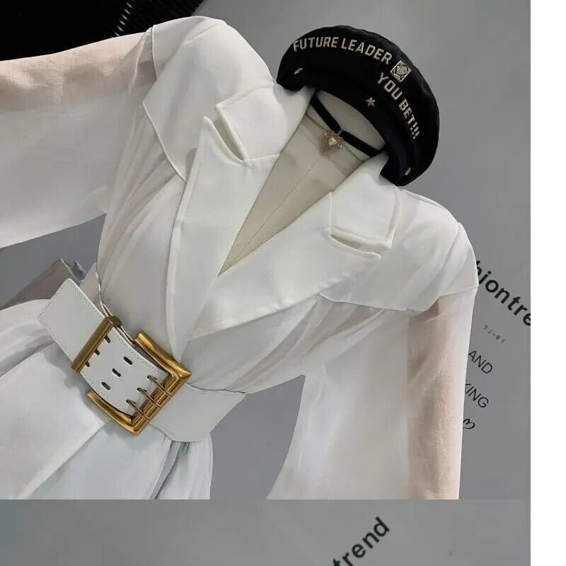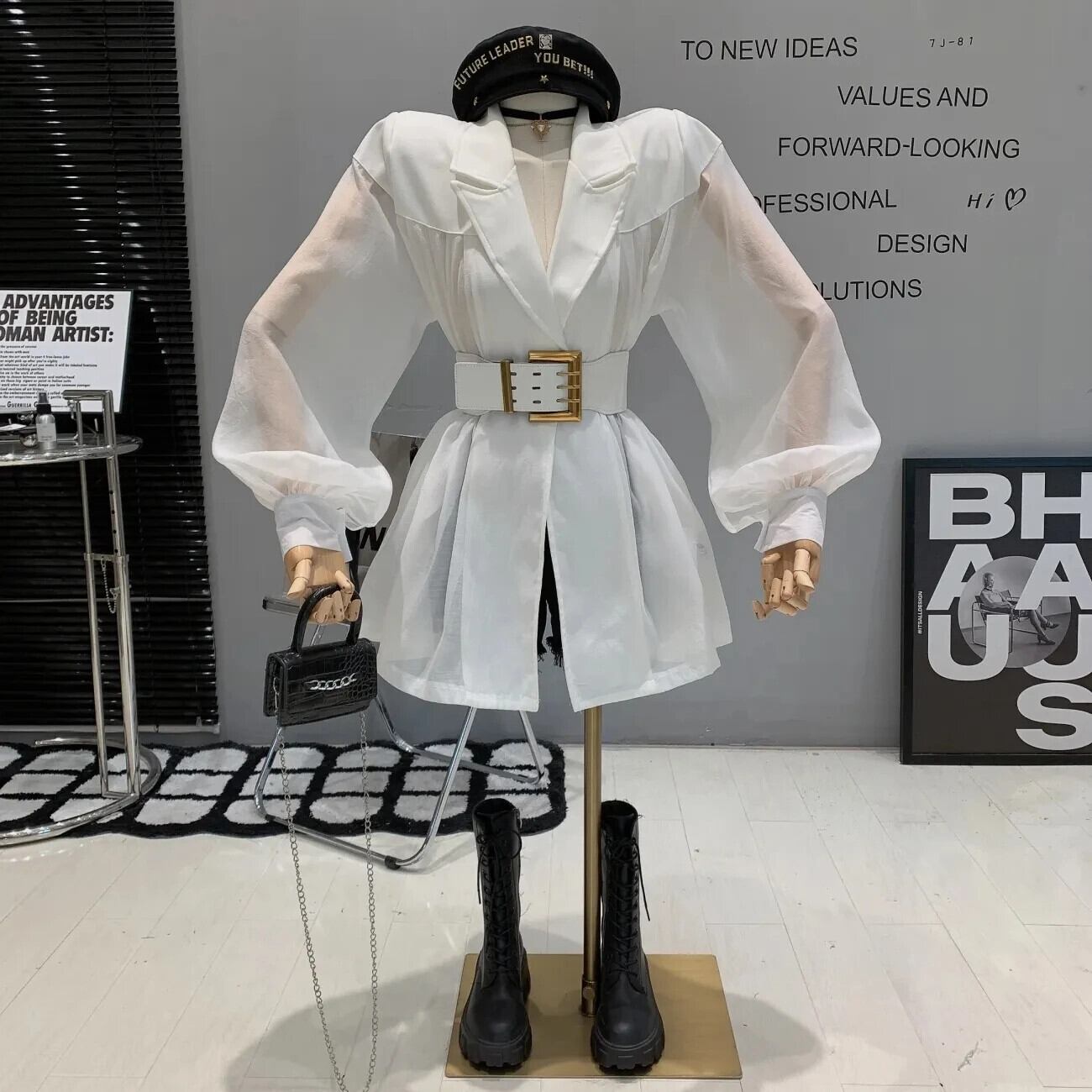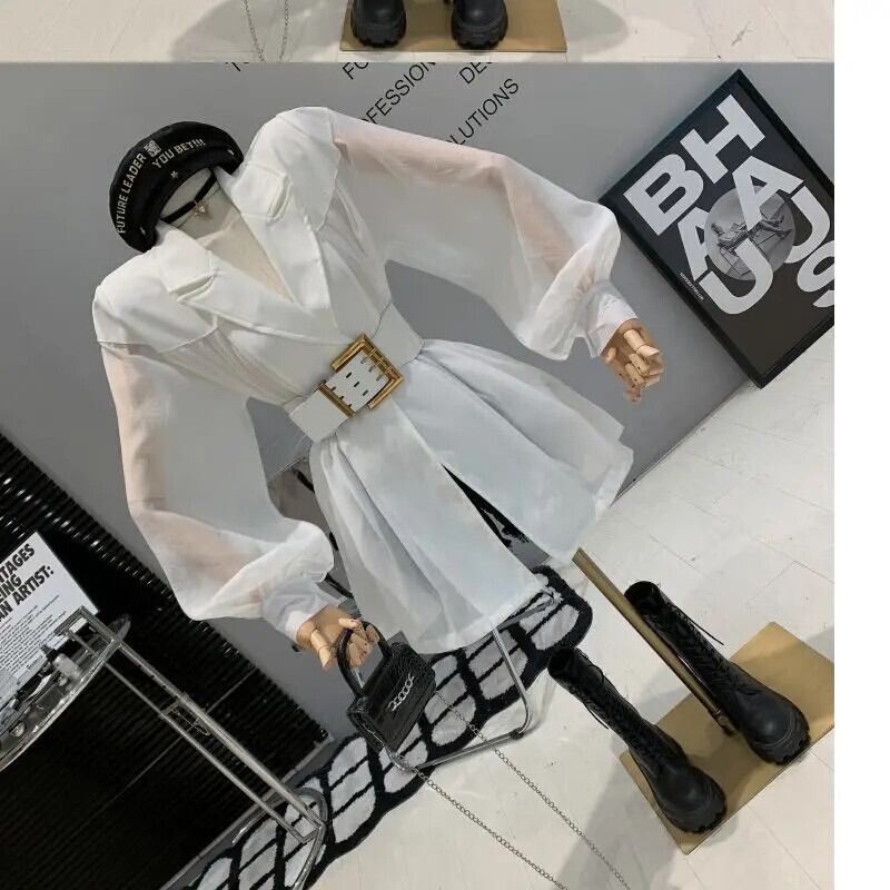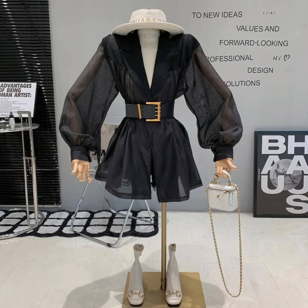 春/夏黒香りワイドウエストメッシュブレザーパッチワークわずか透明日焼け止めラップスーツコート ブラック スプリング 春物 サマー 夏物