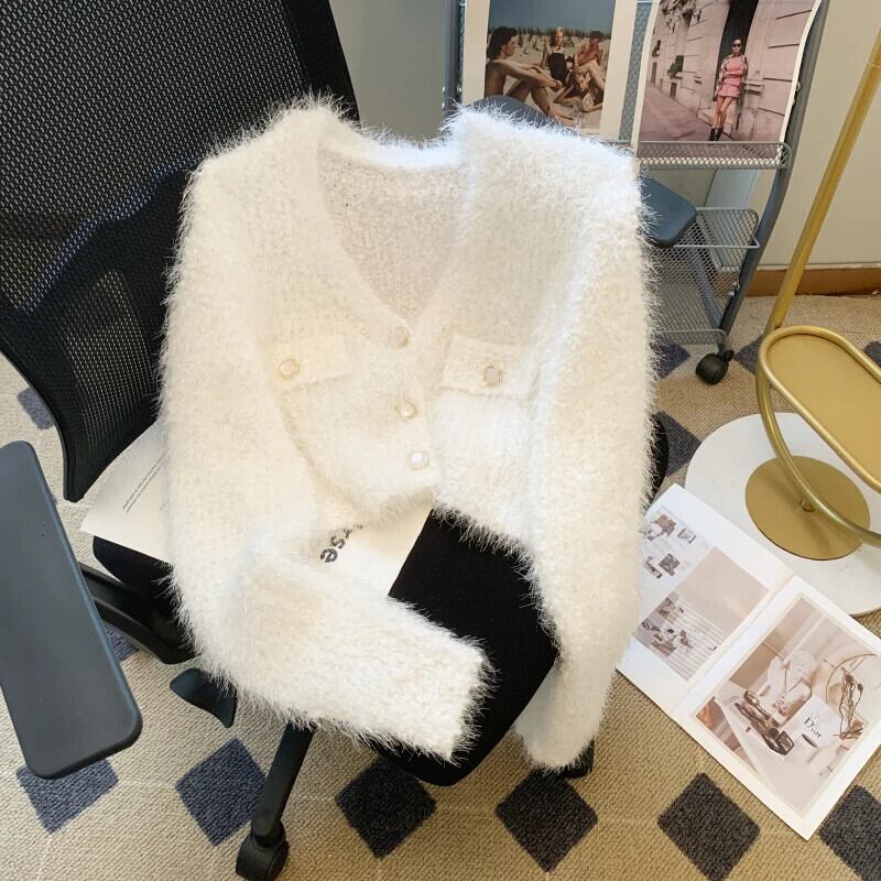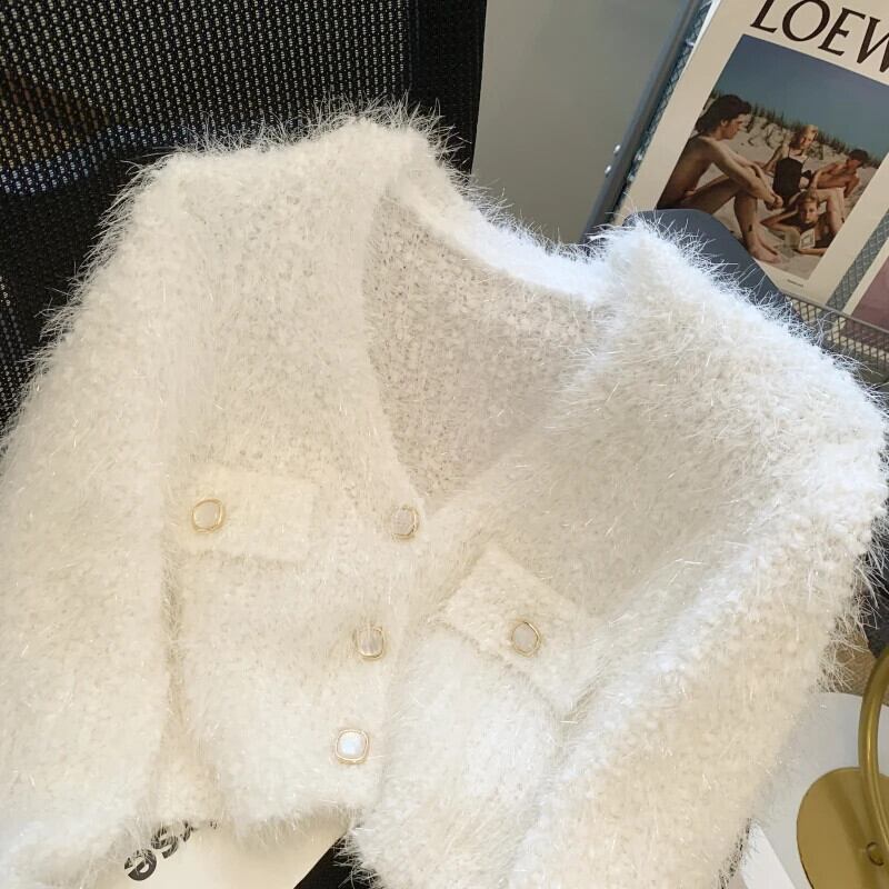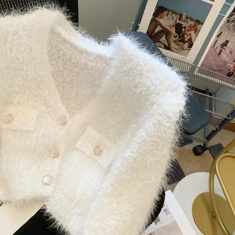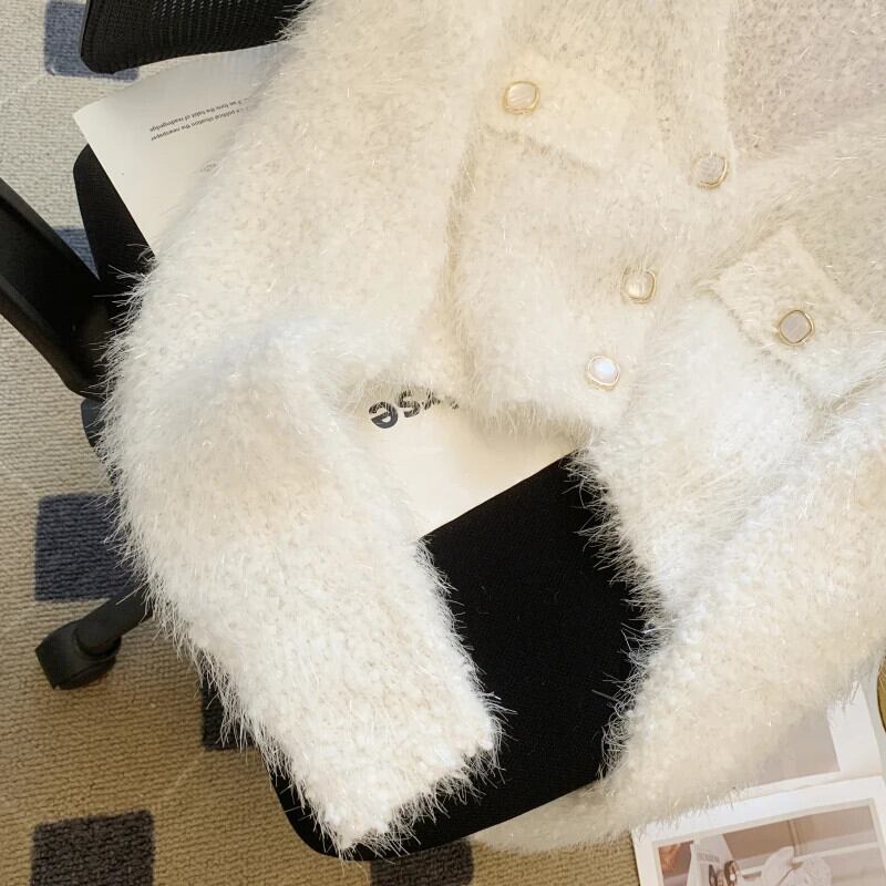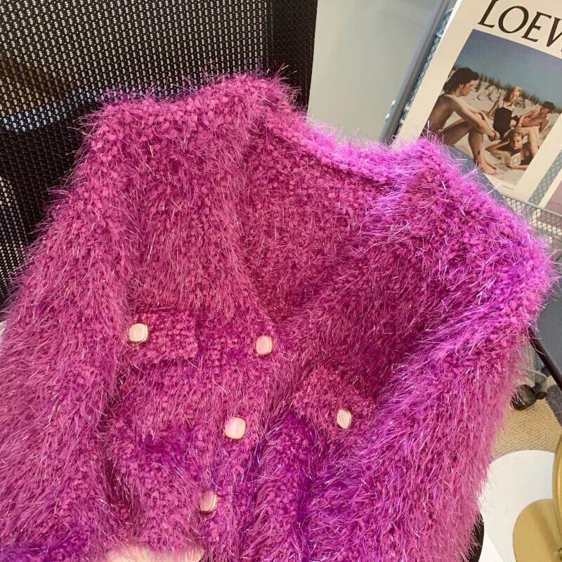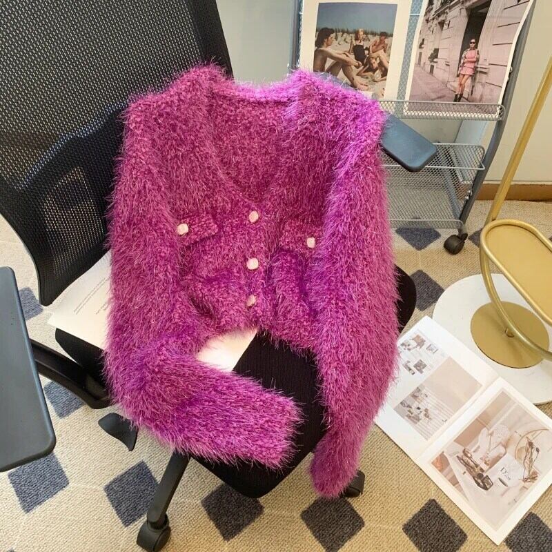 ソフトもちニットカーディガン秋冬白紫赤ショートセーター ホワイト レッド オータム 秋物 ウィンター 冬物 パープル