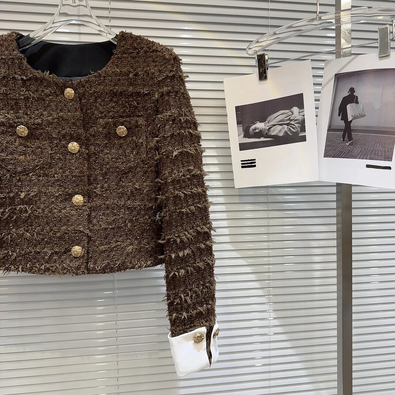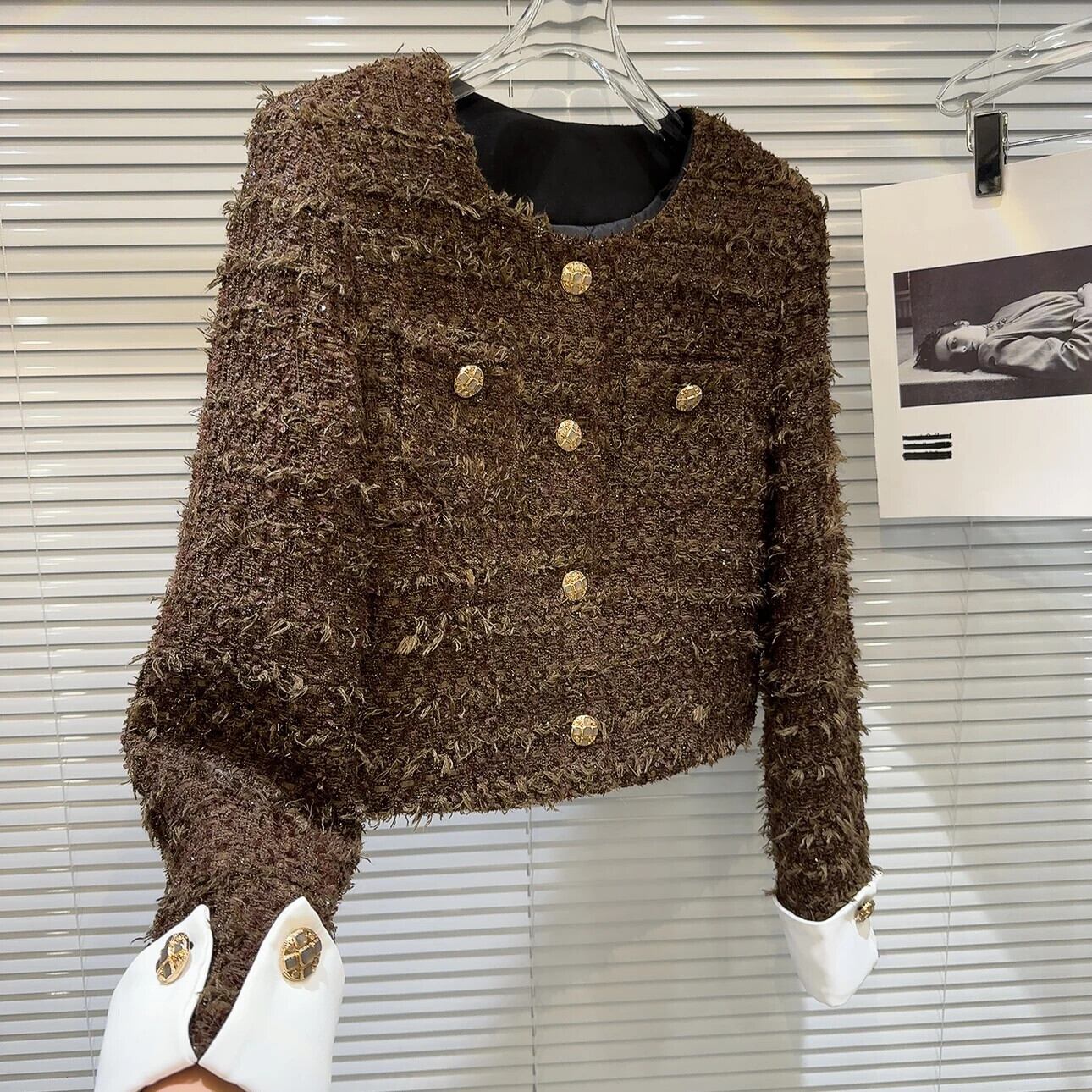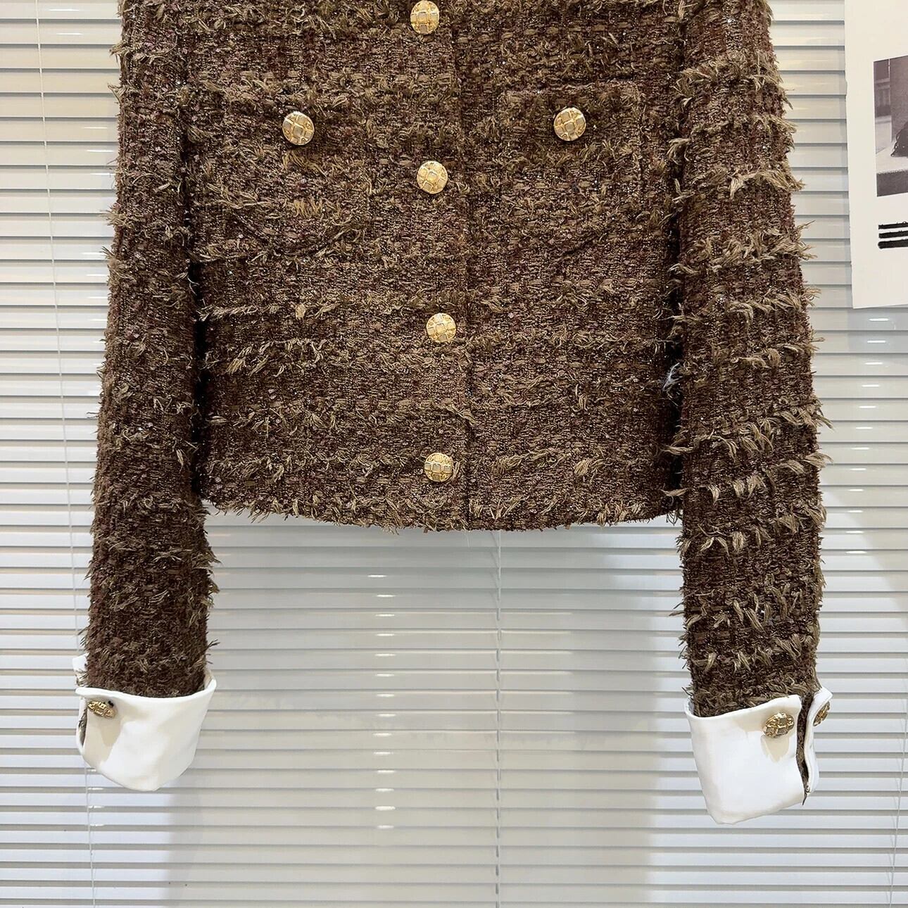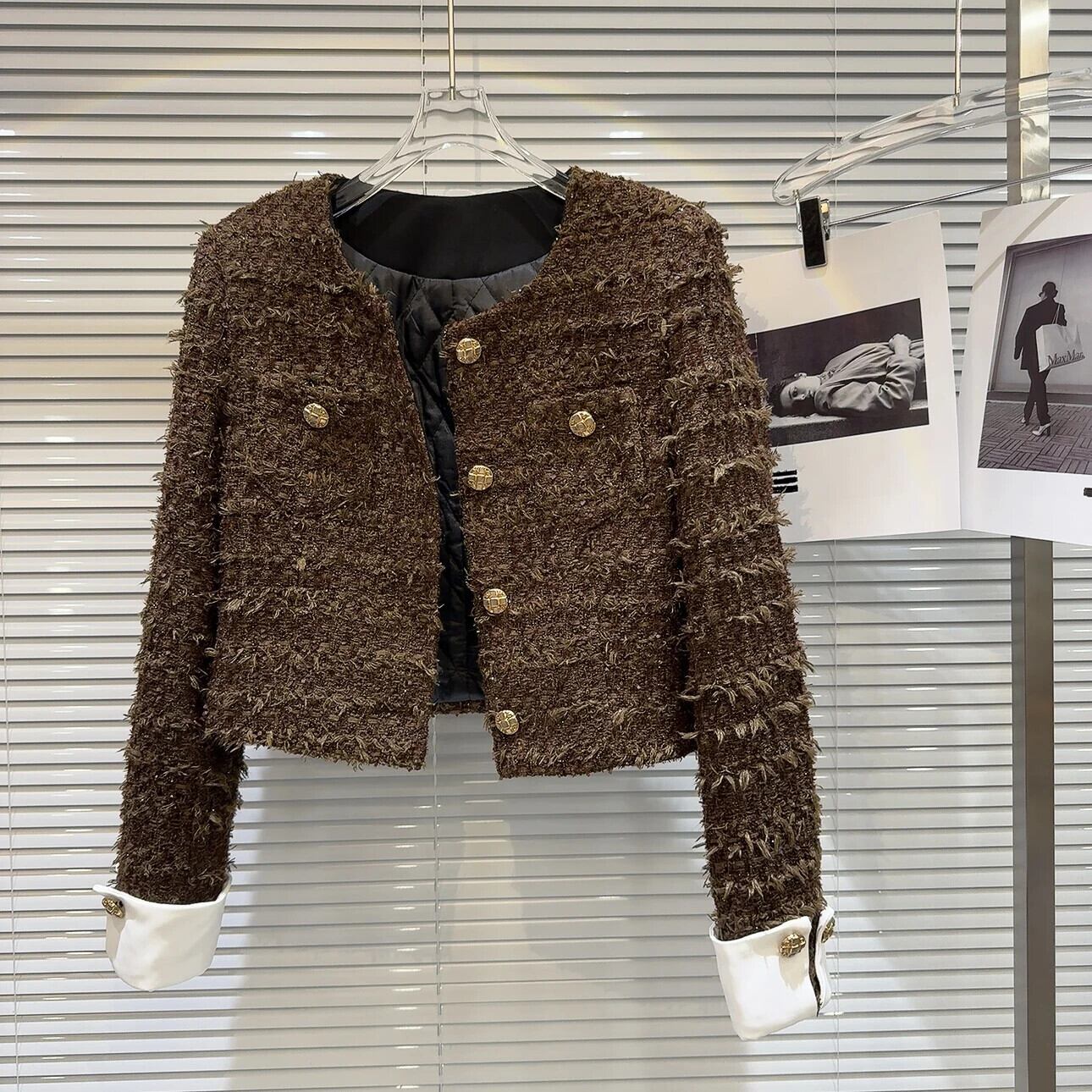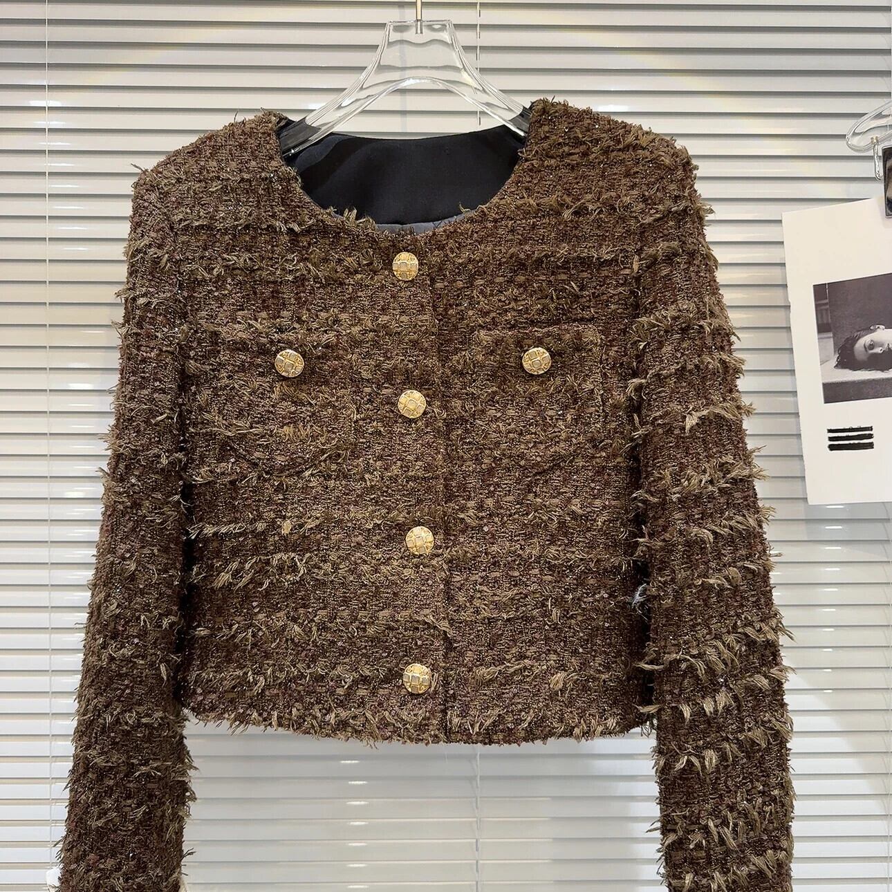 冬香りスタイルメタルボタン厚いツイードコットンショートコートコーヒー品質ウールジャケット ウィンター 冬物