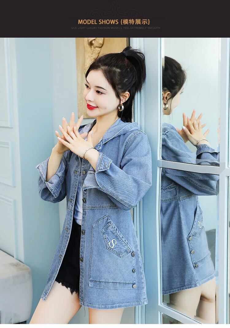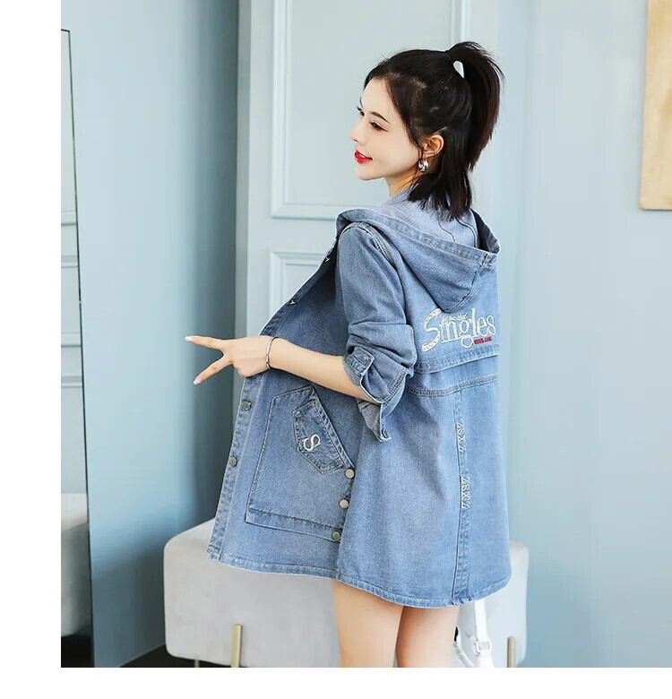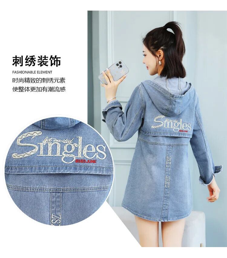 春秋スリムフィットデニムジャケット重工業刺繍フード付きジーンズコート スプリング 春物 オータム 秋物