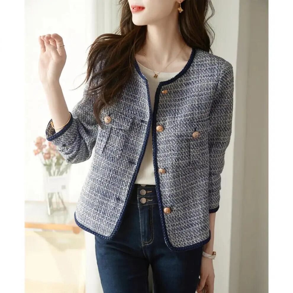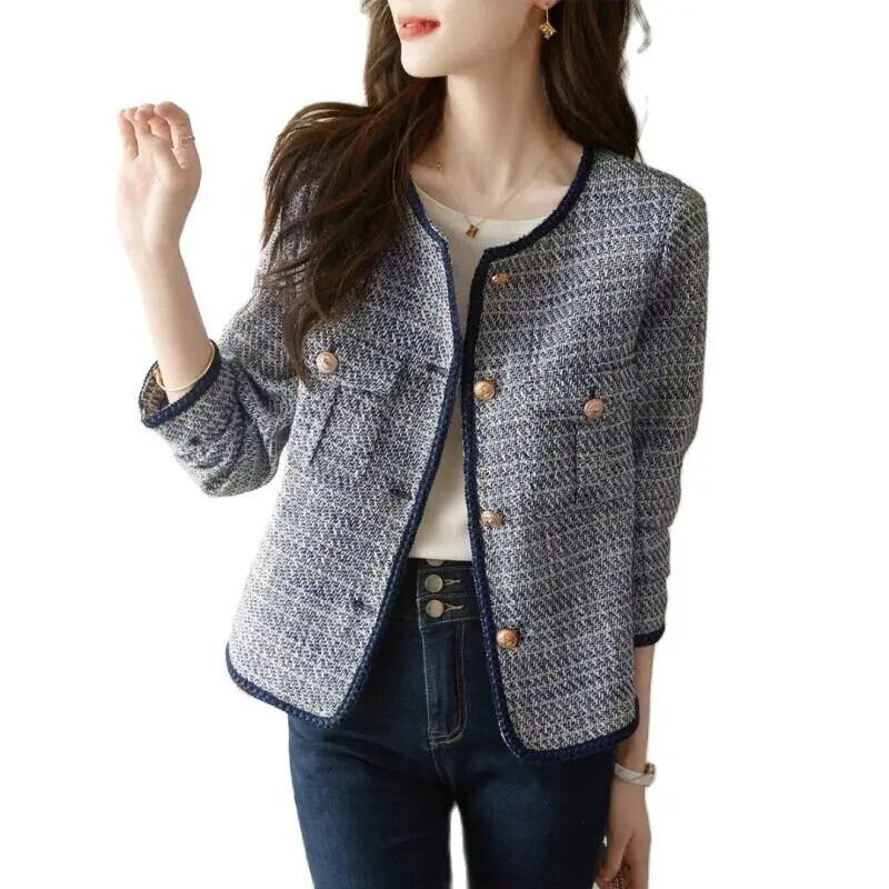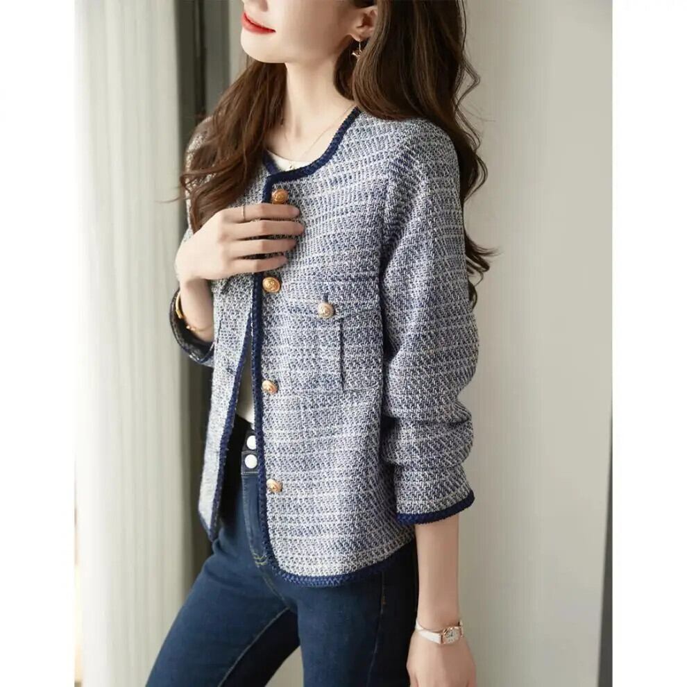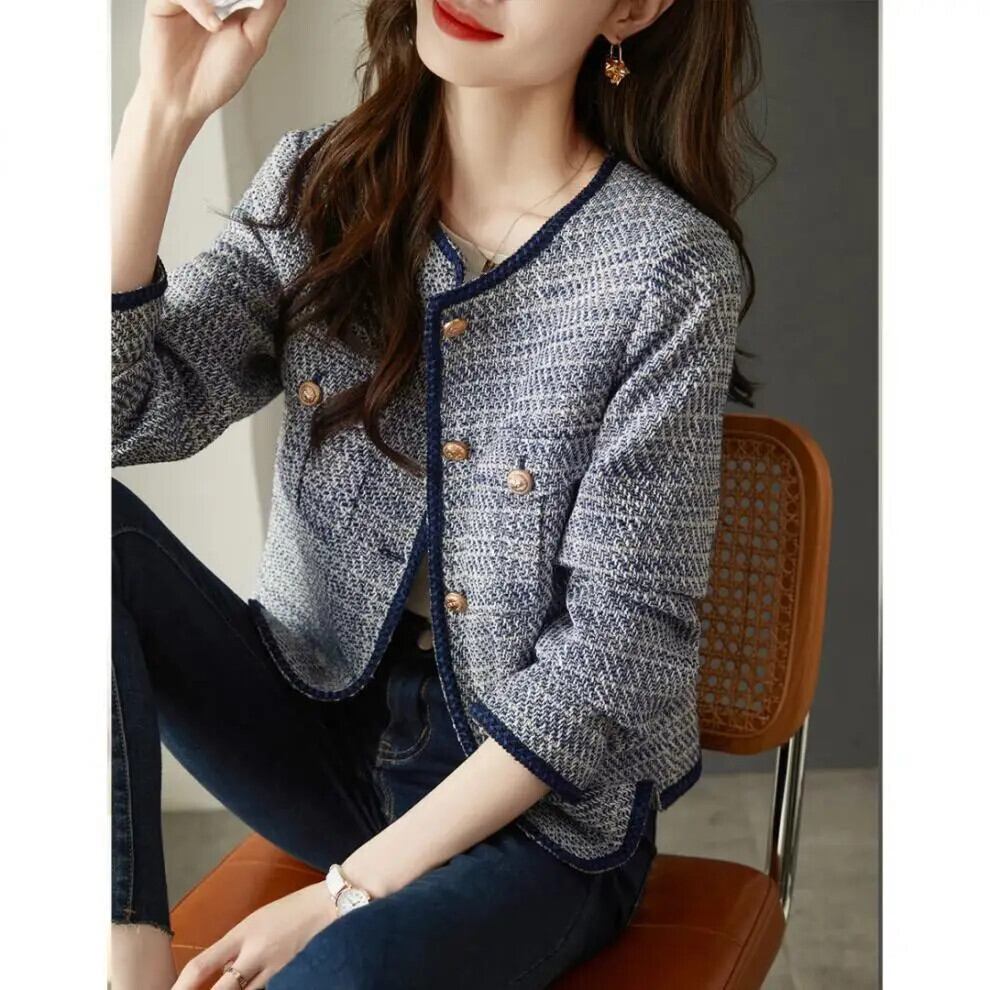 ツイードスーツコート秋レトロカーディガンシックシングルブレスト長袖ブレザージャケット ロング オータム 秋物