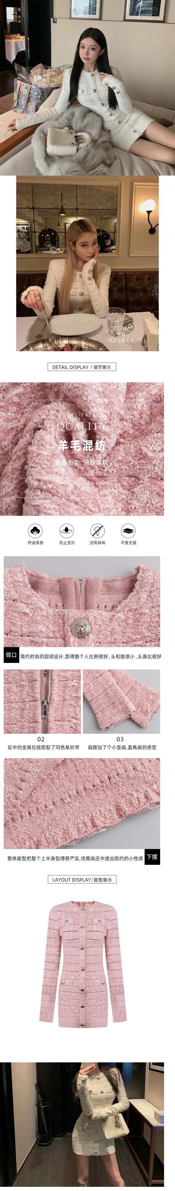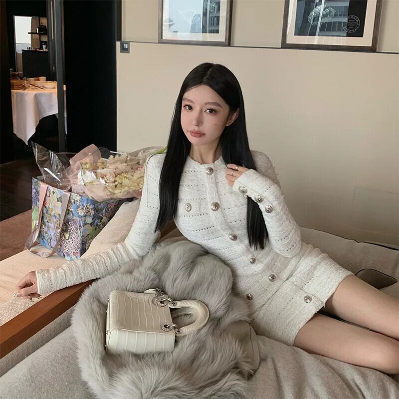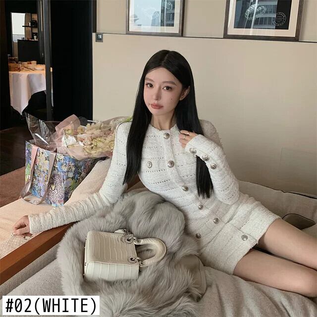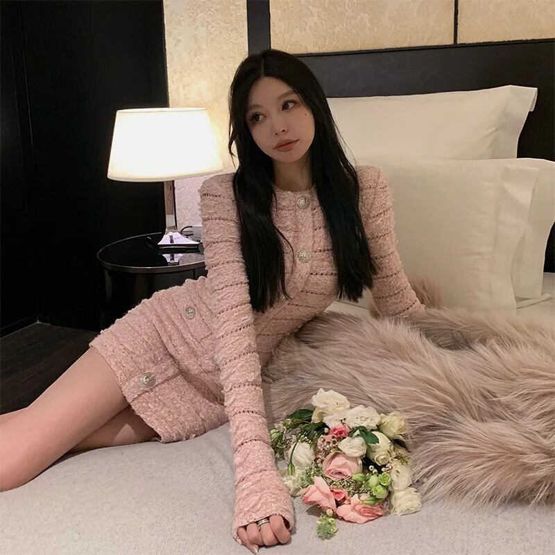 秋冬ノースリーブセレブホワイトピンク長袖ニットドレス Vestidos ローブ ロング オータム 秋物 ウィンター 冬物