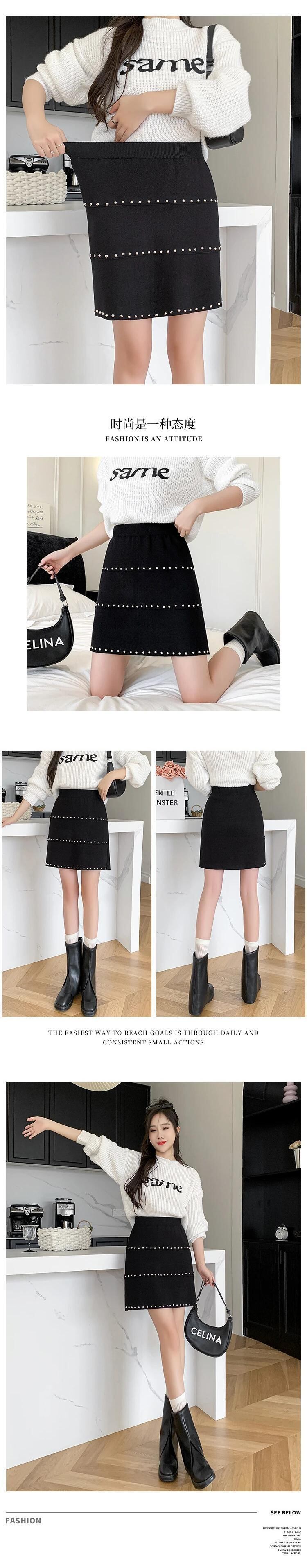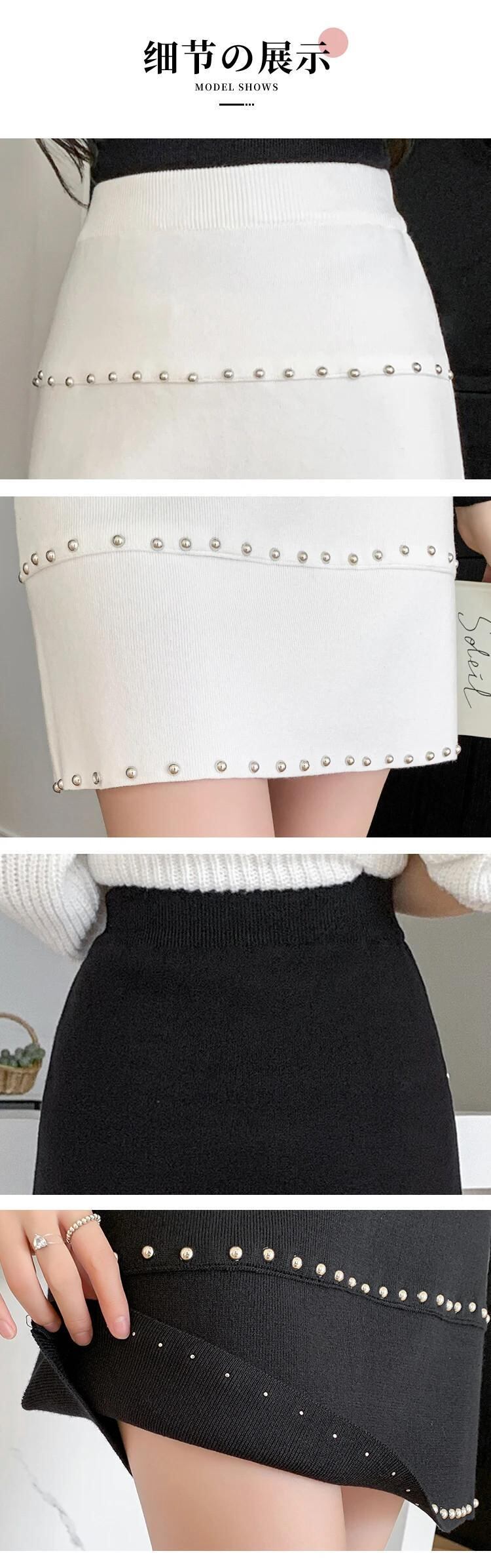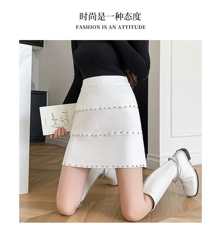 レディース秋冬ウエストAラインニットリベットスカート オータム 秋物 ウィンター 冬物