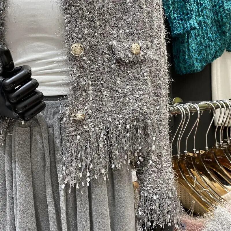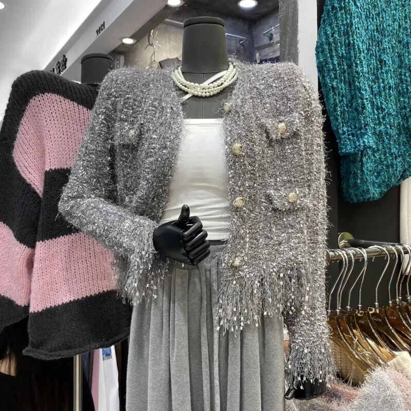 エイブル秋セーター スパンコール V ネック長袖テル レディース フレア スリーブ ニット カーディガン コート ロング フレアスリーブ オータム 秋物 Vネック