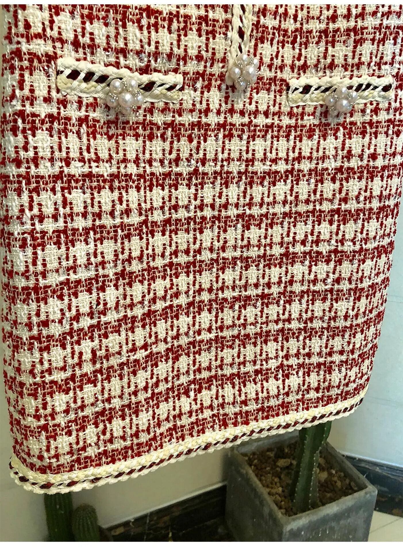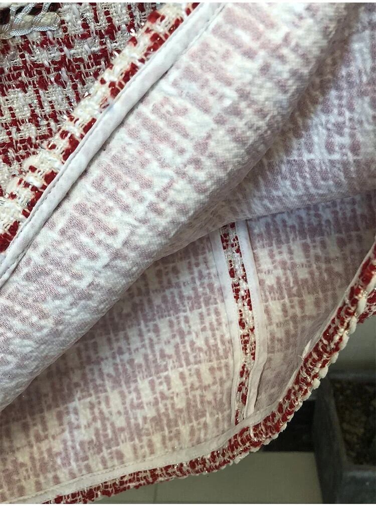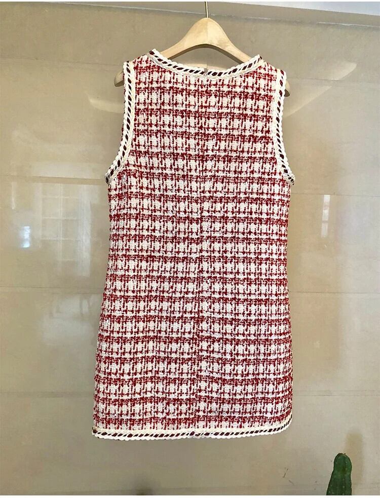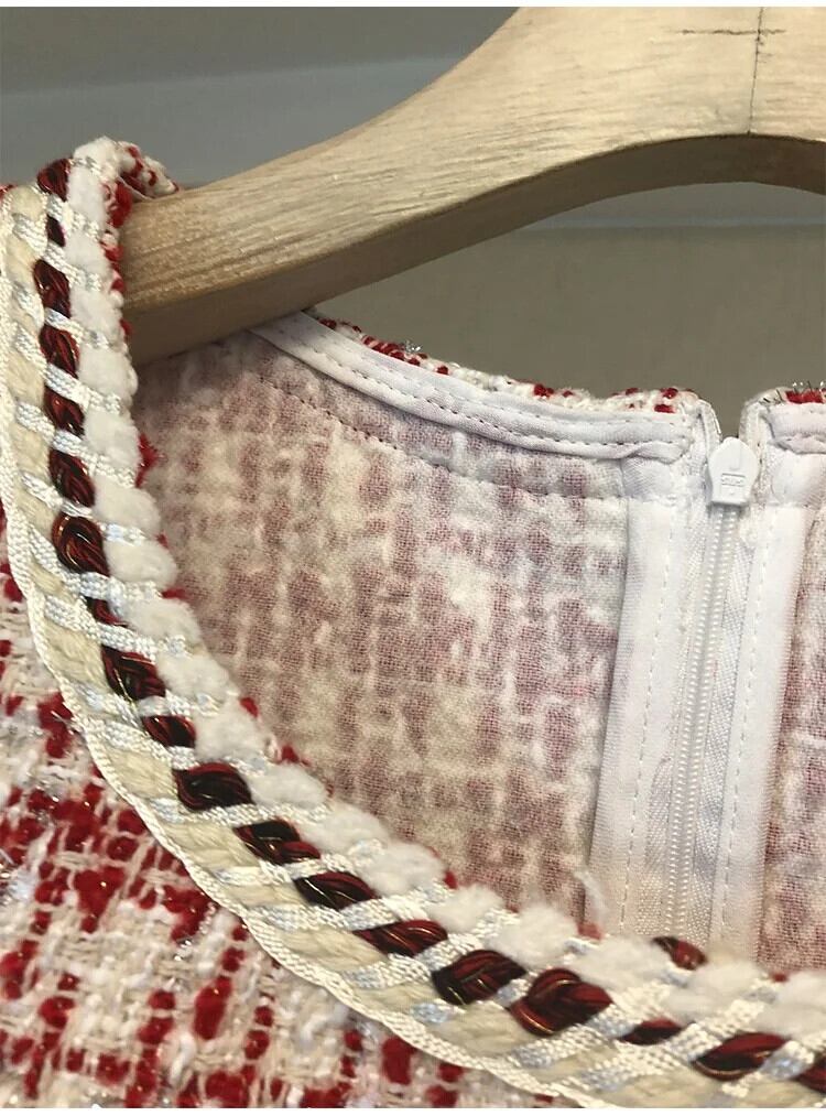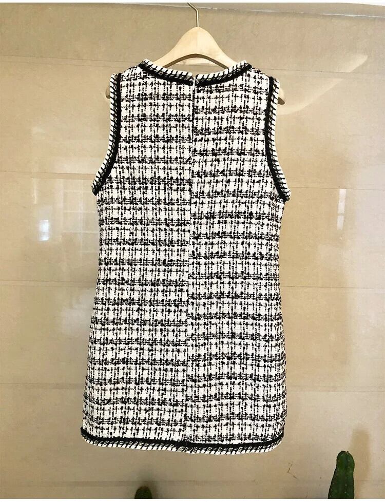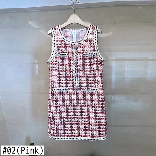 春秋気質 A ラインツイードチェック柄ビーズベストドレスパーティーローブ Vestidos スプリング 春物 オータム 秋物 Aライン
