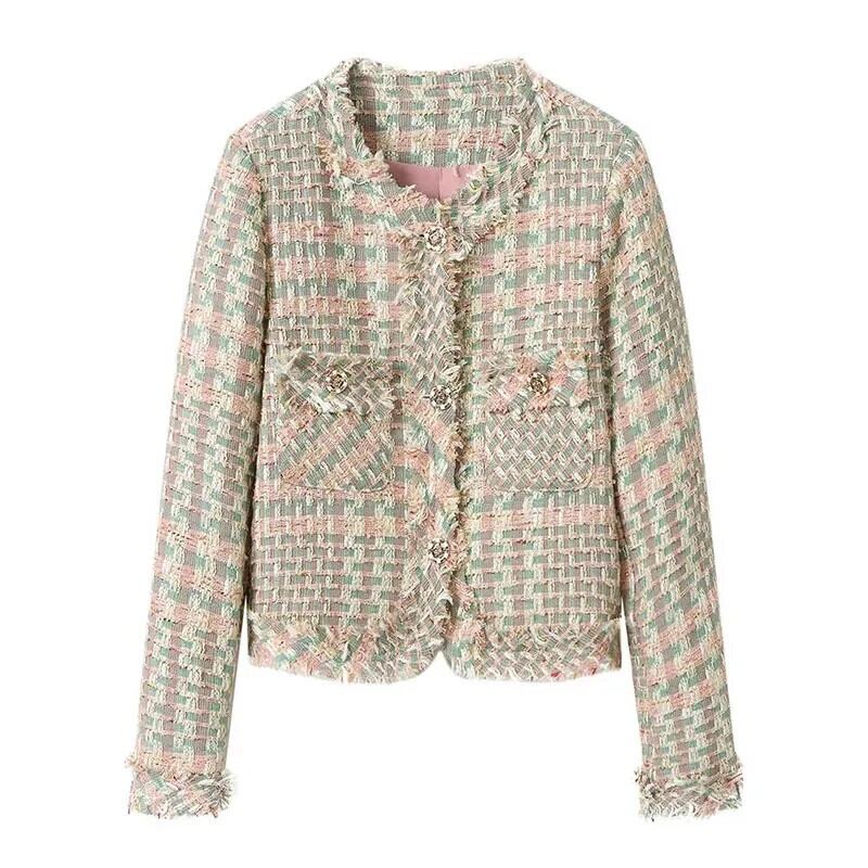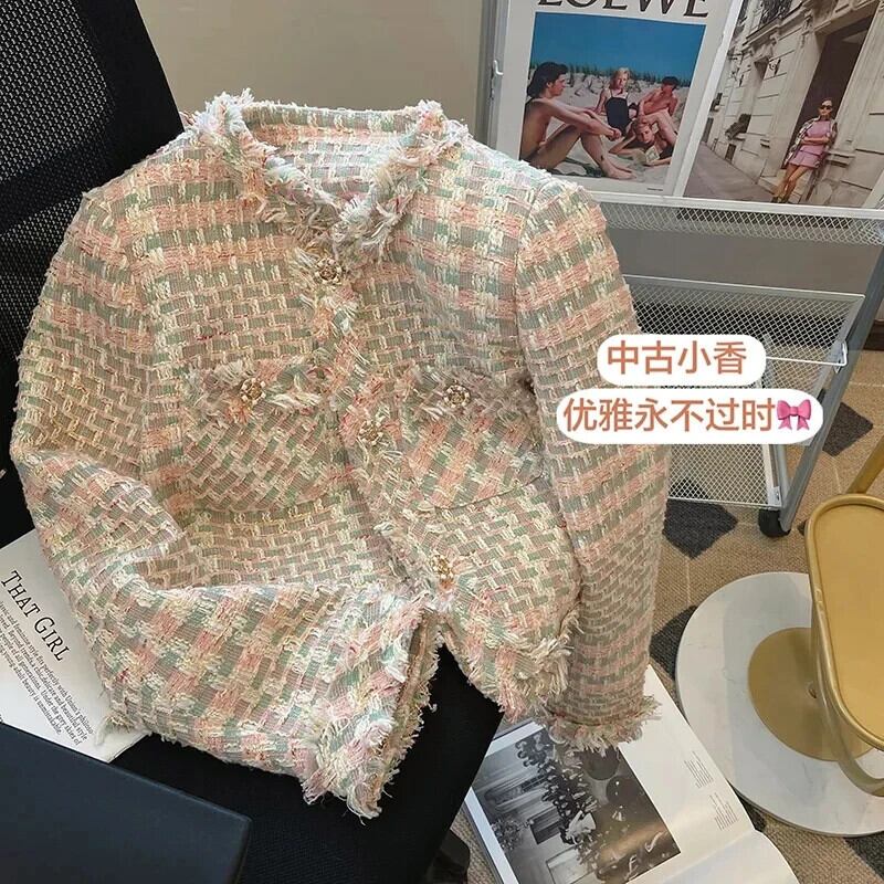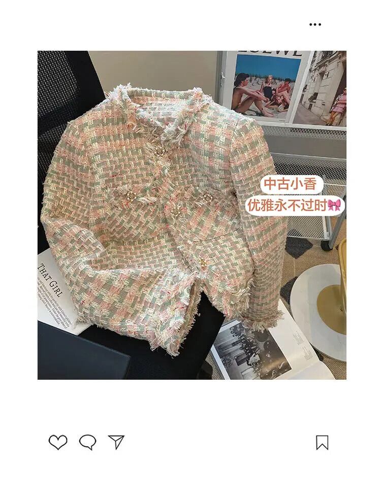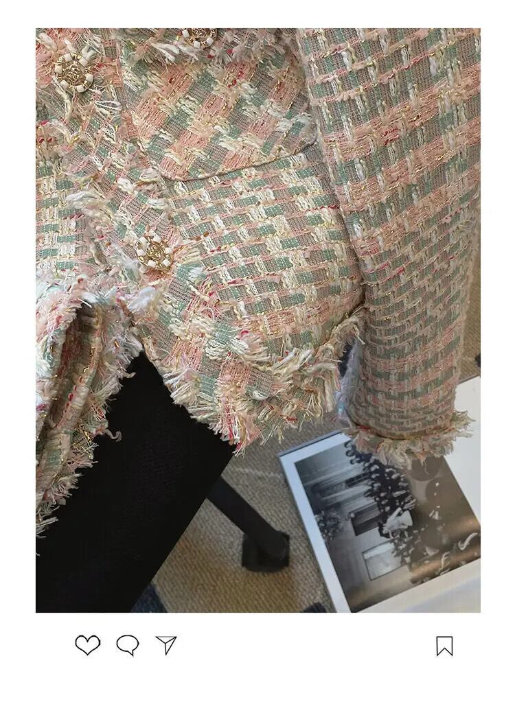 レディース 秋 Clic ツイード 長袖 ショート ブレザー スイート チェック柄 スーツ コート パーティー ロング 大人ガーリー スウィート キュート カジュアル