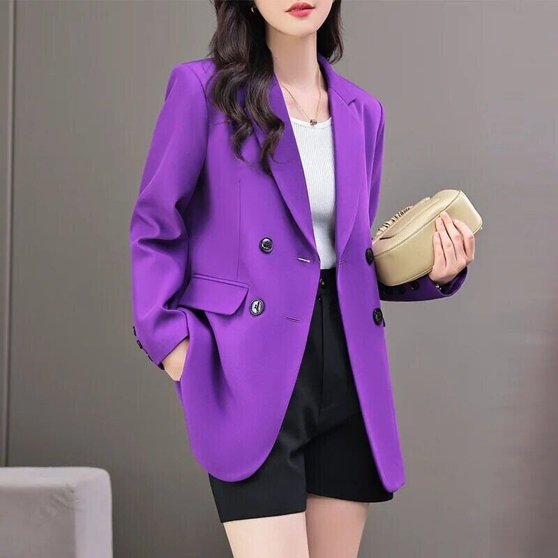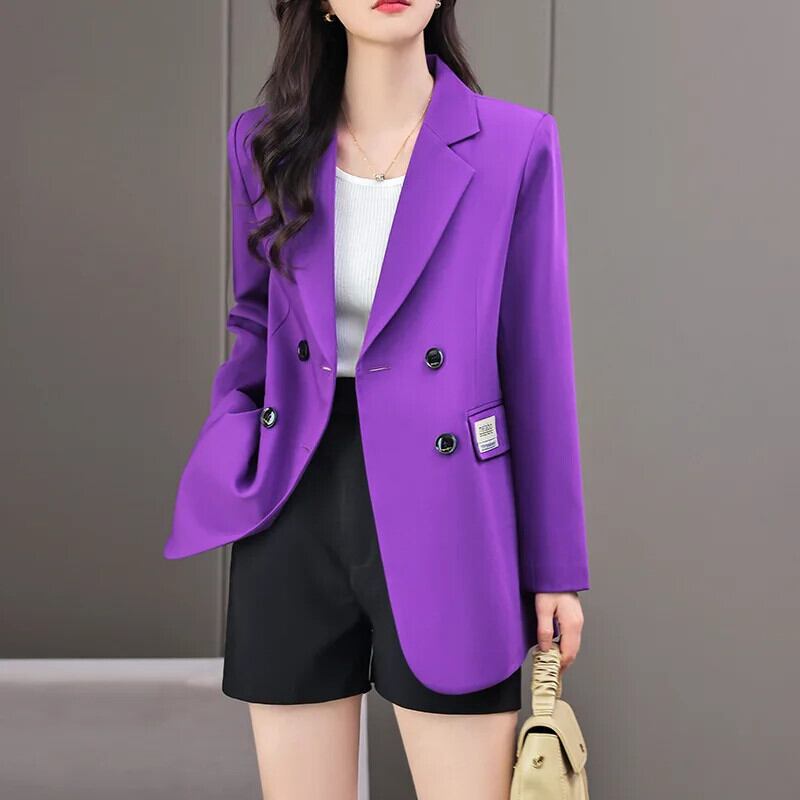 春秋ダブルブレストパープルブラウンスーツコートブレザー スプリング 春物 オータム 秋物