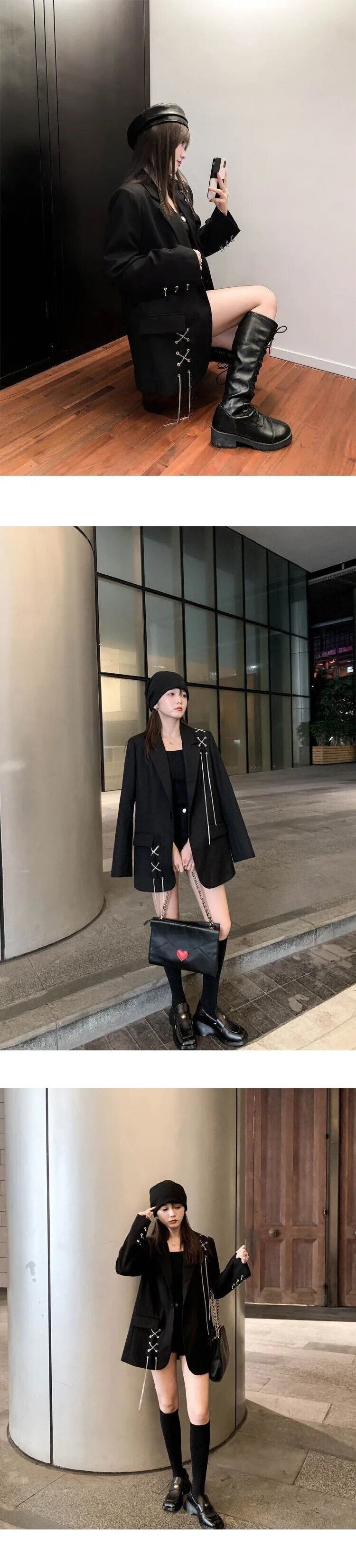 秋冬ブラックスーツレディースルーズレギュラー学生ブレザー オータム 秋物 ウィンター 冬物