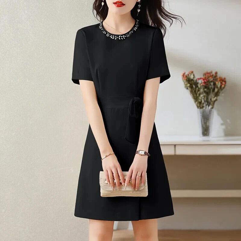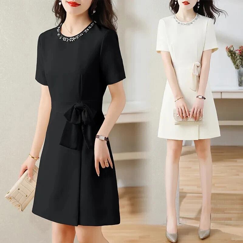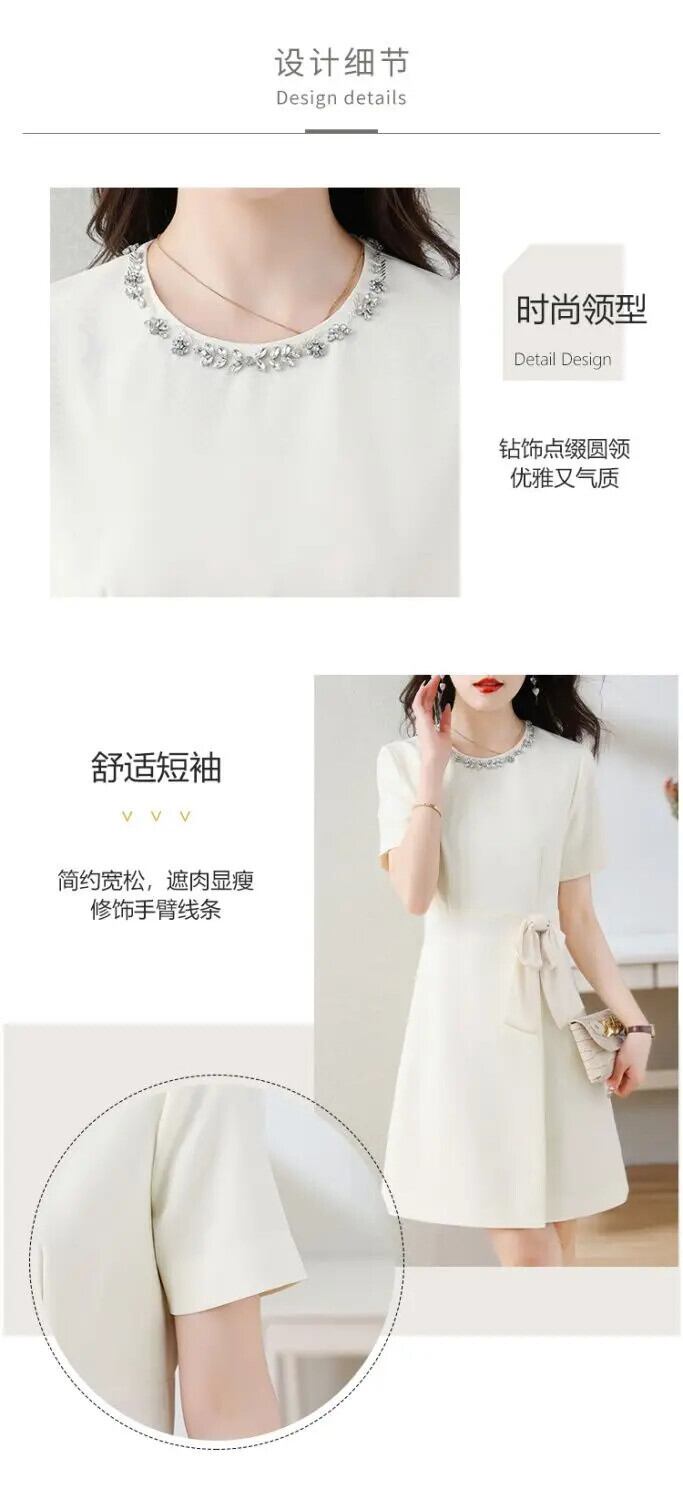 夏ホットスタイルダイヤモンド埋め込み気質ウエストパネル蝶ネクタイドレス リボン サマー 夏物