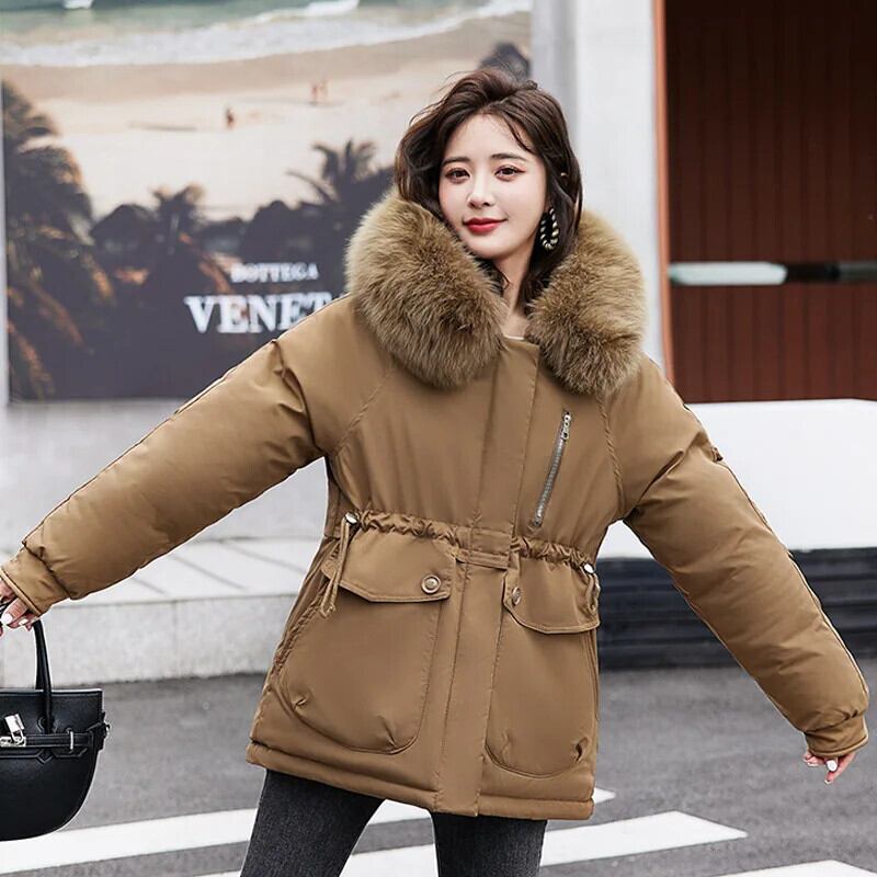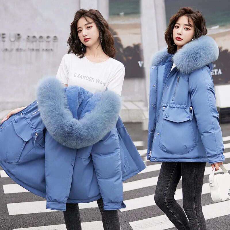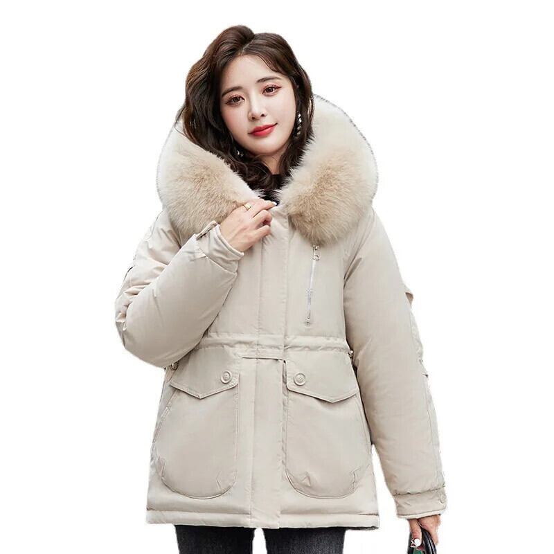 パーカー冬厚い毛深い裏地暖かいコートフード付きフェイクファー襟綿パッド入りジャケット コットン ウィンター 冬物