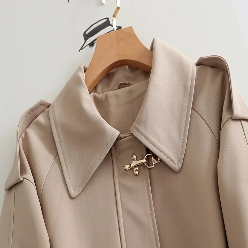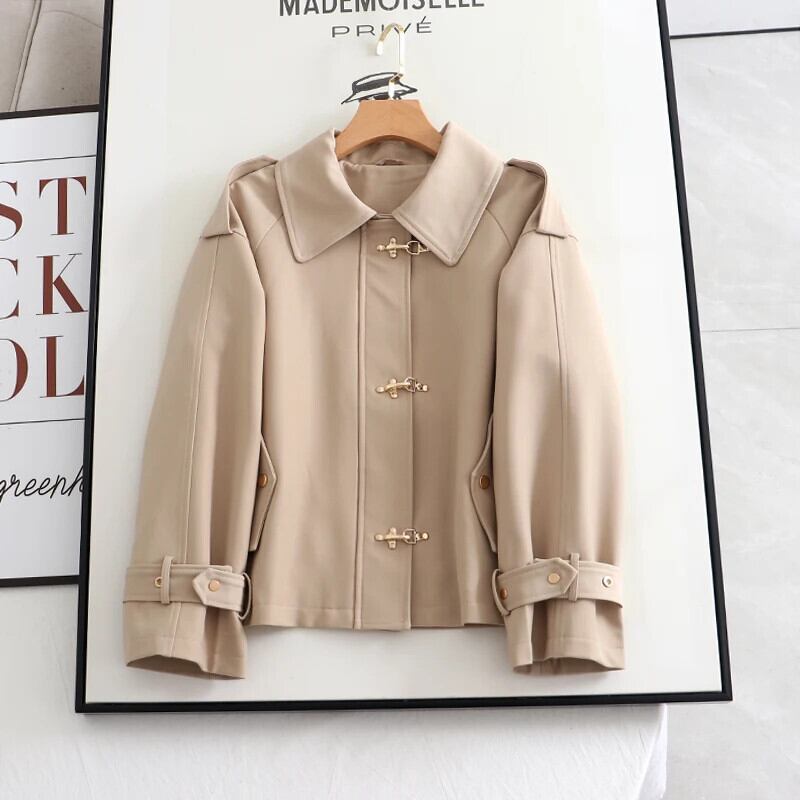 レディース 2024 春秋フリップカラー トレンチ コート レディース カーキ ウインドブレーカー スプリング 春物 オータム 秋物