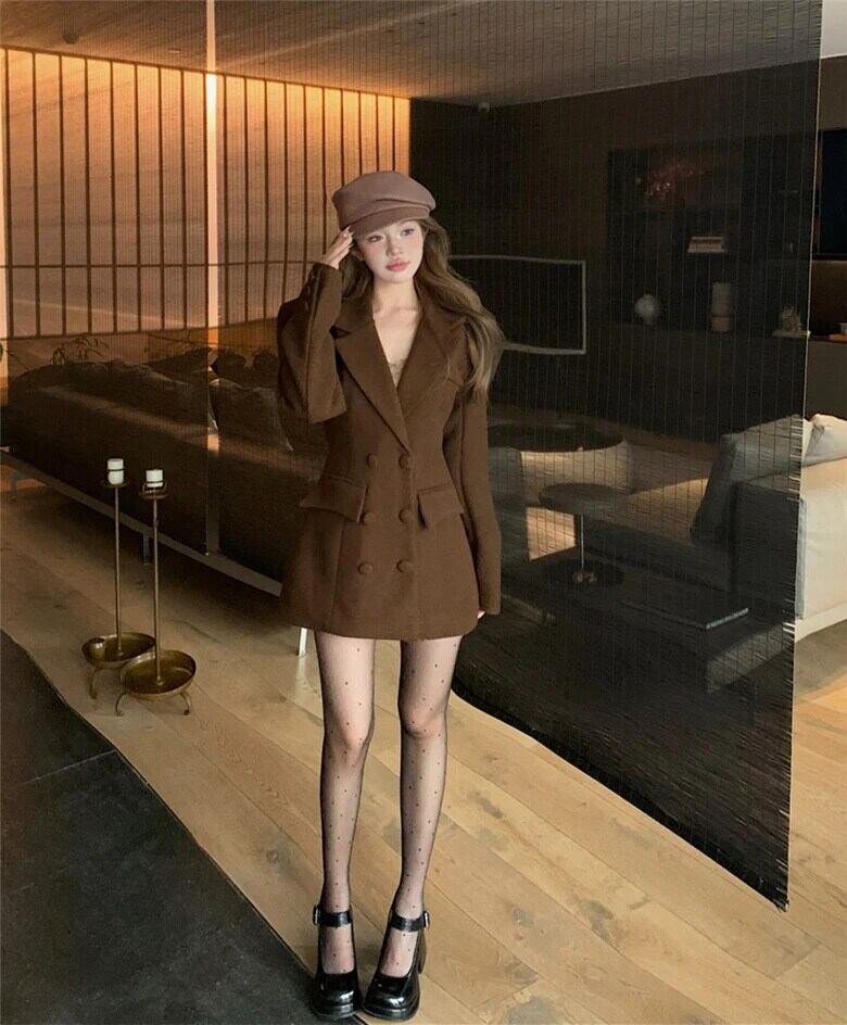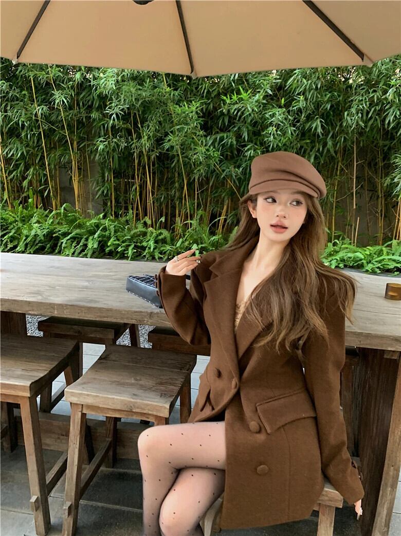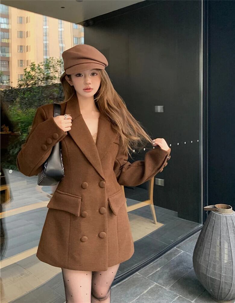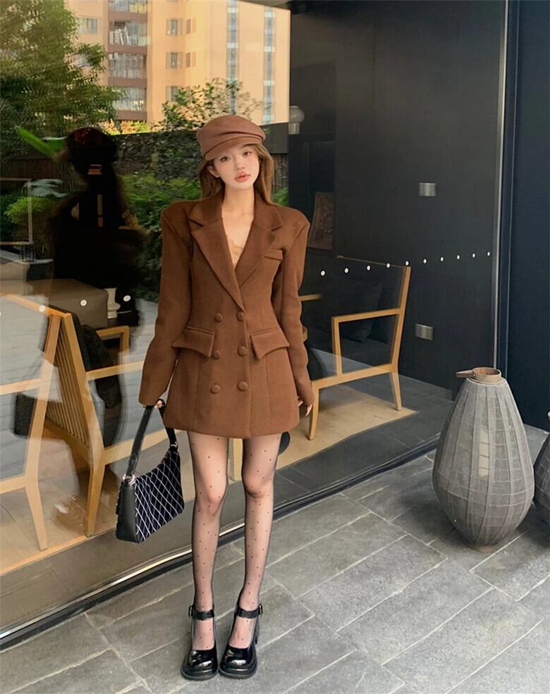 秋冬アウターレトロウエストバンドウールスーツジャケットウールブレザー オータム 秋物 ウィンター 冬物