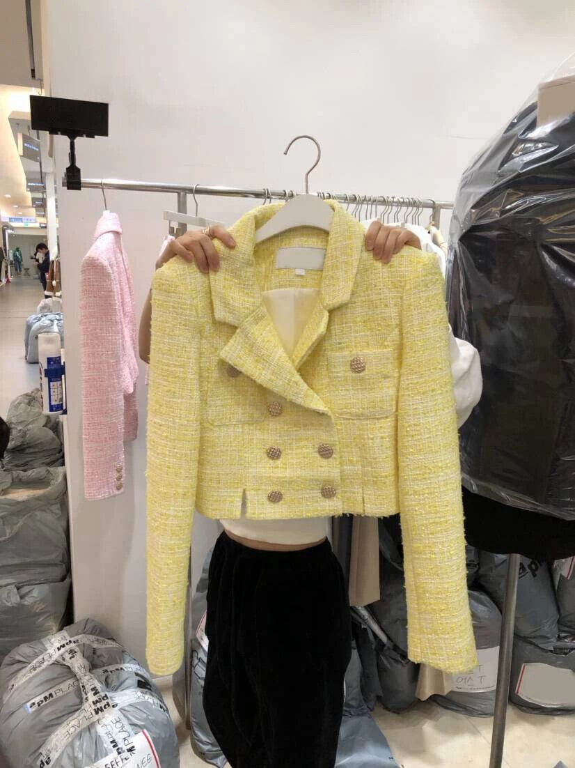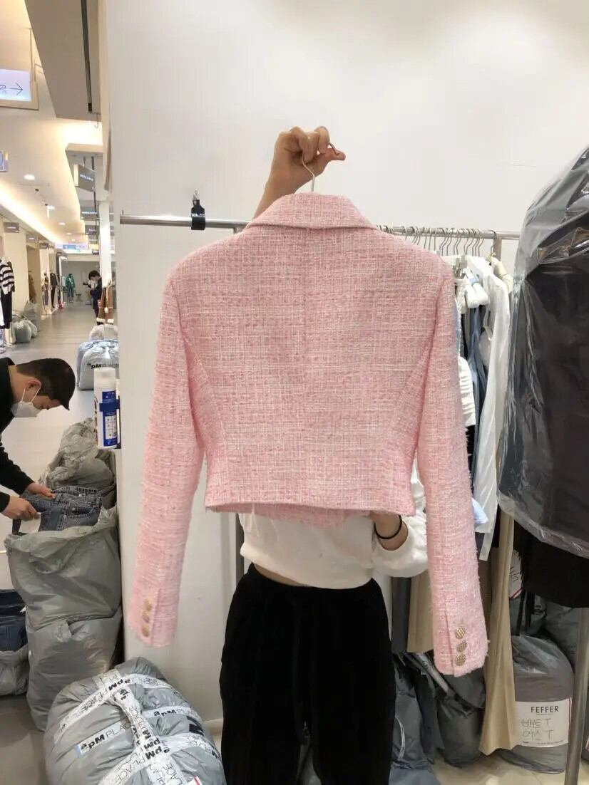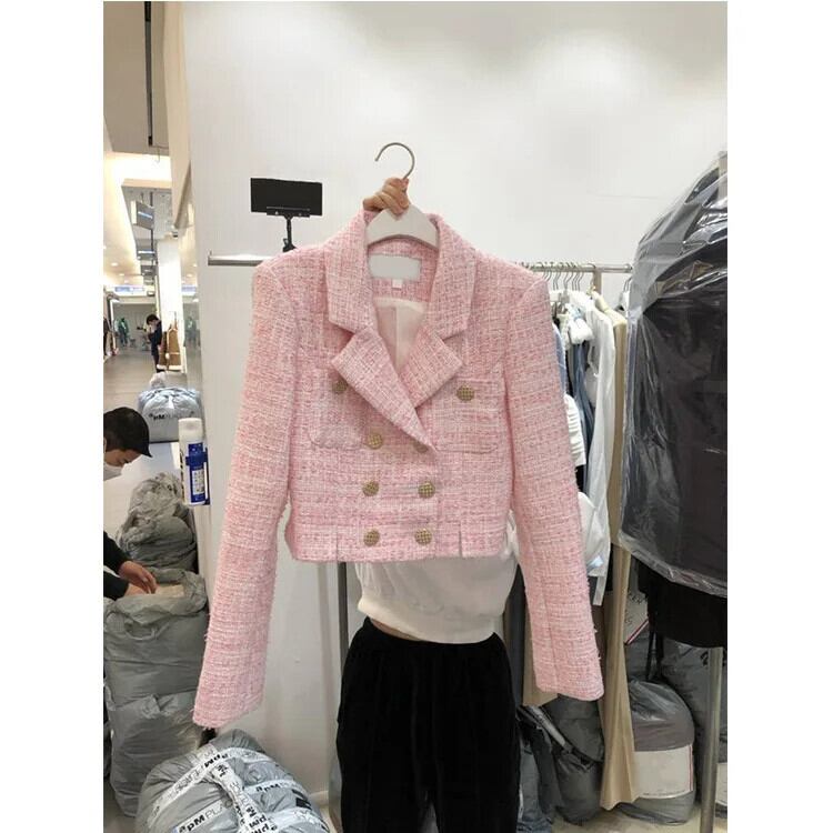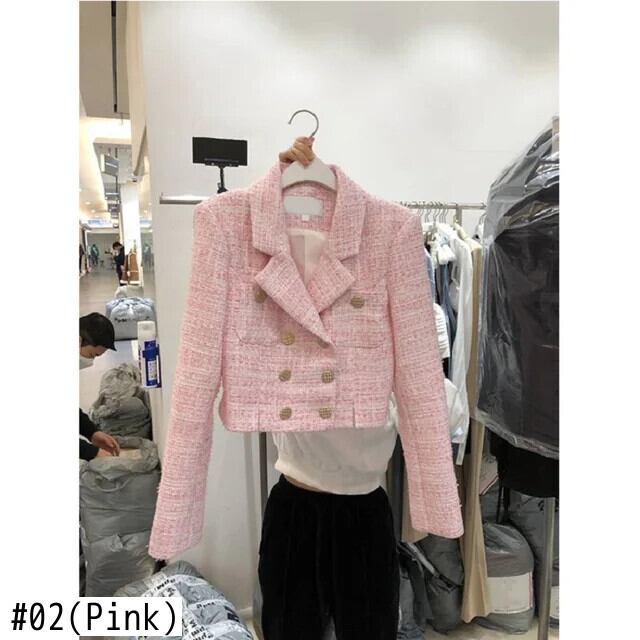 秋ダブルブレスト気質ソリッドカラースーツジャケットピンクイエローブレザー オータム 秋物