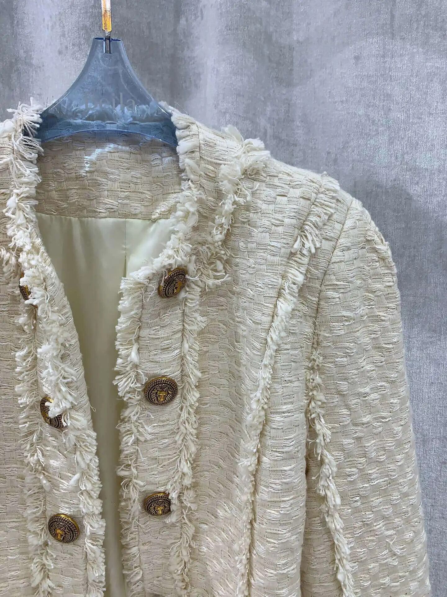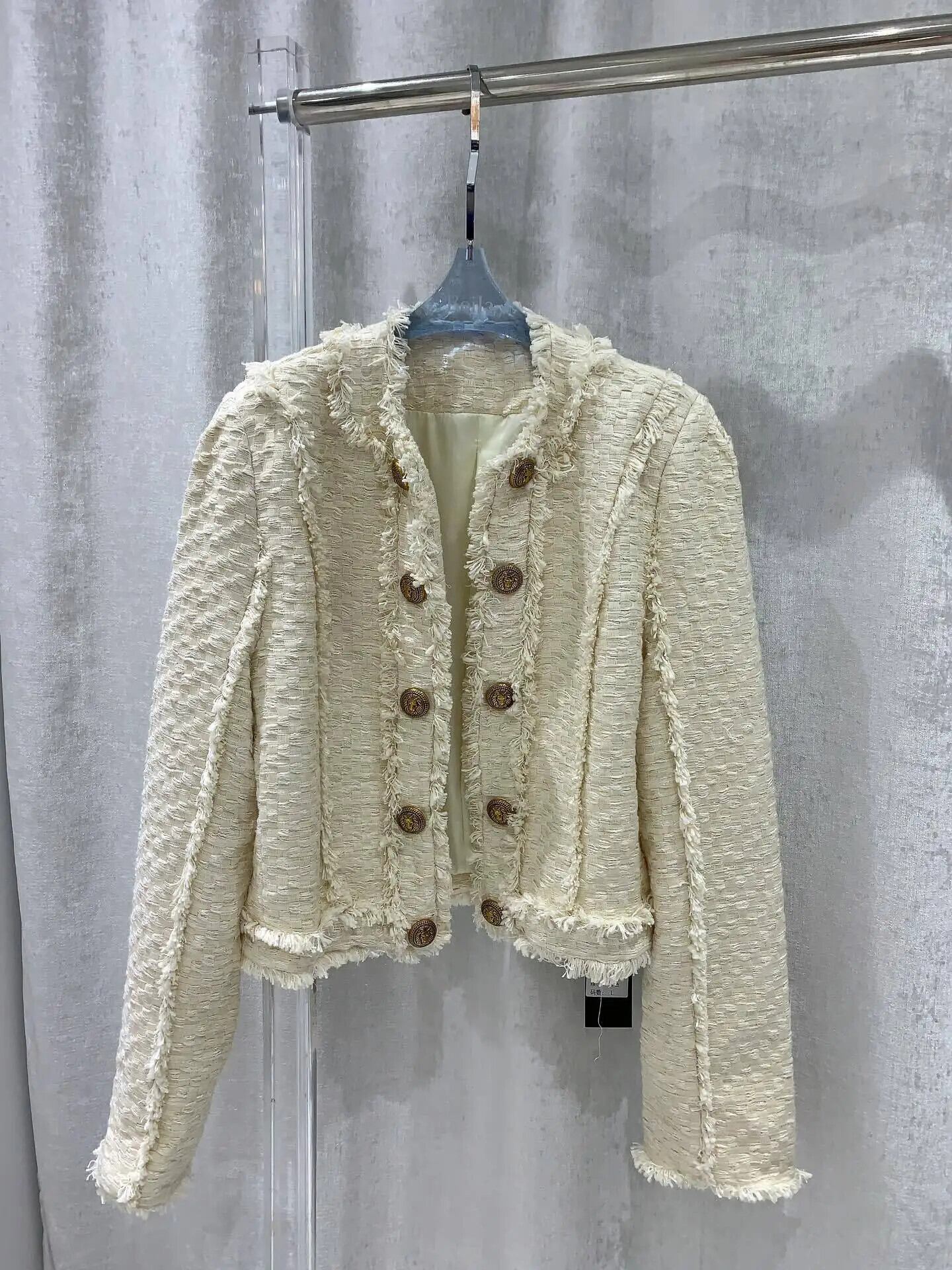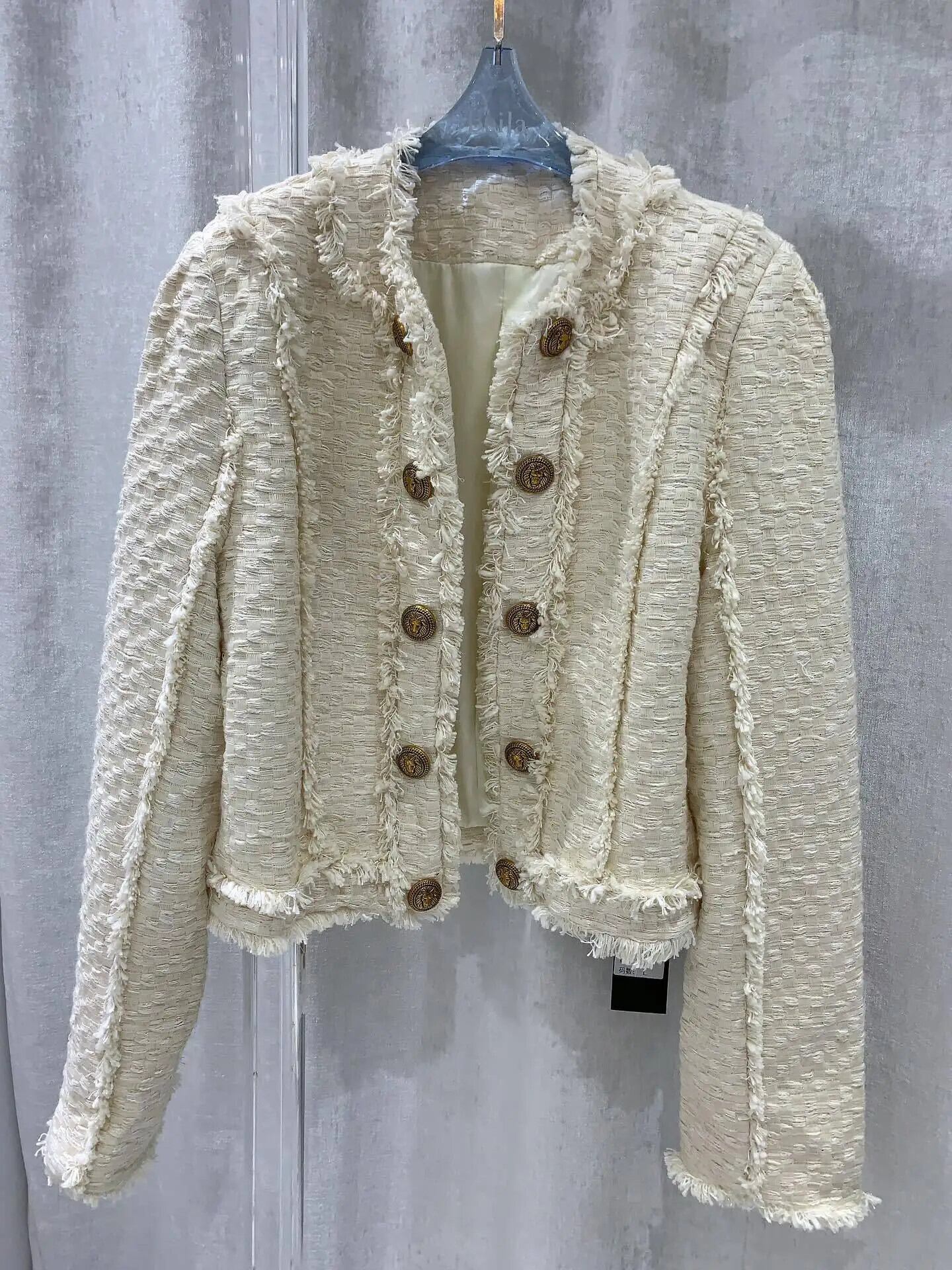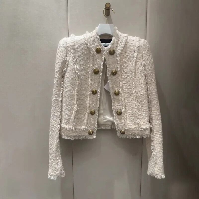 秋冬香りよい二列金ボタン厚手ツイードウールショートコートClicジャケット オータム 秋物 ウィンター 冬物