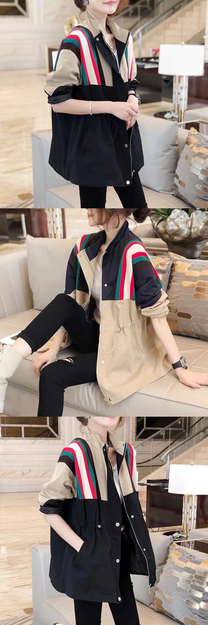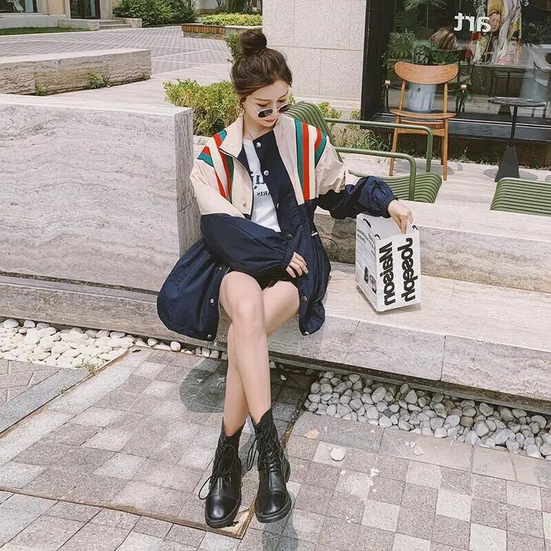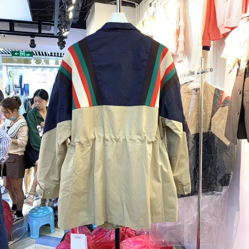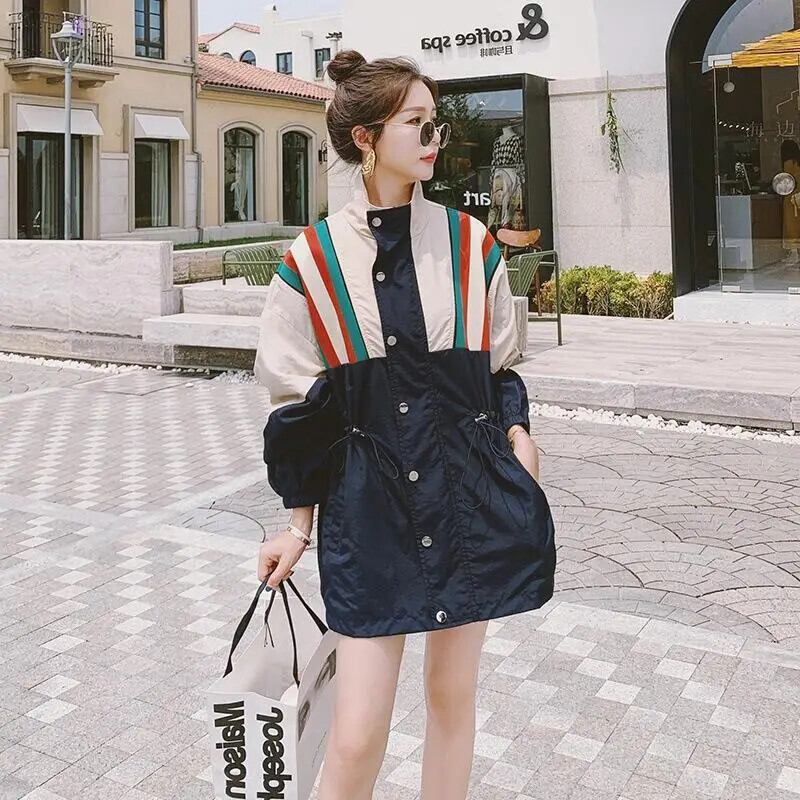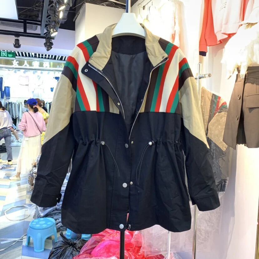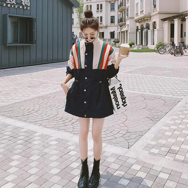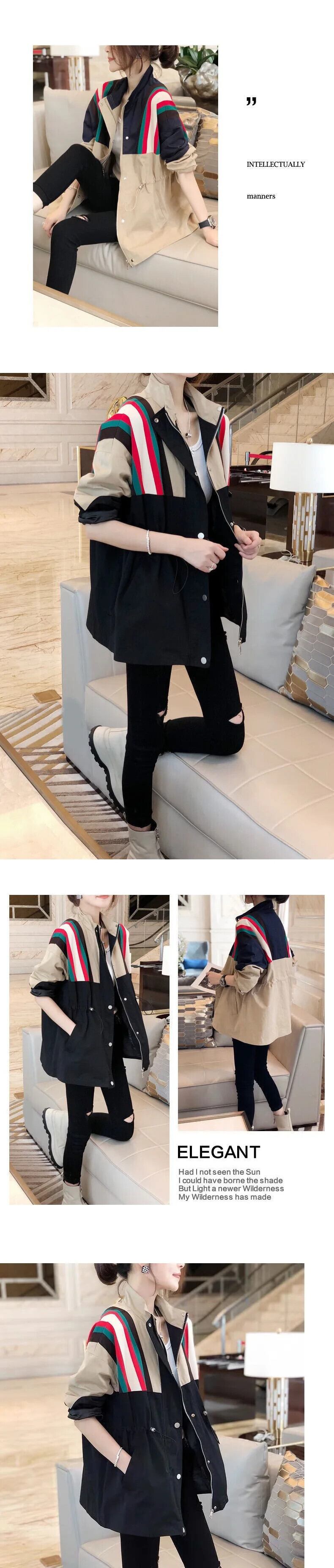 秋春スタンドアップカラーツーリングステッチコントラストカラールーズトレンチジャケットウインドブレーカー スプリング 春物 オータム 秋物