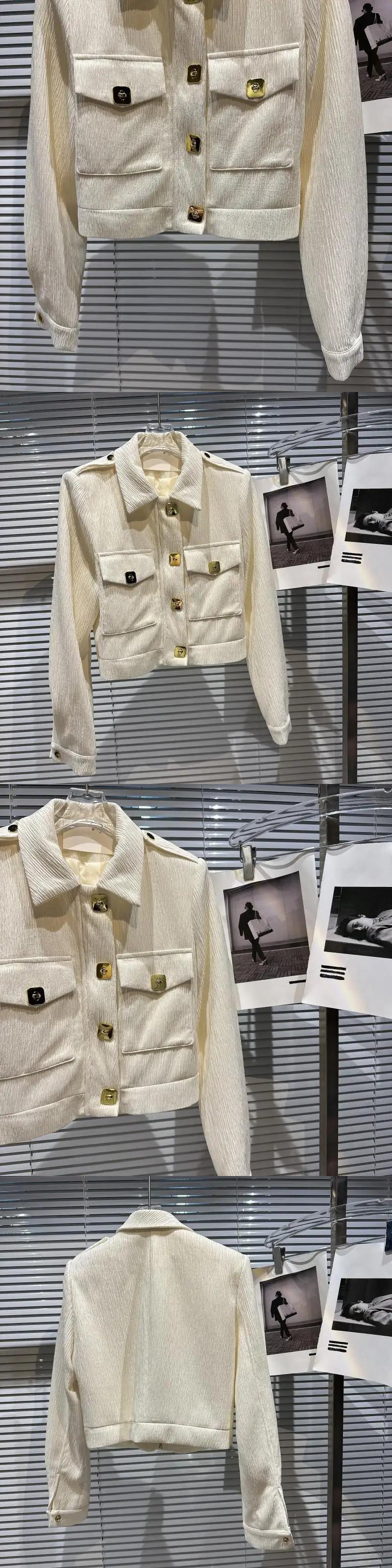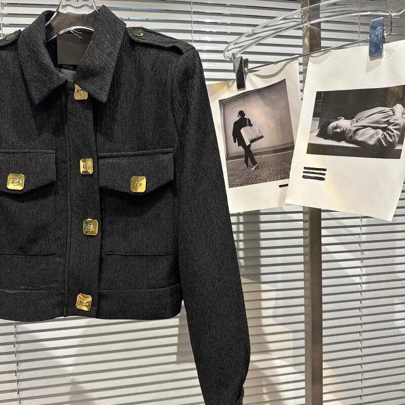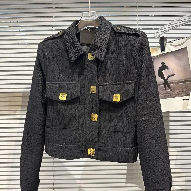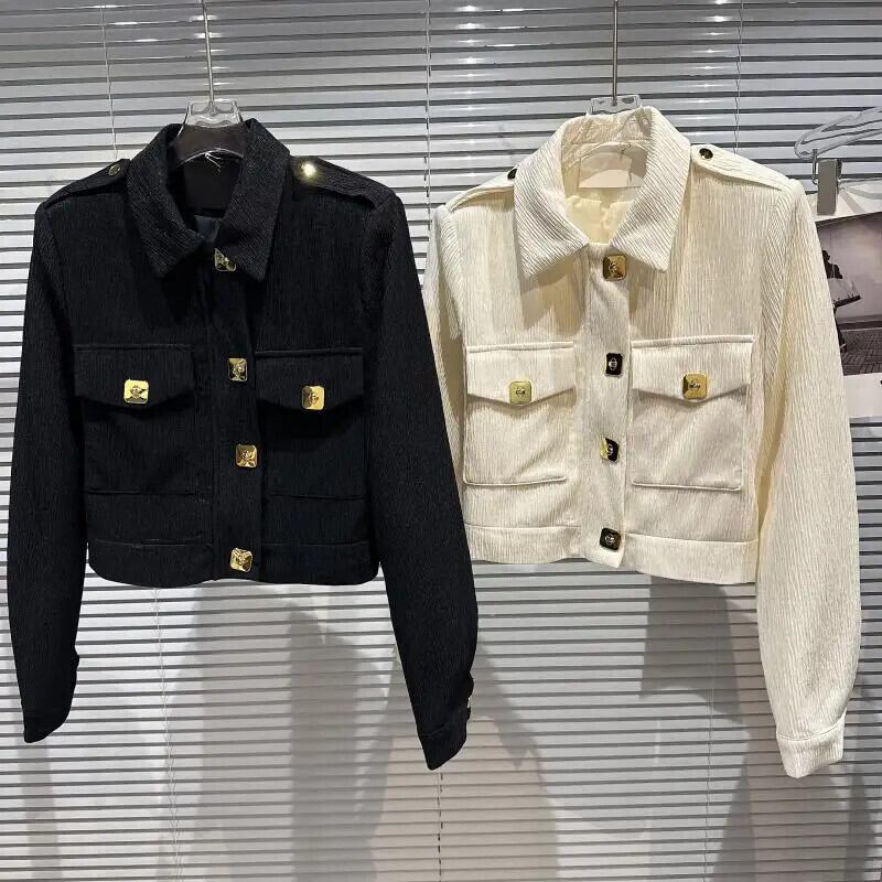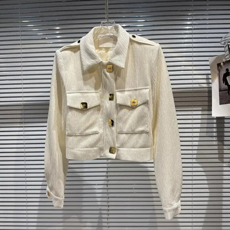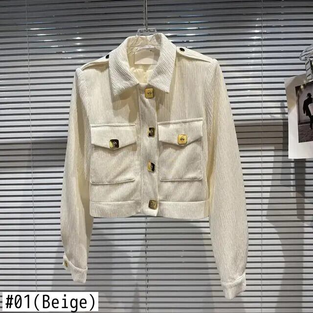 秋香りメタルバックルプリーツ生地ショルダーパッドジャケットショートコート オータム 秋物