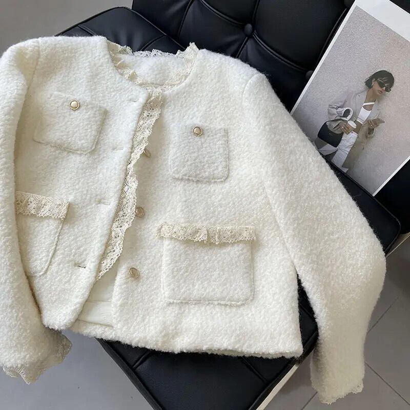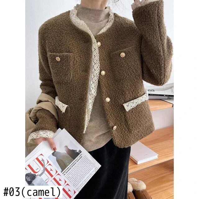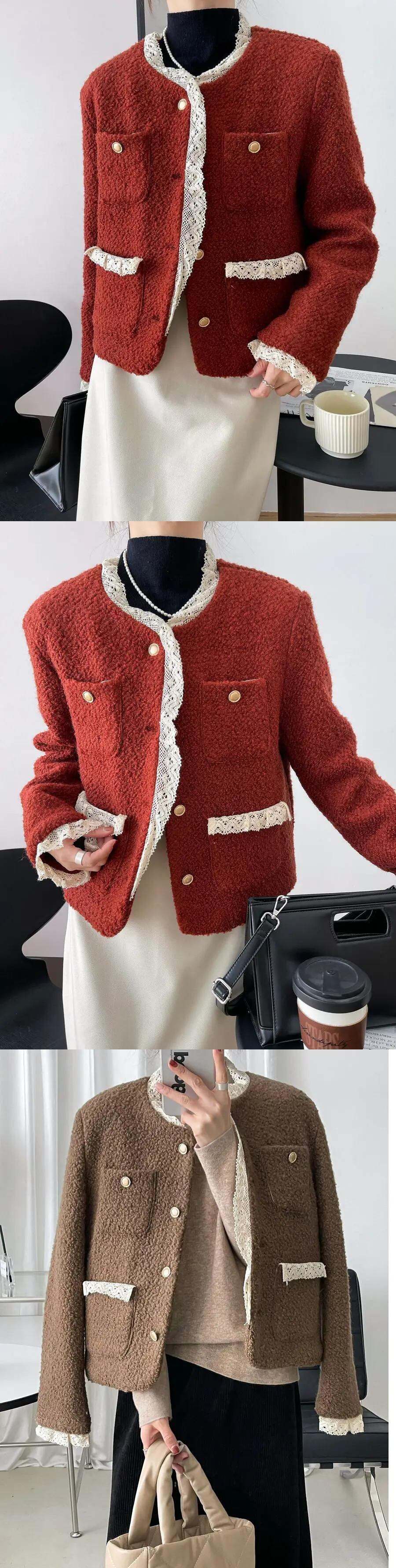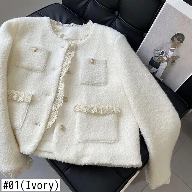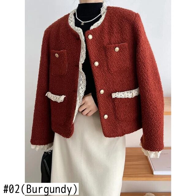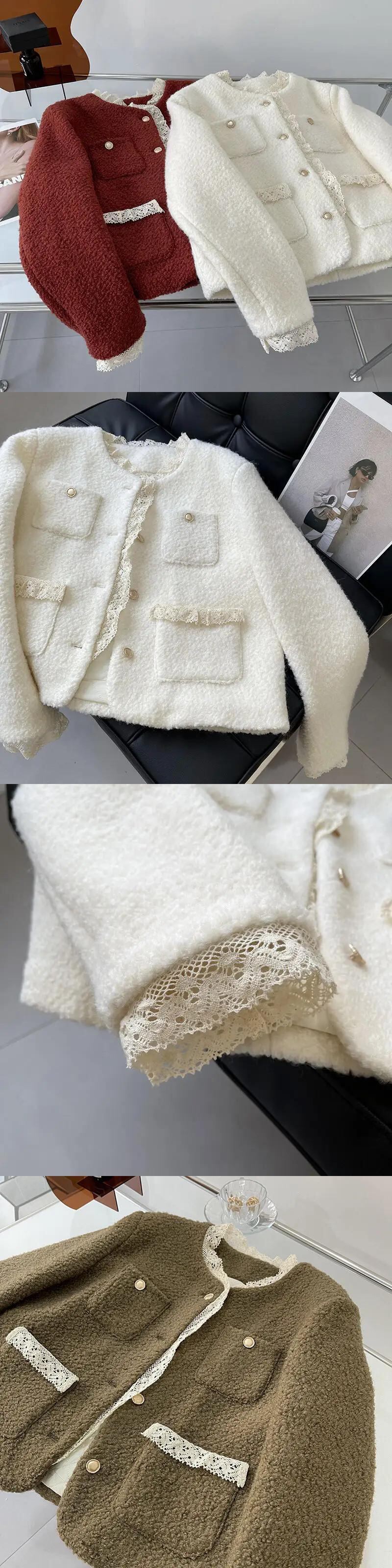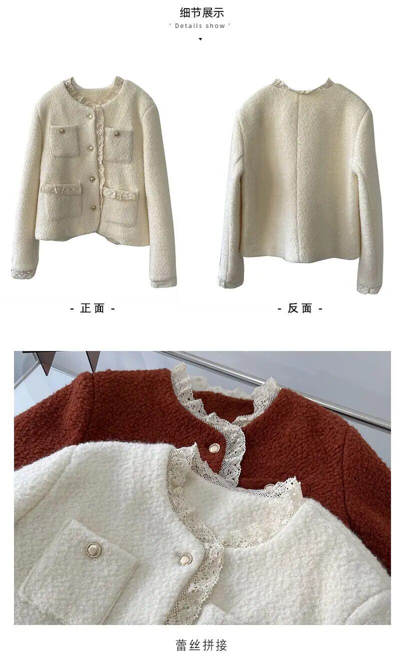 秋と冬コットンスーツレーススプライシング香りコートウール甘い高級ジャケット 大人ガーリー スウィート キュート カジュアル オータム 秋物 ウィンター 冬物